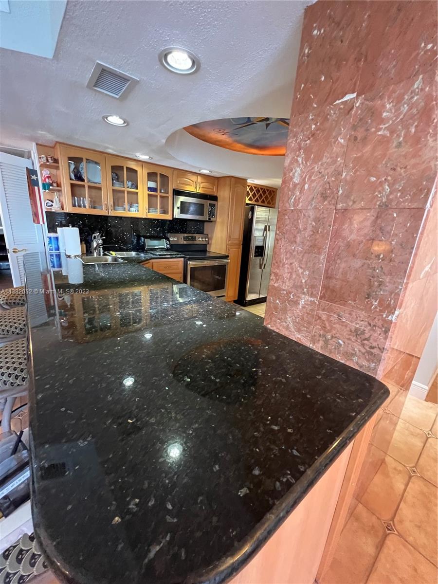 Stunning direct ocean views from this meticulously kept unit. This updated unit features ocean views from every room. The updated kitchen with a stunning mural in the kitchen. New plantation shutters & custom drapes give this home a modern beach ambiance. Other features include granite counter tops, stainless appliances, ceramic tile throughout the unit, double etched doors into the master bedroom, wide hallway, updated bathrooms, walking closets, built in wall unit. Unit is the last in its row w/ amazing unobstructed ocean view, only a neighbor on one side, next to stairs, 3rd floor, 1 covered garaged space. Building amenities include valet, BBQ area, pool, billiards room, card room, sauna, gym, ballroom, cafe restaurant, 24 hr security. Paradise!!