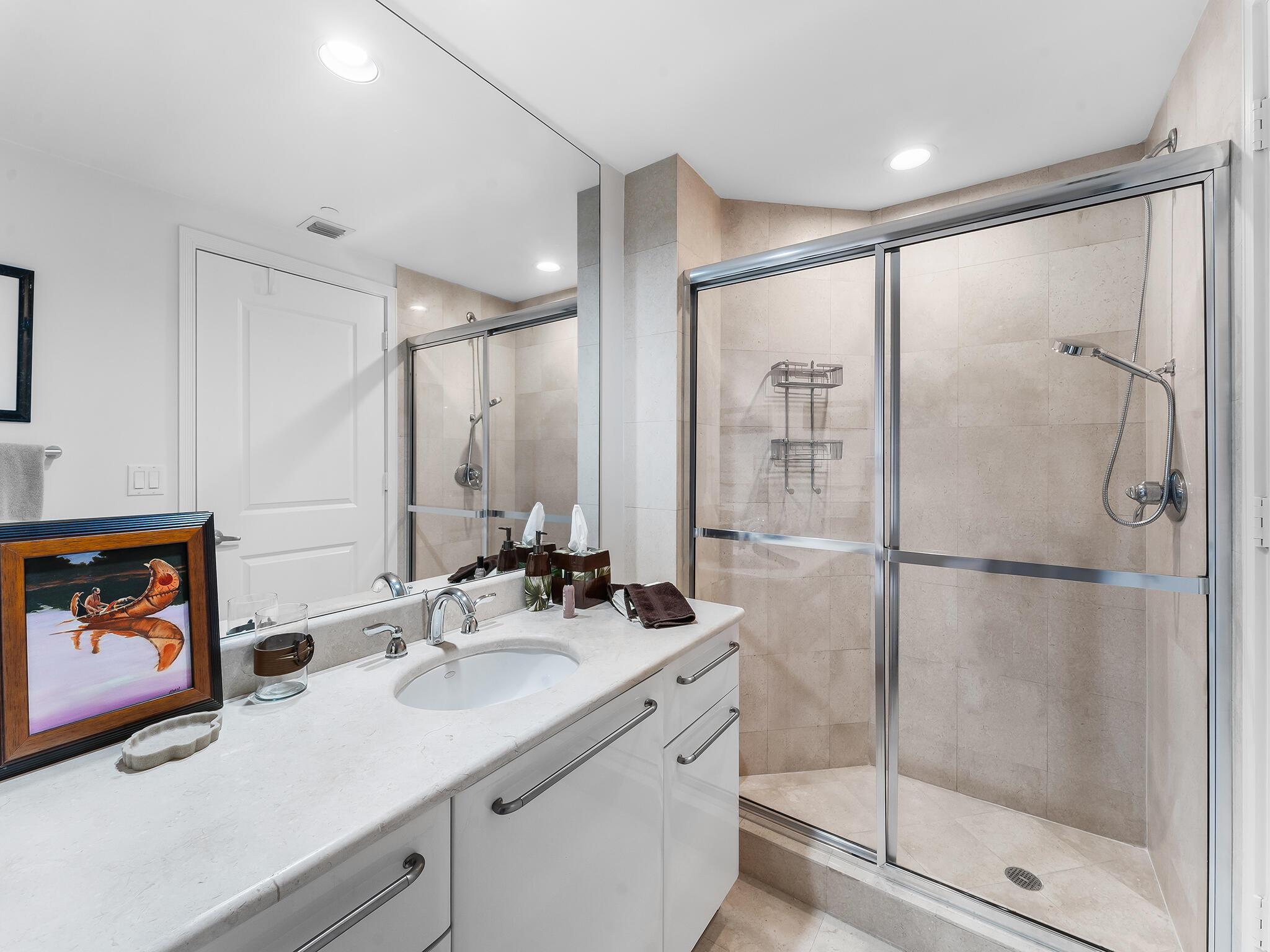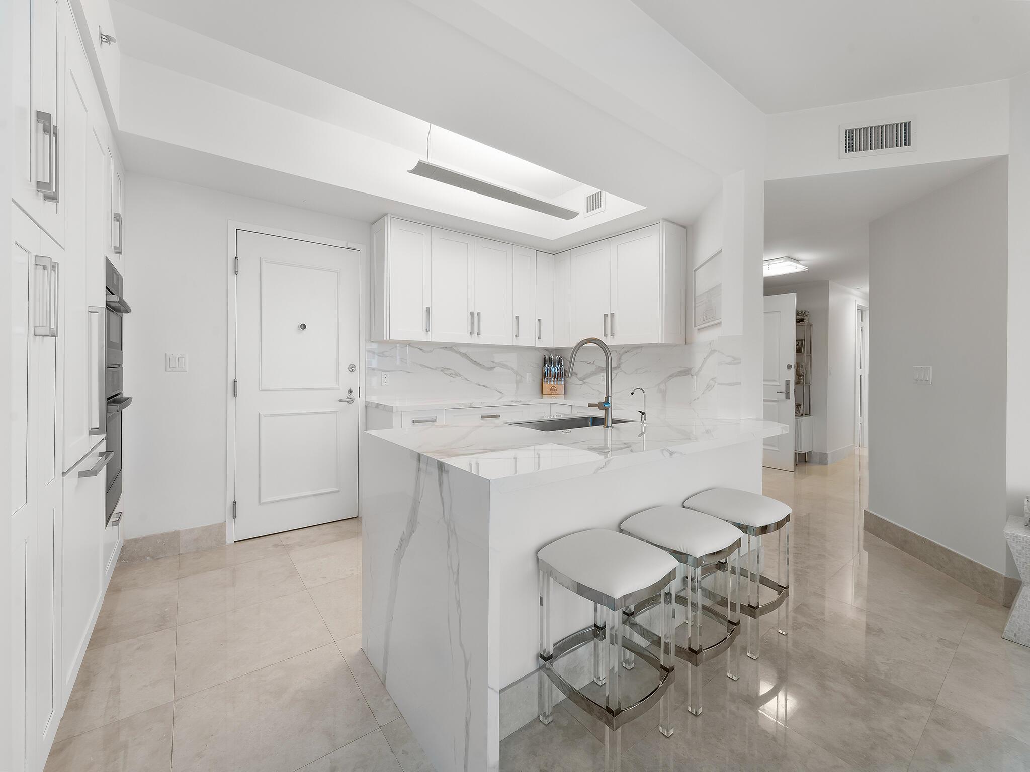 Gorgeous, remodeled, move-in ready! This 4th floor residence has been beautifully re-imagined. Semi private elevator private foyer entry. Marble floors thru-out living areas. Gourmet kitchen wcustom cabinetry, Bosch Ovens Refrigerator, Forte DW, Invisacook Induction Cooktop. Sonify Electric Shades in the living rm. Massive primary suite whuge walk-in closet spa bath. Spacious guest suites, each wensuite bath. Private patios wocean views. 5-star resort style building wvalet, concierge, pool beach attendants, fitness center, sauna, tennis basketball court, garage parking, more!