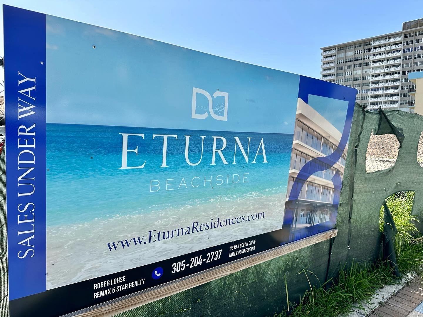 A NEW BRAND OF LUXURY LIVING IS COMING TO HOLLYWOOD BEACH! Construction is underway at ETURNA Beachside Residences...a 7 story boutique building located on the ocean side of A1A, just south of Sheridan Street. Eturna will feature just 36 units and offer ocean and Intracoastal views. Choose from our 1, 2, or 3 bedrooms units or our 4 bedroom, 2 story townhomes. Eturna is perfectly positioned just steps from the sand. Residents will enjoy easy beach access and a short walk or bike ride to all of the dining and shopping on the Hollywood Broadwalk. This is the only new condominium being built on Hollywood Beach. Only 20% deposit required. Completion date mid 2024. Visit our website to see which units are still available. Fill out the contact form to receive an email with more information.