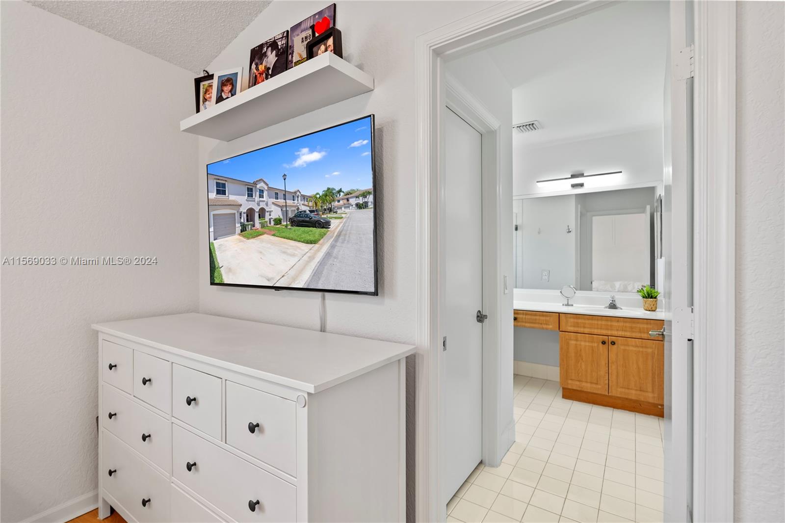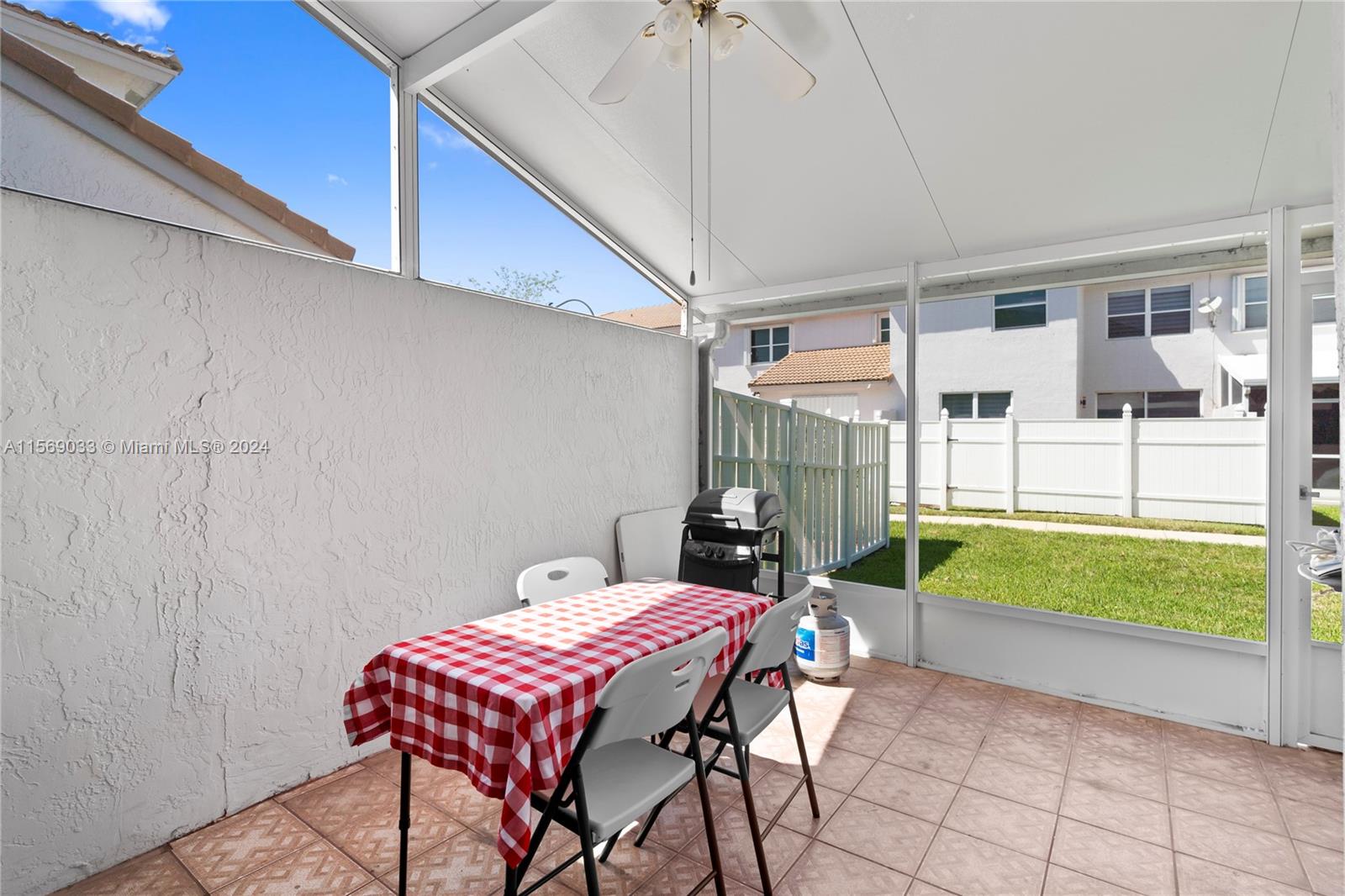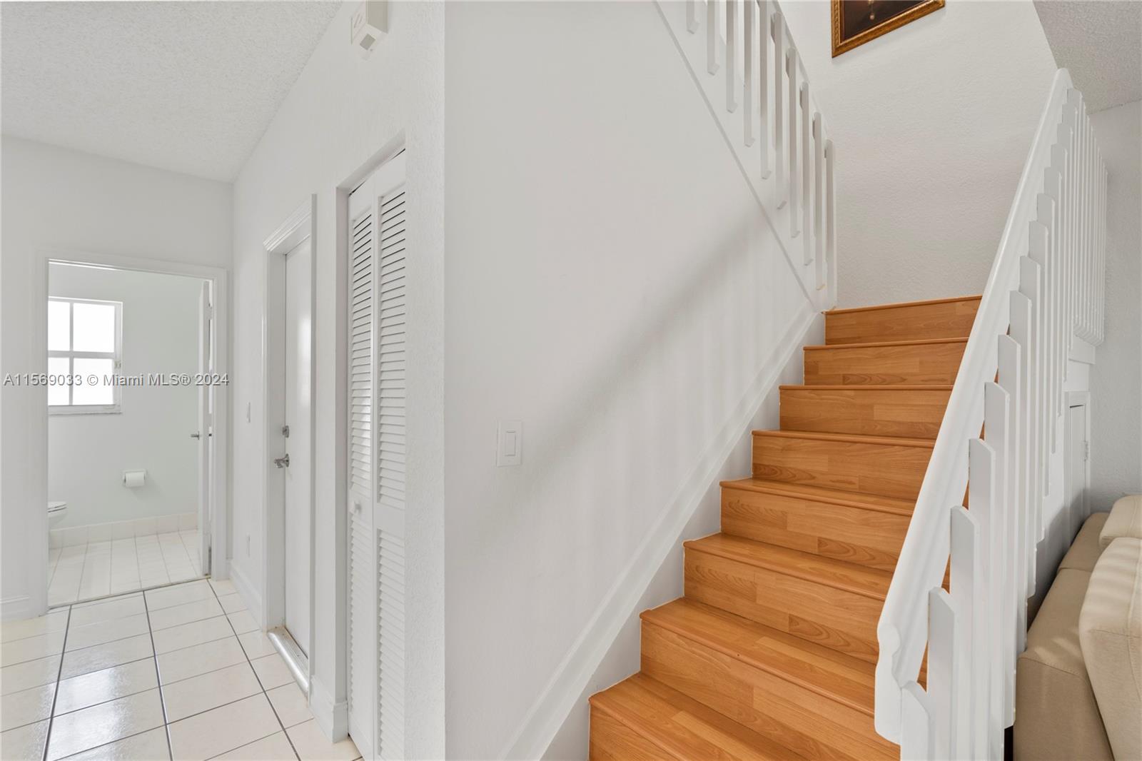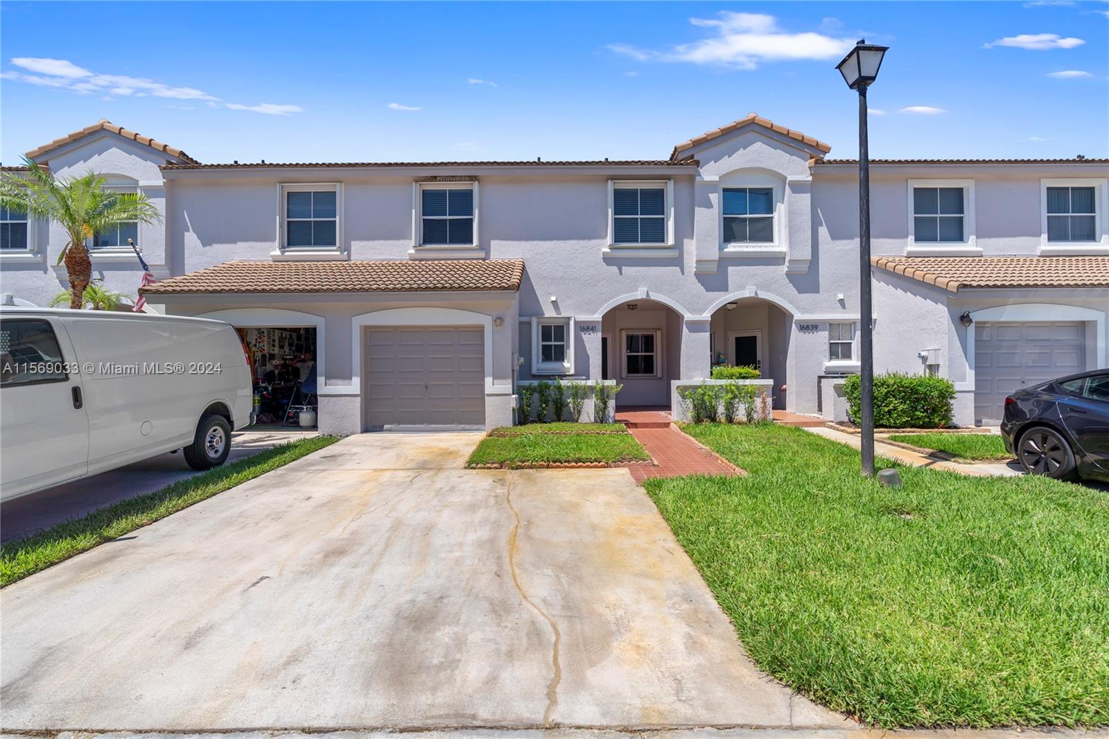 Welcome to this expansive townhome 1,500 +Sq.Ft of living space, featuring 3 bedrooms, 2.5 bathrooms, and a 1-car garage, nestled in the vibrant community of PEMBROKE SHORES in West Pembroke Pines. Tile flooring throughout the first floor and laminated flooring on the second level. Enjoy seamless indoor-outdoor living with sliding glass doors leading to a generously sized screened covered patio. This home is equipped with newly installed impact glass front door, accordion shutters, and essential features like walk-in closets in the main bedroom. Residents of this manned gated community benefit from 24-hour security, access to a community pool, and proximity to A+ rated schools, residents enjoy easy access to shopping centers, malls, and a variety of dining options.