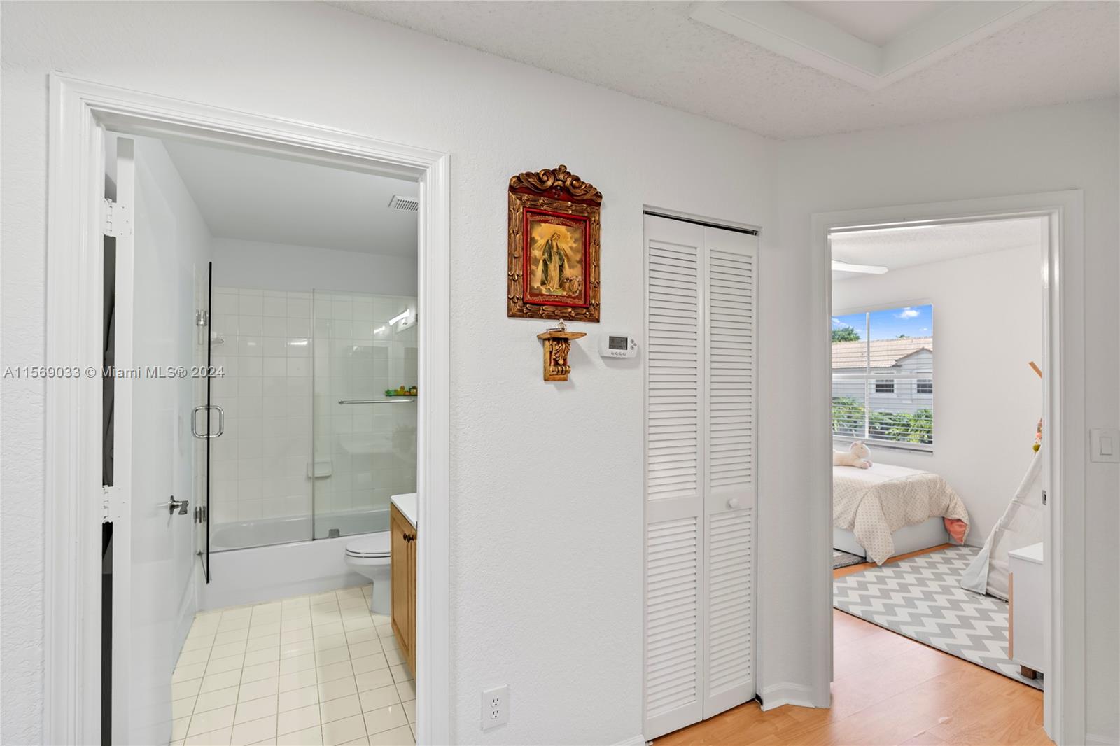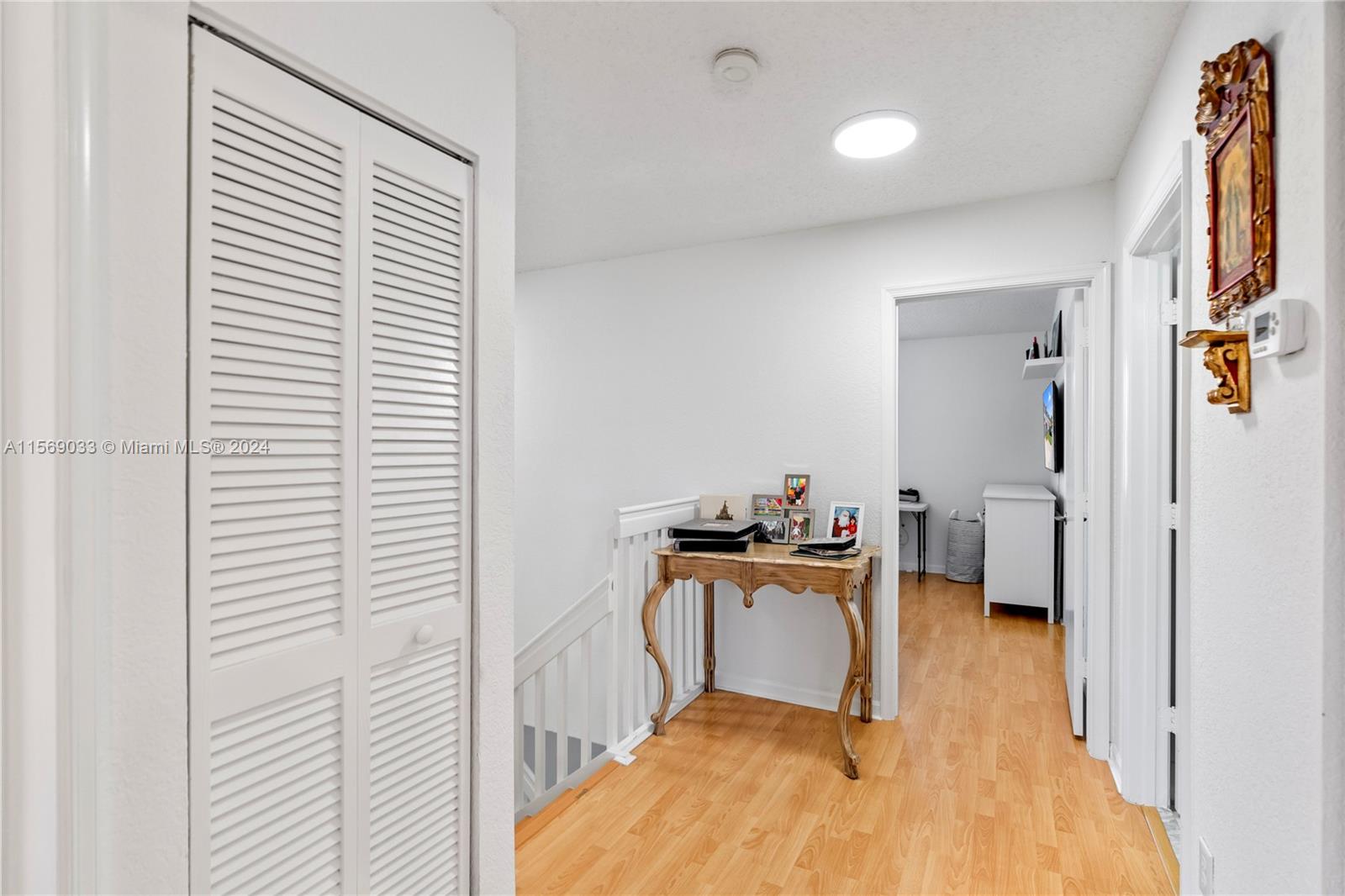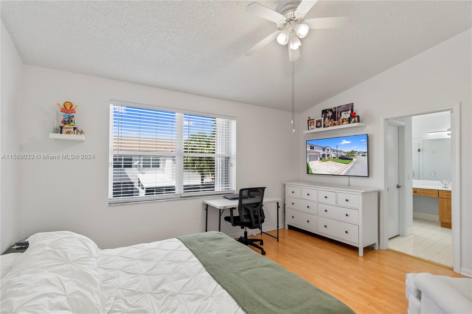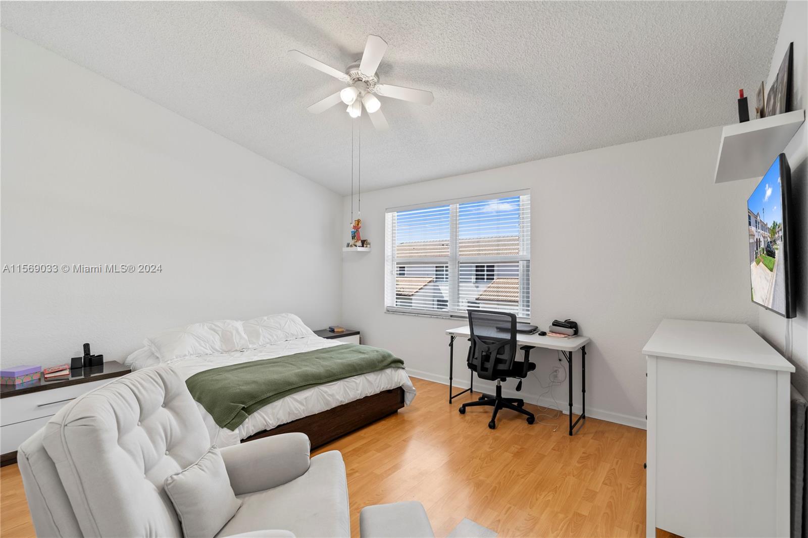 Welcome to this expansive townhome 1,500 +Sq.Ft of living space, featuring 3 bedrooms, 2.5 bathrooms, and a 1-car garage, nestled in the vibrant community of PEMBROKE SHORES in West Pembroke Pines. Tile flooring throughout the first floor and laminated flooring on the second level. Enjoy seamless indoor-outdoor living with sliding glass doors leading to a generously sized screened covered patio. This home is equipped with newly installed impact glass front door, accordion shutters, and essential features like walk-in closets in the main bedroom. Residents of this manned gated community benefit from 24-hour security, access to a community pool, and proximity to A+ rated schools, residents enjoy easy access to shopping centers, malls, and a variety of dining options.