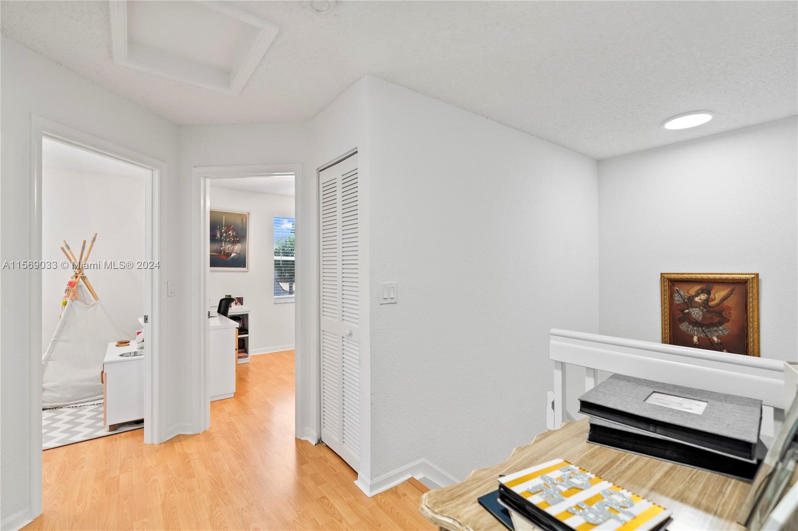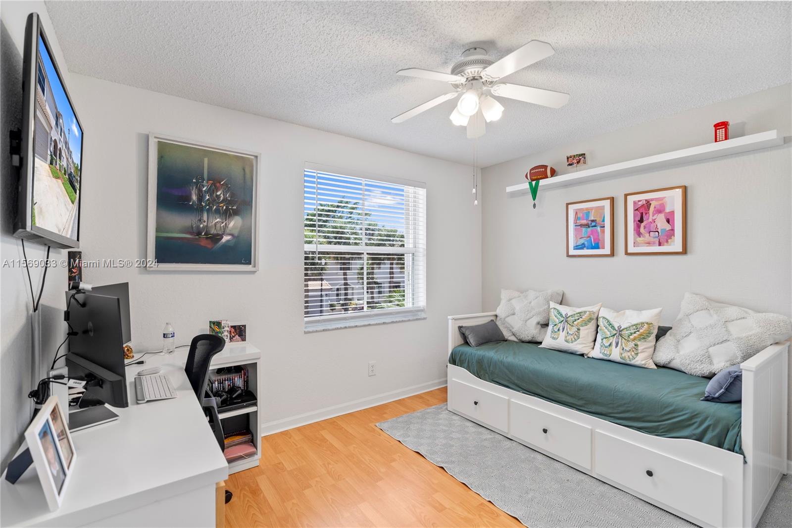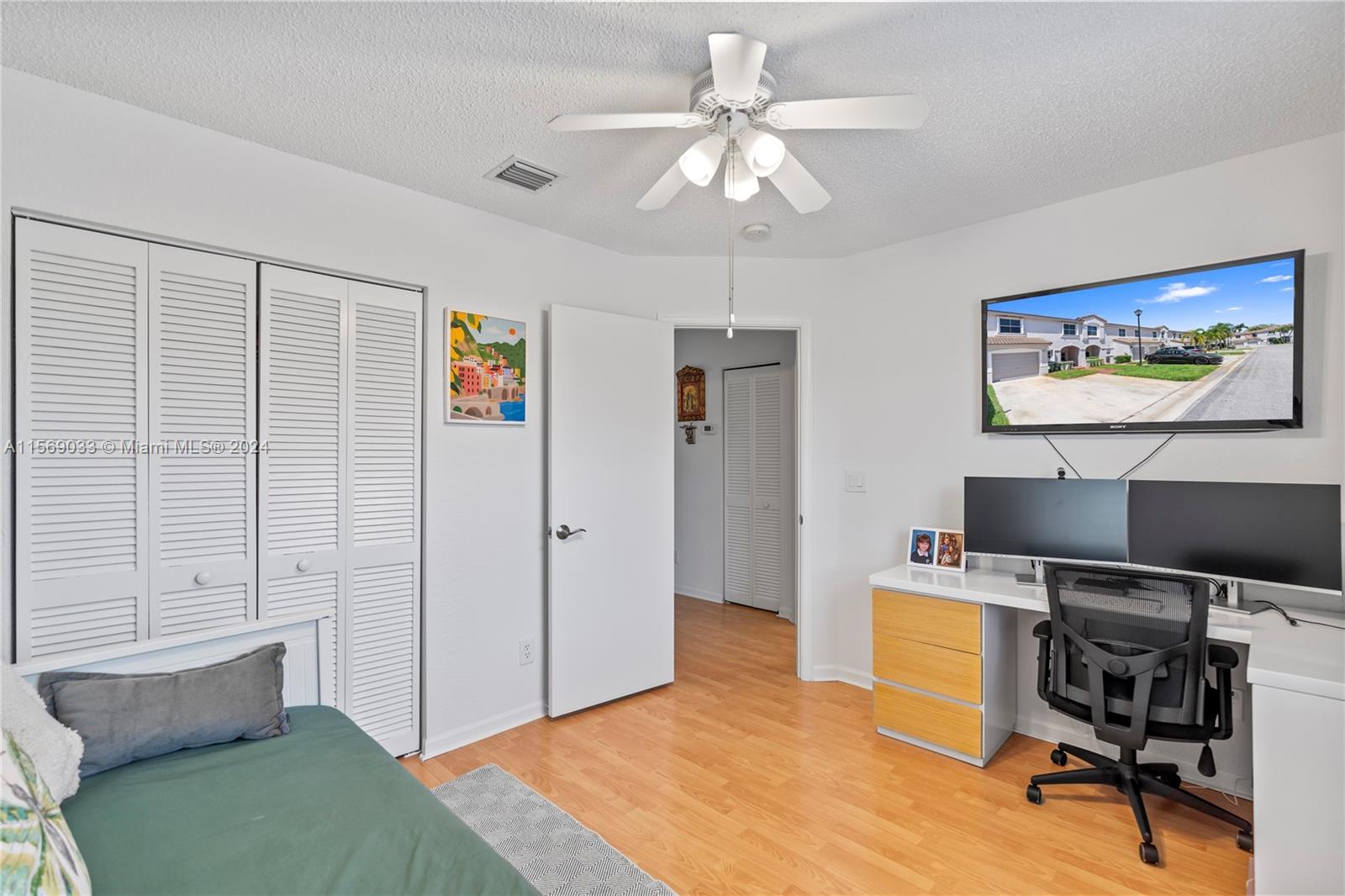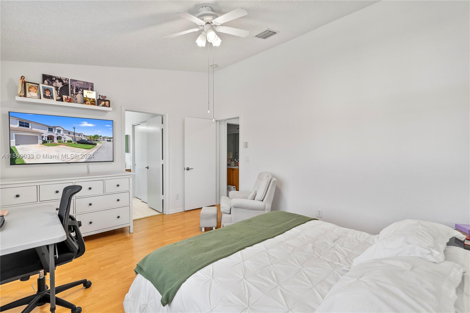 Welcome to this expansive townhome 1,500 +Sq.Ft of living space, featuring 3 bedrooms, 2.5 bathrooms, and a 1-car garage, nestled in the vibrant community of PEMBROKE SHORES in West Pembroke Pines. Tile flooring throughout the first floor and laminated flooring on the second level. Enjoy seamless indoor-outdoor living with sliding glass doors leading to a generously sized screened covered patio. This home is equipped with newly installed impact glass front door, accordion shutters, and essential features like walk-in closets in the main bedroom. Residents of this manned gated community benefit from 24-hour security, access to a community pool, and proximity to A+ rated schools, residents enjoy easy access to shopping centers, malls, and a variety of dining options.
