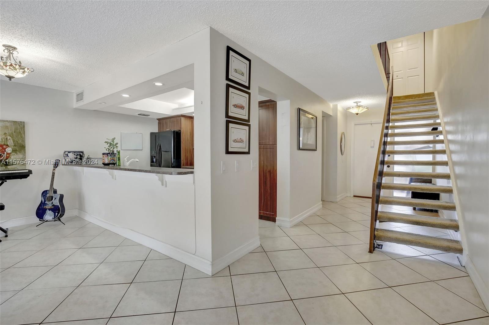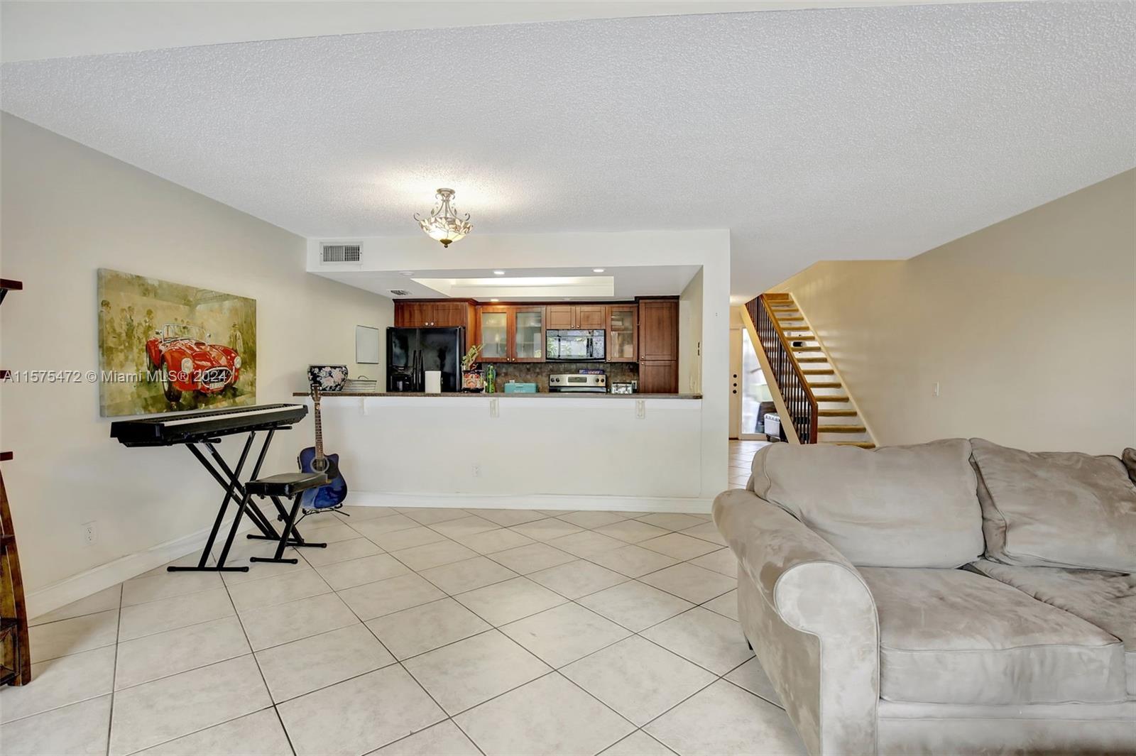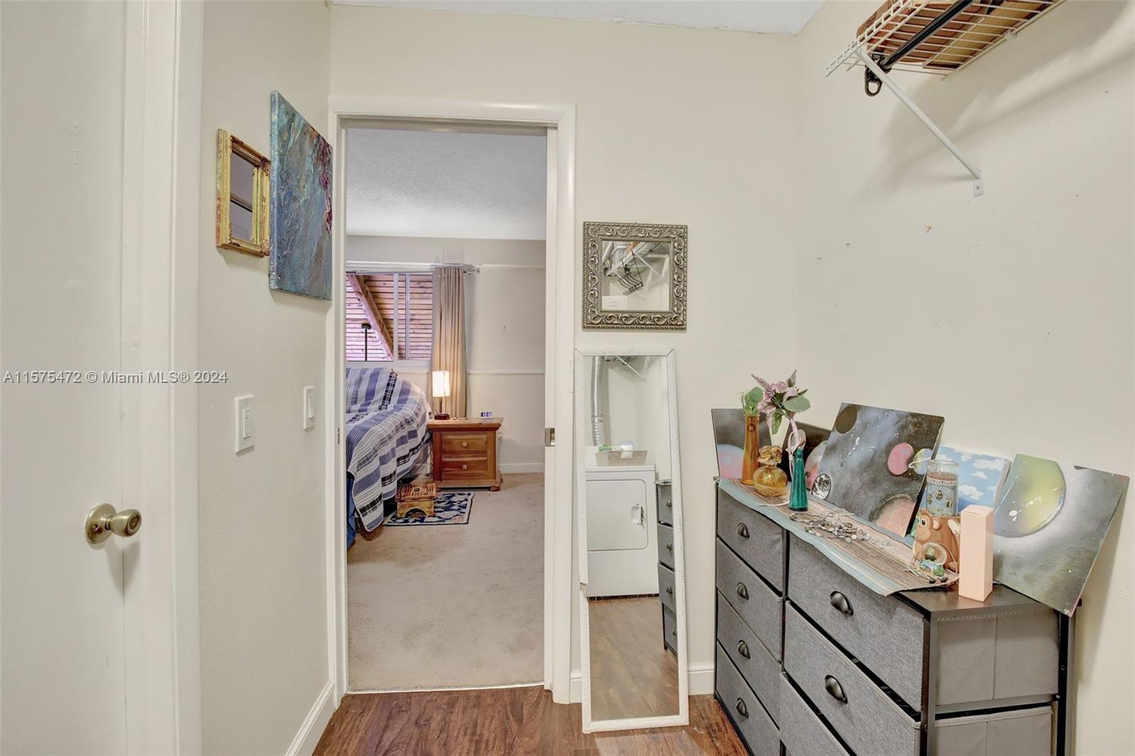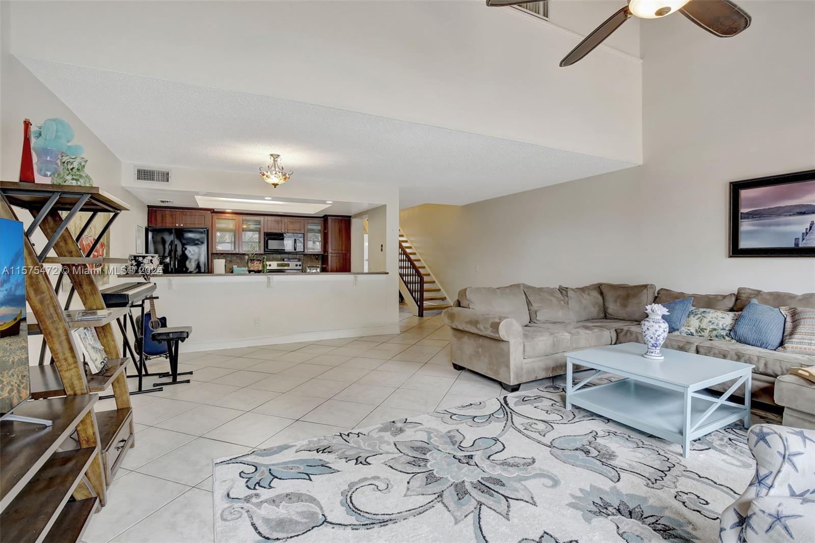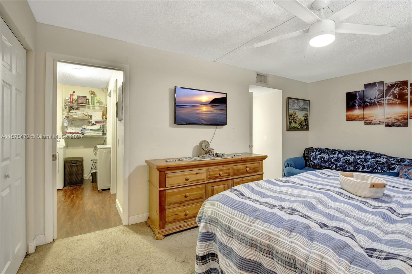 This upgraded two-story townhouse has a spacious open-plan layout and has been well-maintained for ten years. The kitchen features black and chrome appliances, including a Frigidaire with an icemaker and water filtration, a new microwave, and a five-cooktop oven. Downstairs, a large bedroom and an updated full bathroom are present. The tankless water heater ensures endless hot water and energy savings. On the second floor, a large closet at the top of the stairs provides extra storage. The main bedroom includes a newly installed wall-to-wall closet and a closed-in loft with adjustable windows for views or privacy. The laundry room is upstairs with additional storage and an updated full bathroom. The third bedroom also has a new closet and a view of beautiful sunsets.
