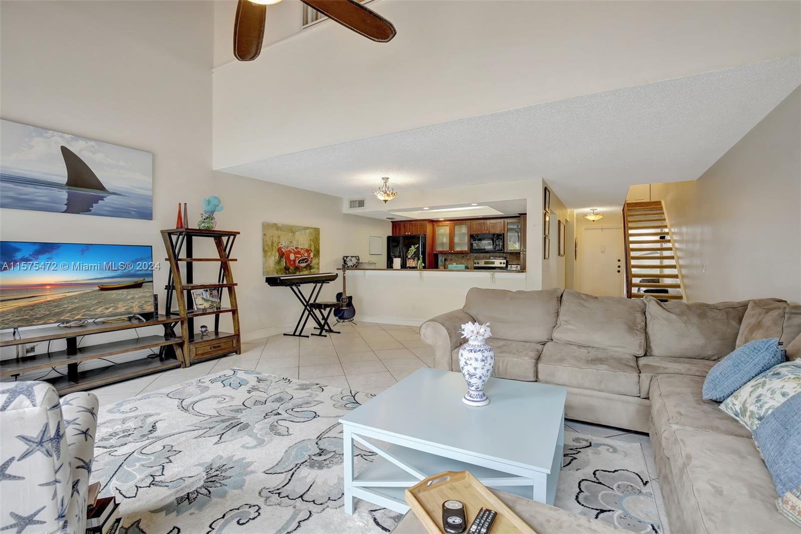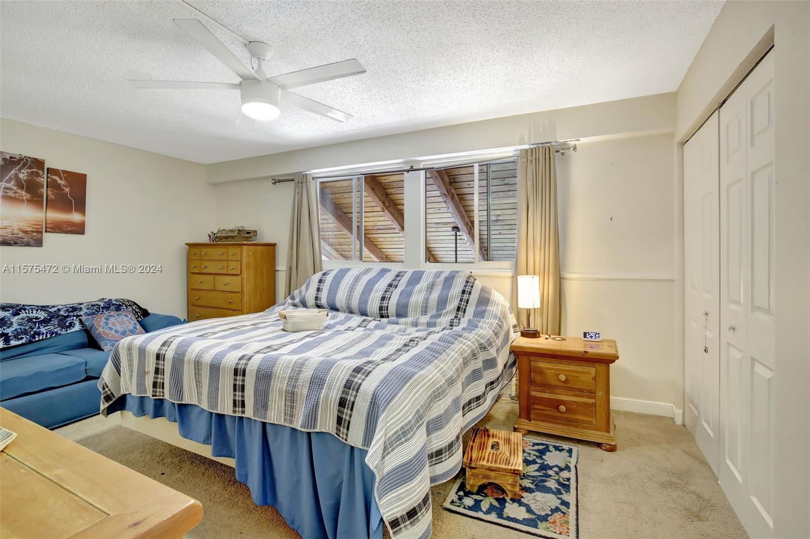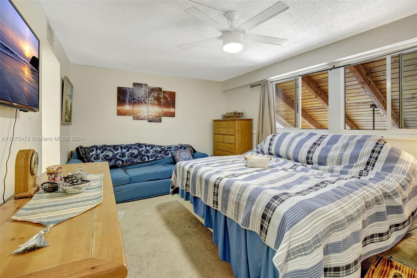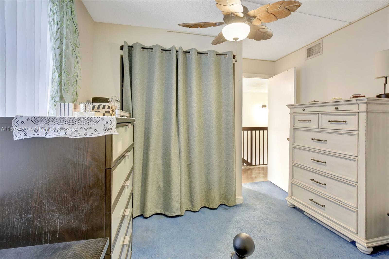 This upgraded two-story townhouse has a spacious open-plan layout and has been well-maintained for ten years. The kitchen features black and chrome appliances, including a Frigidaire with an icemaker and water filtration, a new microwave, and a five-cooktop oven. Downstairs, a large bedroom and an updated full bathroom are present. The tankless water heater ensures endless hot water and energy savings. On the second floor, a large closet at the top of the stairs provides extra storage. The main bedroom includes a newly installed wall-to-wall closet and a closed-in loft with adjustable windows for views or privacy. The laundry room is upstairs with additional storage and an updated full bathroom. The third bedroom also has a new closet and a view of beautiful sunsets.