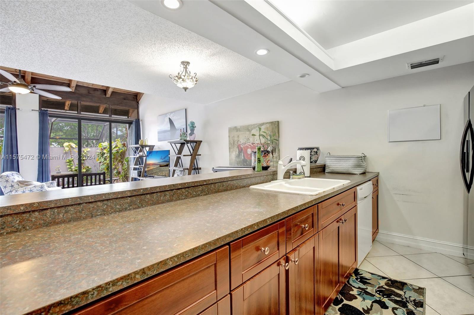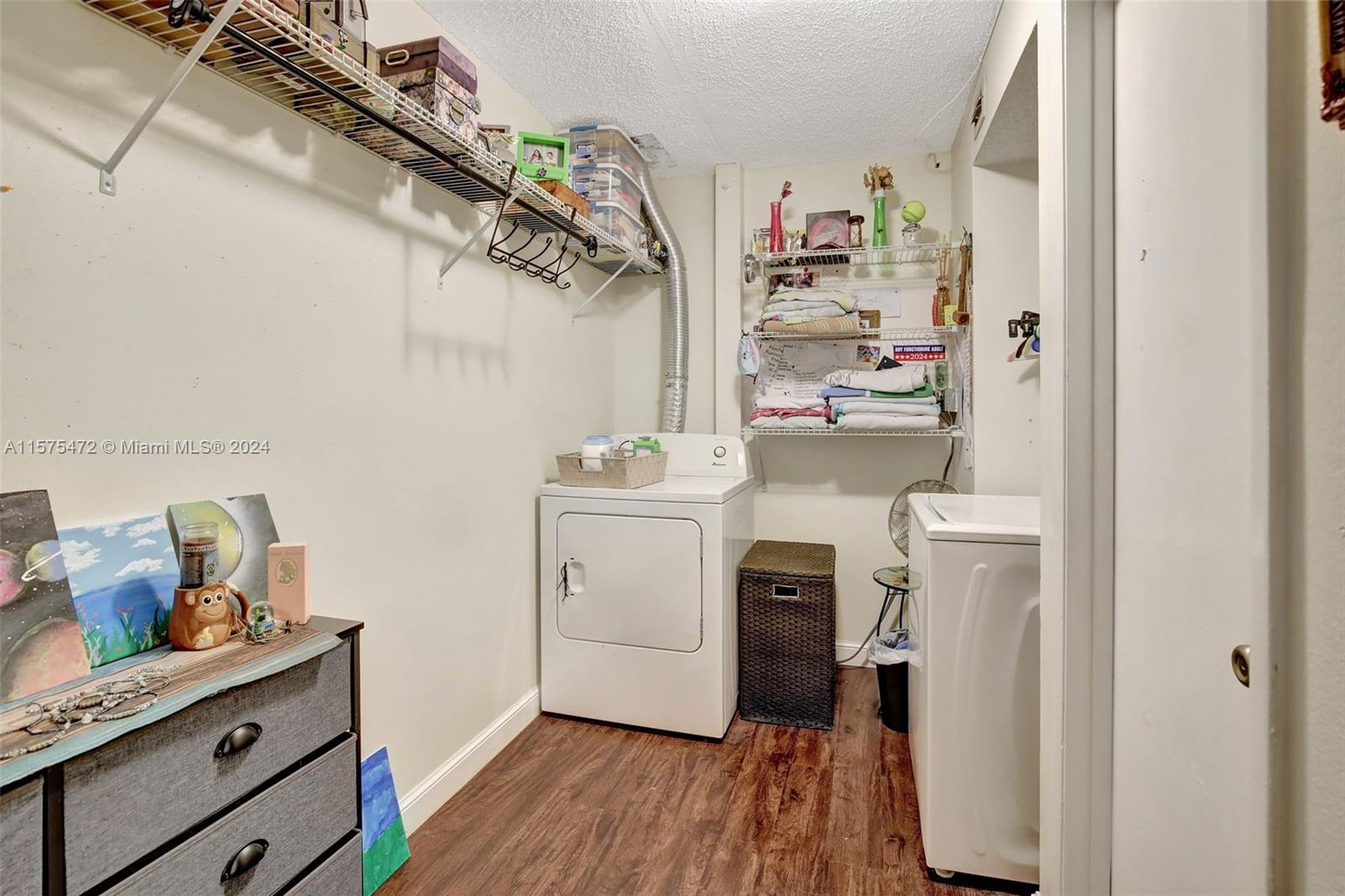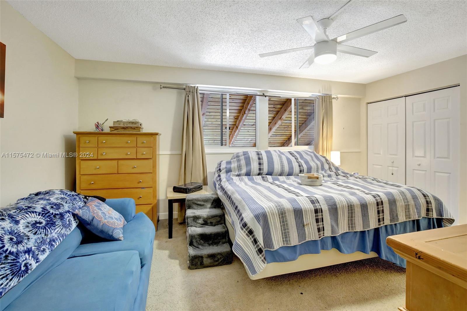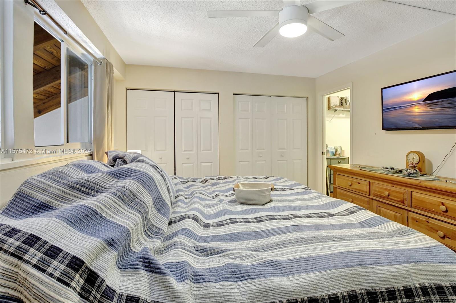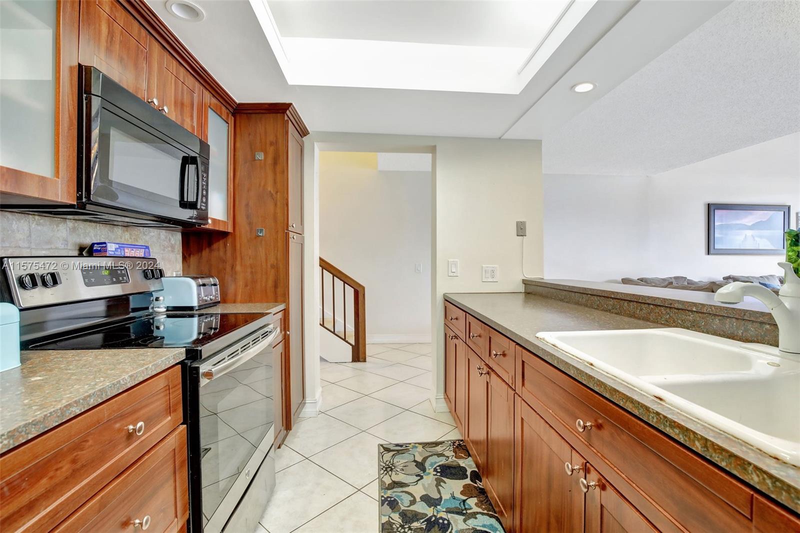 This upgraded two-story townhouse has a spacious open-plan layout and has been well-maintained for ten years. The kitchen features black and chrome appliances, including a Frigidaire with an icemaker and water filtration, a new microwave, and a five-cooktop oven. Downstairs, a large bedroom and an updated full bathroom are present. The tankless water heater ensures endless hot water and energy savings. On the second floor, a large closet at the top of the stairs provides extra storage. The main bedroom includes a newly installed wall-to-wall closet and a closed-in loft with adjustable windows for views or privacy. The laundry room is upstairs with additional storage and an updated full bathroom. The third bedroom also has a new closet and a view of beautiful sunsets.