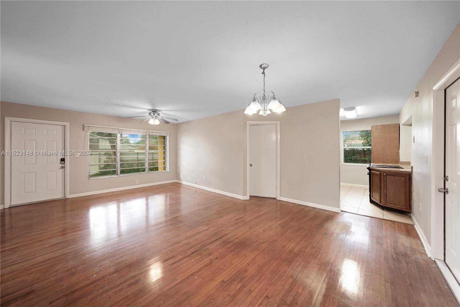 Welcome to this charming 3-bedroom, 2-bathroom home that seamlessly combines modern comfort with timeless elegance. As you step through the front door, you are greeted by the warm embrace of rich wood and cool tile floors that stretch throughout the entire residence.