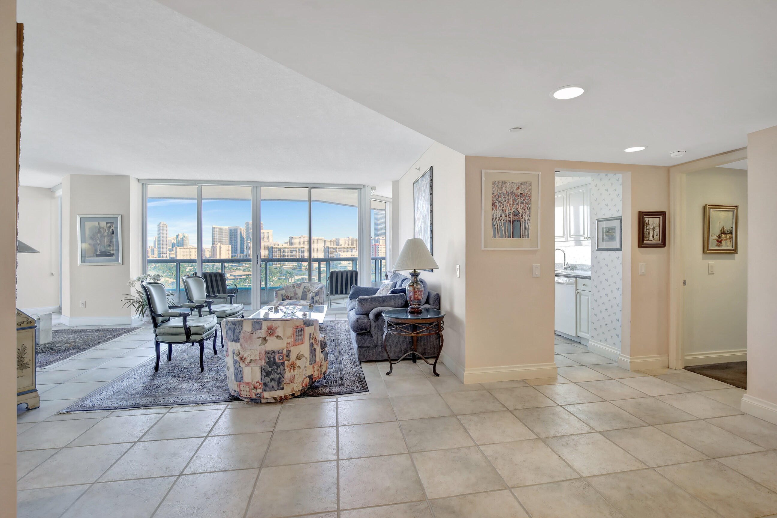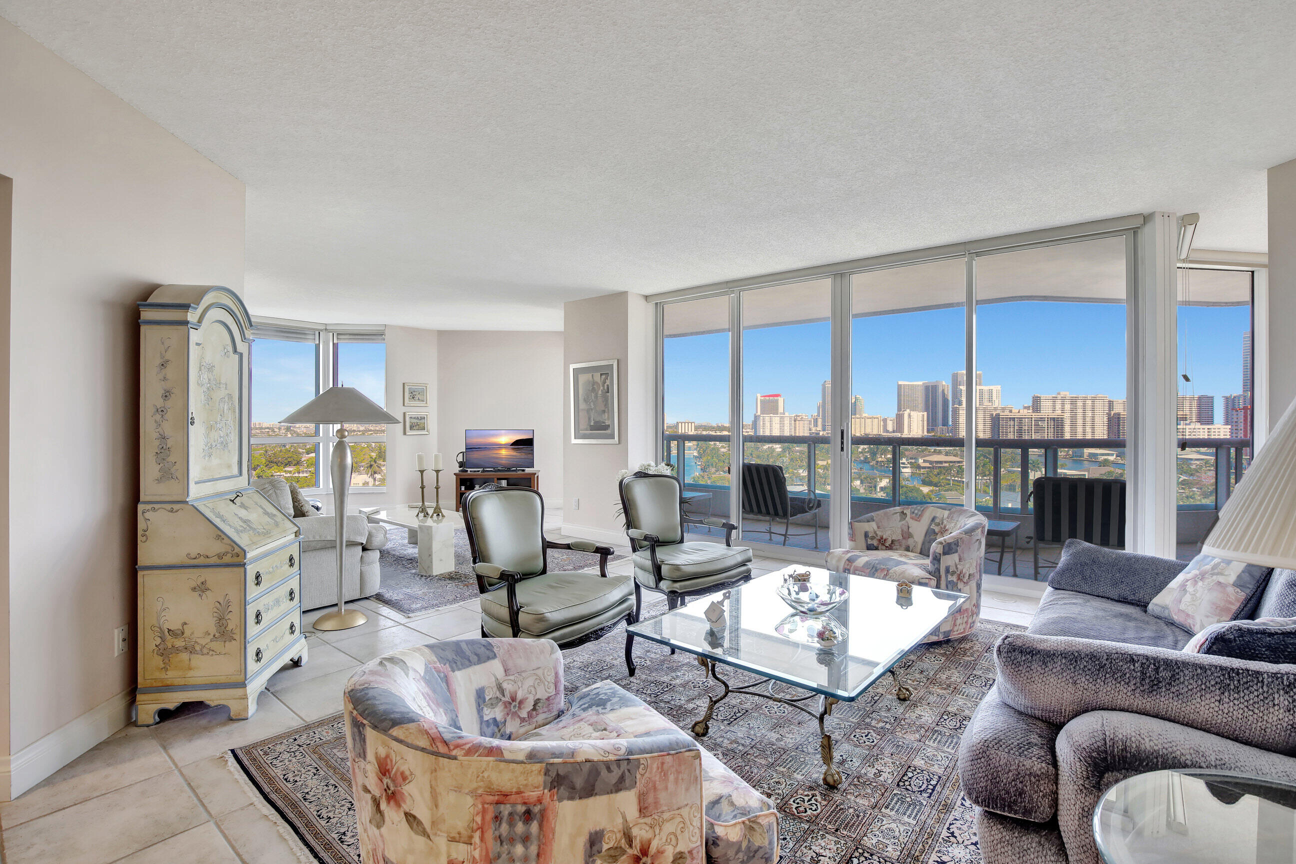 This condominium is situated in the prestigious and highly sought after location of Aventura. The building is meticulously maintained. The building has concierge services and many amenities including a beautiful swimming pool, health club and fitness center with sauna, and valet parking. There are many fine restaurants and shopping plazas in the area including the Aventura Mall only minutes away. The beach is just a short drive over the intracoastal water way. The apartment is a spacious and quiet corner unit that was modified by the builder from a 3 bedroom to a 2 bedroom unit thereby increasing the space in the main living area. The unit has floor to ceiling windows with sweeping views of the city and coastline with an oversized wrap around terrace which is great for entertaining.