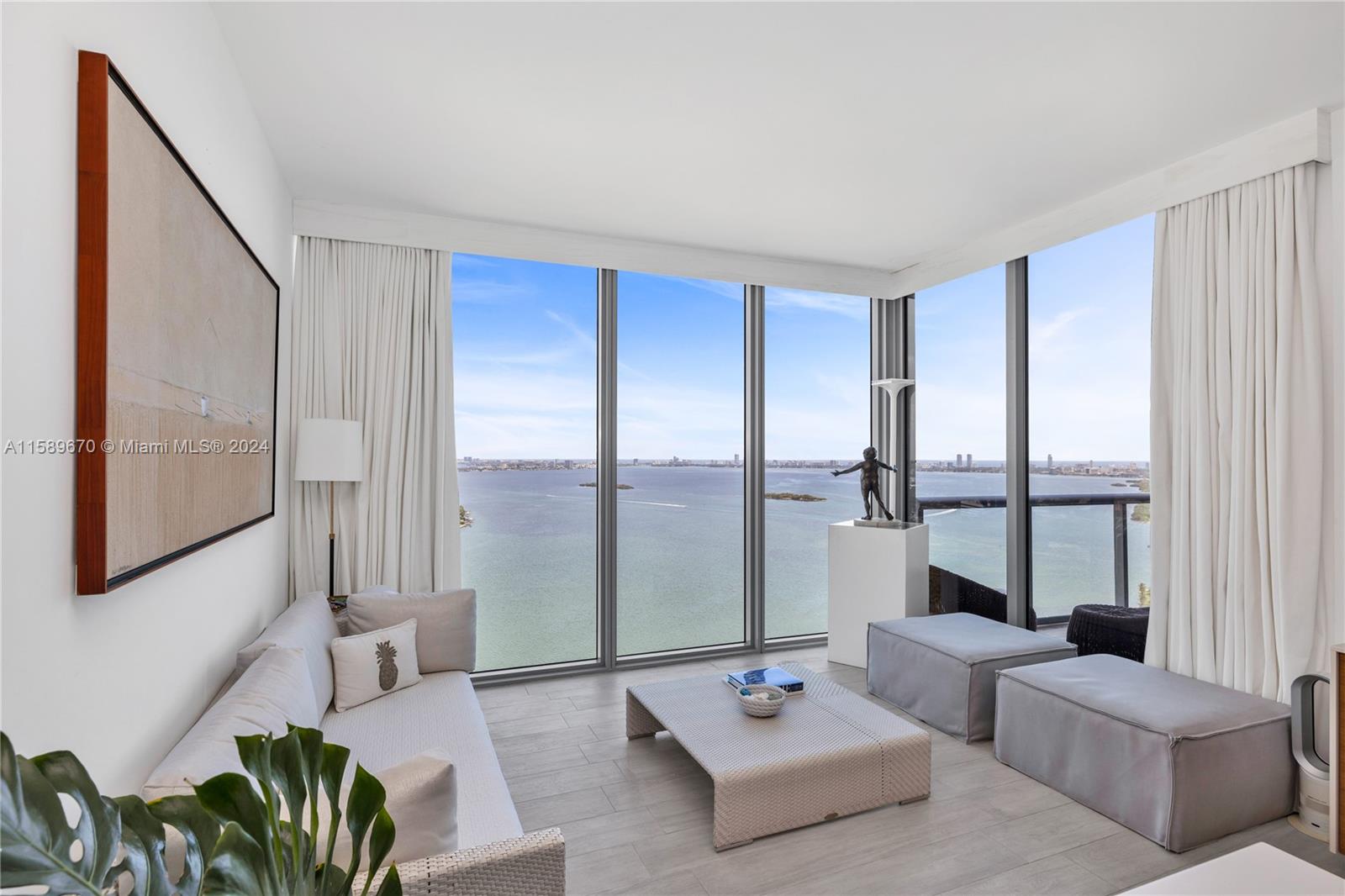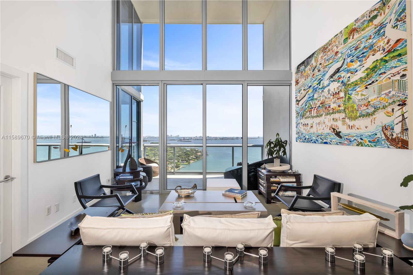 ONE-OF-A-KIND EDGEWATER TWO-STORY PENTHOUSE WITH 22 FT CEILINGS AND PANORAMIC NORTHEAST AND SOUTH DIRECT WATER VIEWS OF BISCAYNE BAY, MIAMI BEACH, DOWNTOWN, AND THE PORT OF MIAMI. OVERSIZED KITCHEN WITH LIMESTONE AND WHITE OAK FLOORS, CUSTOM CALIFORNIA CLOSETS, AND LIGHTING. 3 PARKING SPACES, ONE VALET & 2 ASSIGNED PARKING SPACES WITH A LARGE STORAGE INCLUDED. THIS LANDMARK ARQUITECTONICA BUILDING FEATURES 24 HOUR VALET, SECURITY, CONCIERGE, 2 POOLS, FITNESS AND BUSINESS CENTERS, STORAGE LOCKERS AND MUCH MORE.