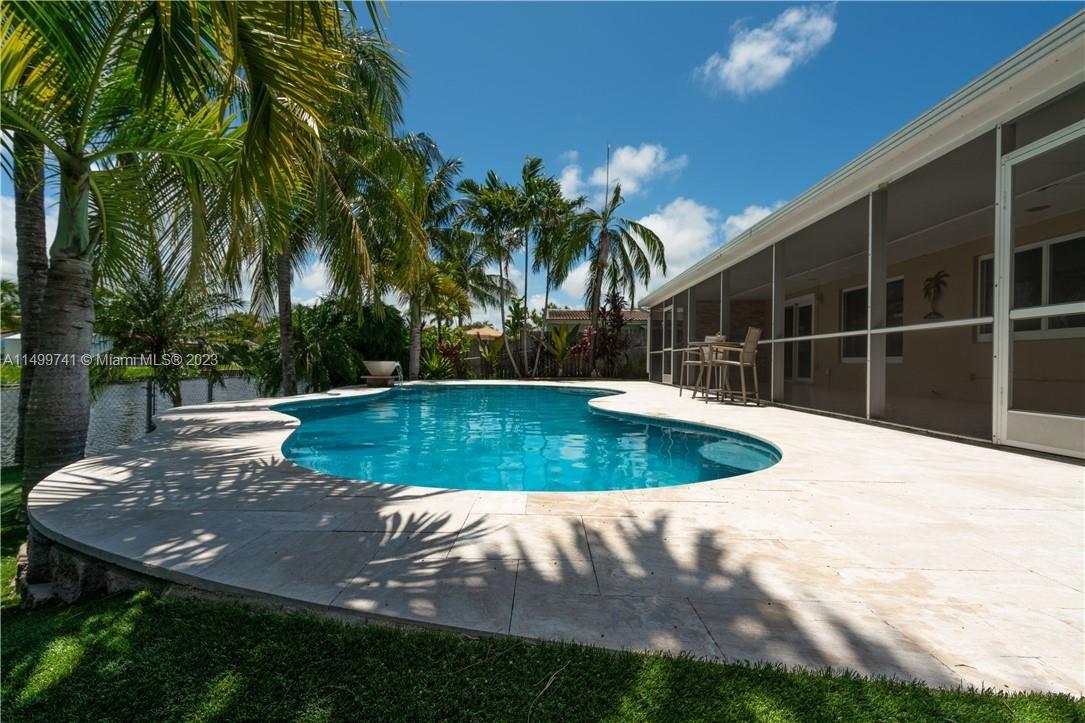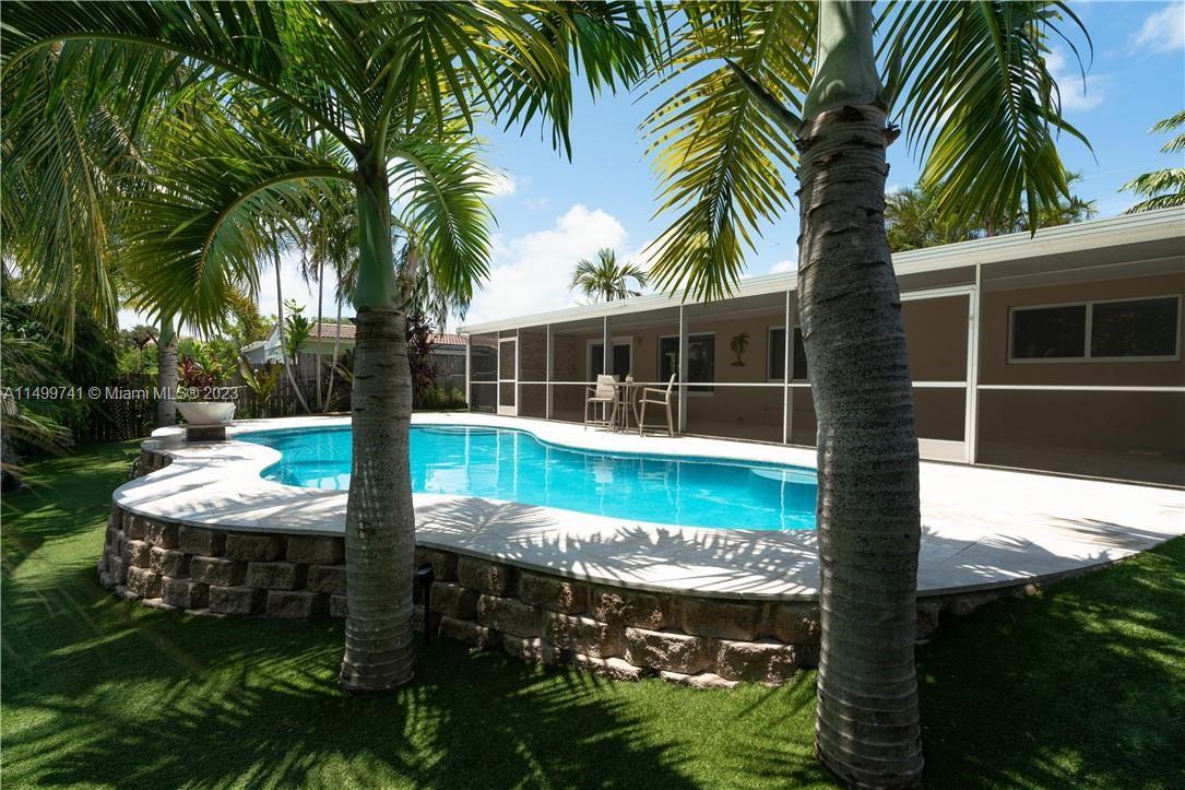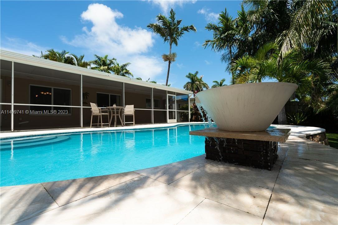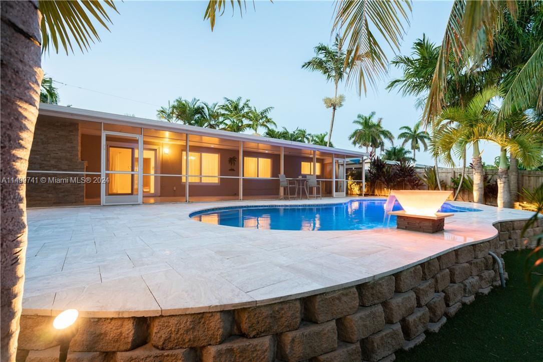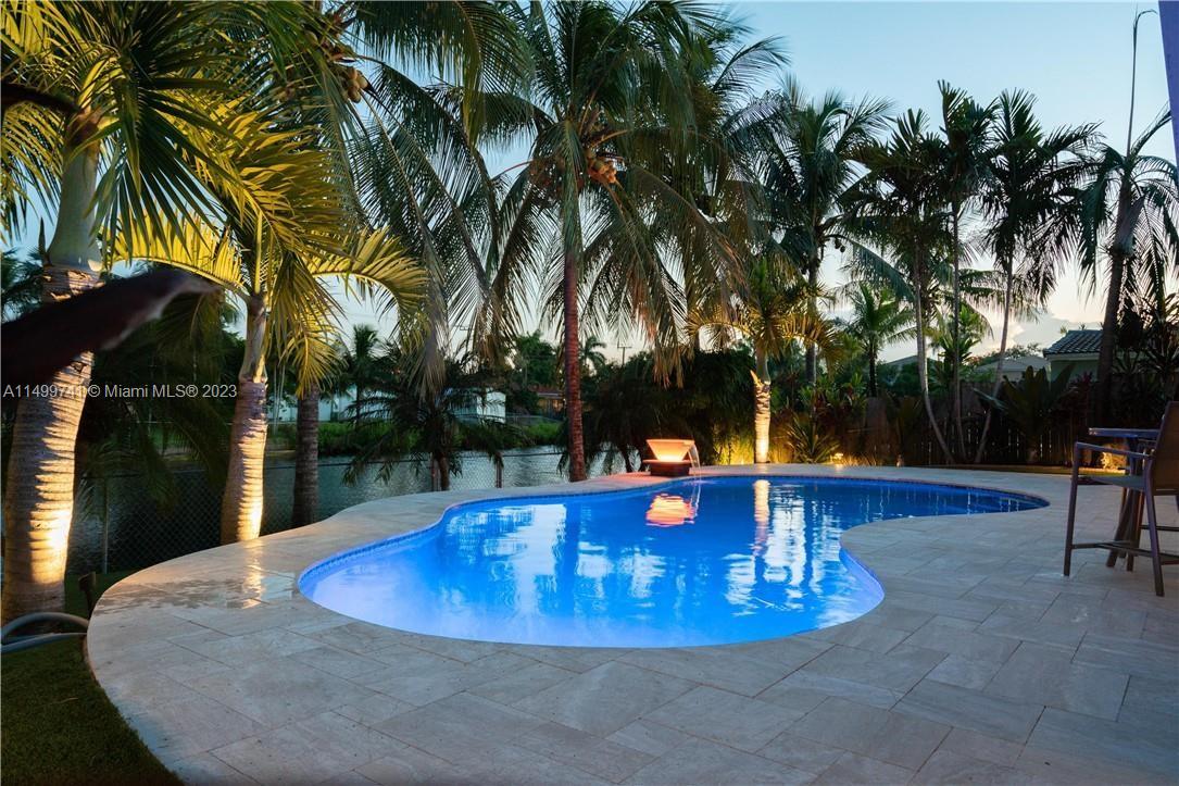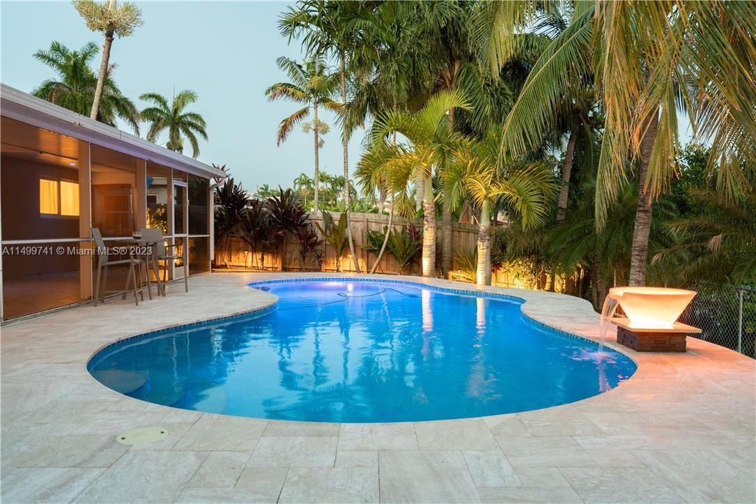 This waterfront pool home sits on a cul-de-sac just two miles from Hollywood Beach. Italian marble wraps the heated saltwater pool which is framed by tropical foliage.. Warm landscape lighting and the "fire bowl" create the perfect mood for entertaining poolside. The oversized screened patio provides more than 400SF of space to relax and take a break from the Florida sun. Inside, you'll find three bedrooms and two bathrooms, both of which have been tastefully updated. The eat-in kitchen features granite countertops, KitchenAid stainless steel appliances, including an induction cook top. All of the home’s windows and doors are hurricane impact. The seawall has been recently rebuilt and will last for decades to come. Don’t miss out on this tropical oasis!