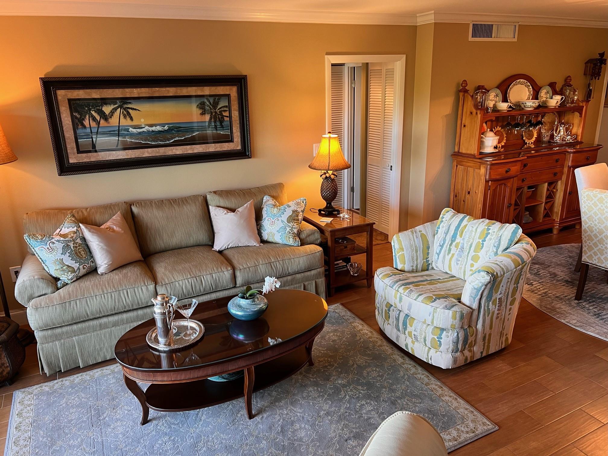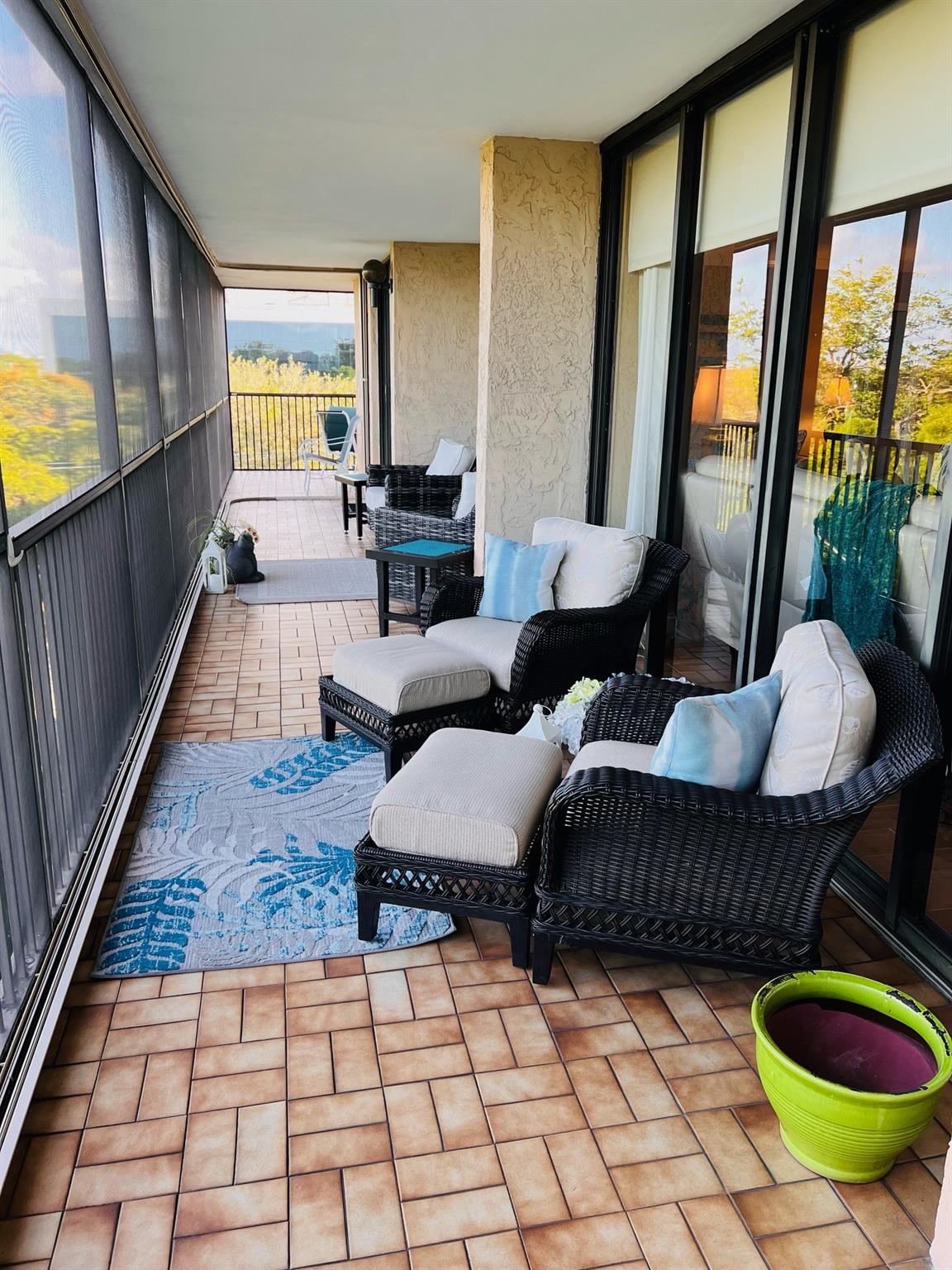 RARELY AVAILABLE CORNER PENTHOUSE QUEENSBERRY UNIT IN THE GRANDVIEW. Completely renovated, new hot water heater and AC in 2022. Completed 40 yr inspection. Only model with wrap around terrace 615 sq ft, and 1931 sq ft of living space under air. Two bedrooms, 2 and 12 baths, with a den and room for a large 3rd bedroom if needed. Extra storage room. Hugh balcony provides a breakfast area off the eat-in kitchen and access from every room. Large Primary suite with sitting area and modern bathroom. 2nd bedroom also has an in-suite bathroom. The Grandview complex has a new roof and new pool. ALL assessments paid. Great location, close to doctors, grocery, drug stores, banks, restaurants and houses of worship. Minutes to the cruise port, airport, and beach. Furniture negotiable.