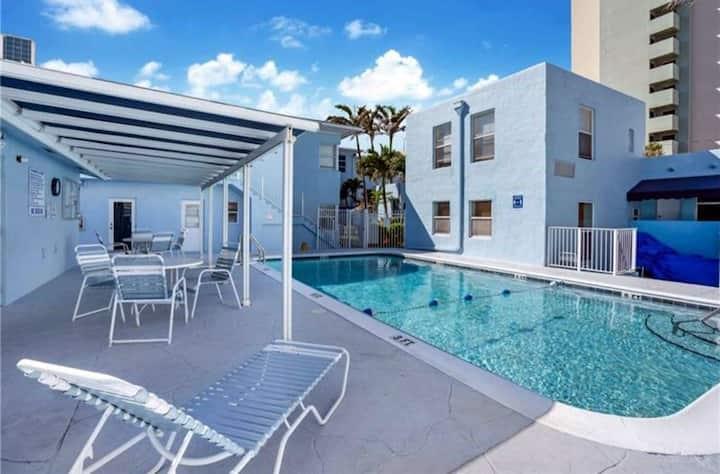 turnkey income generating unit steps from one of the best beachside locations just outside the Hollywood Beachboardwalk, Charming unit with white tile floors, fully furnished, with a separate bedroom, bathroom, dining roomand kitchen with breakfast coffee table, and large storage space, including bedding, dishes and beach accessoriesand everything you need to enjoy your time and relax just steps from this tropical paradise or you can rent itimmediately short or long term. At Windwood Seas you will find a private heated pool, community laundry,barbecue, picnic area and a private parking space, as well as visitor parking space, private and gated condominiumwith security codes. CALL FOR A PRIVATE SHOWING.