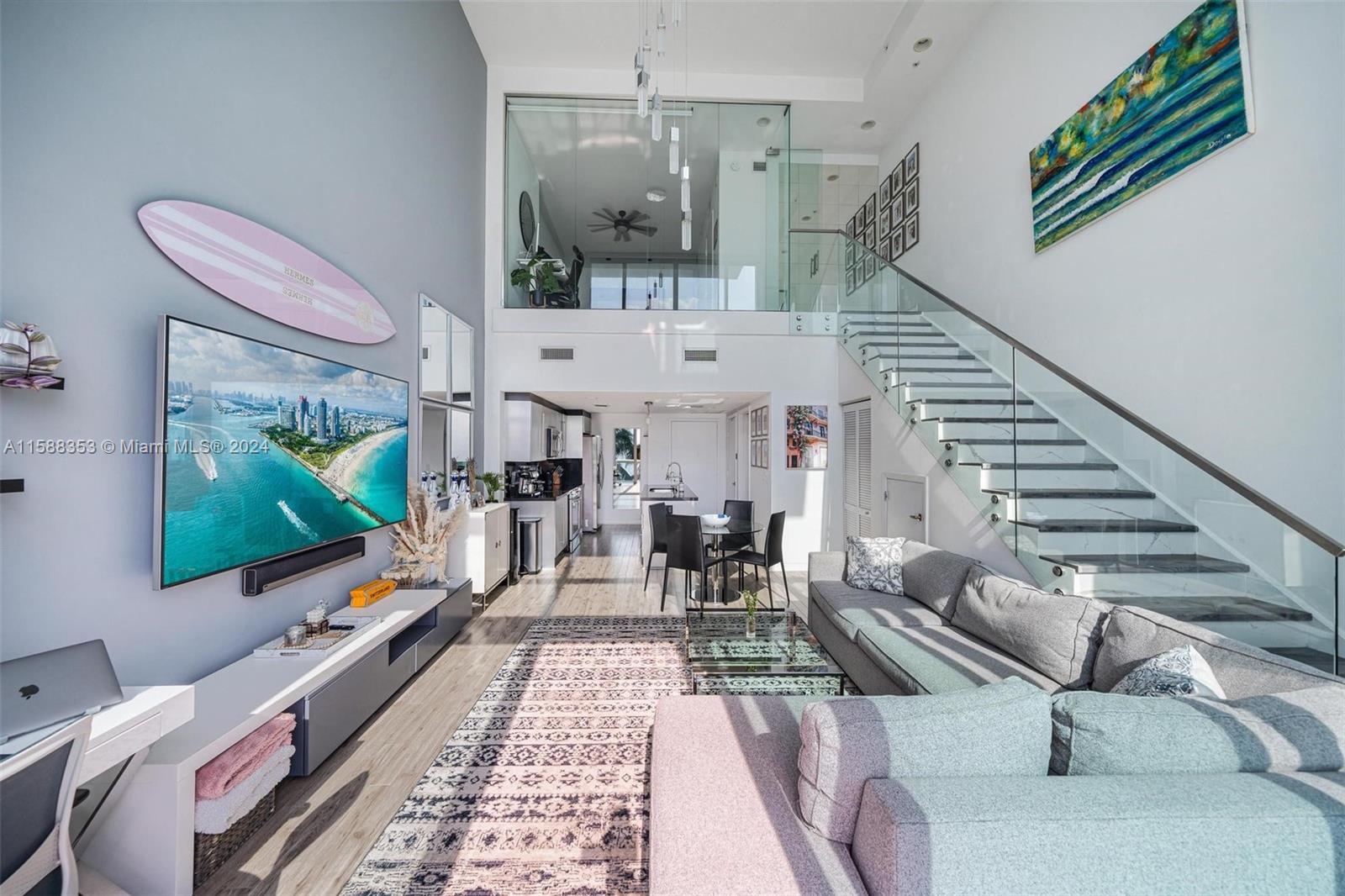 Presenting this rare opportunity to call one of the only 2-story LOFT units in the Onyx On The Bay complex your new home! Located in one of the most sought-after buildings in all of Edgewater, this modern residence boasts 2 story floor-to-ceiling windows wautomatic shades providing captivating water views that create the sensation of floating on the bay. The kitchen boasts Samsung appliances an oversized island. There is also a powder room on the first floor, perfect for guests. The oversized bedroom suite has a large walk-in closet boasts a recently updated bathroom adorned wmarble. This unit also has an updated marble wood staircase wglass railing. Onyx On The Bay offers incredible amenities such as a gym, sauna, Bayfront pool. Centrally located to Downtown, Brickell, more!