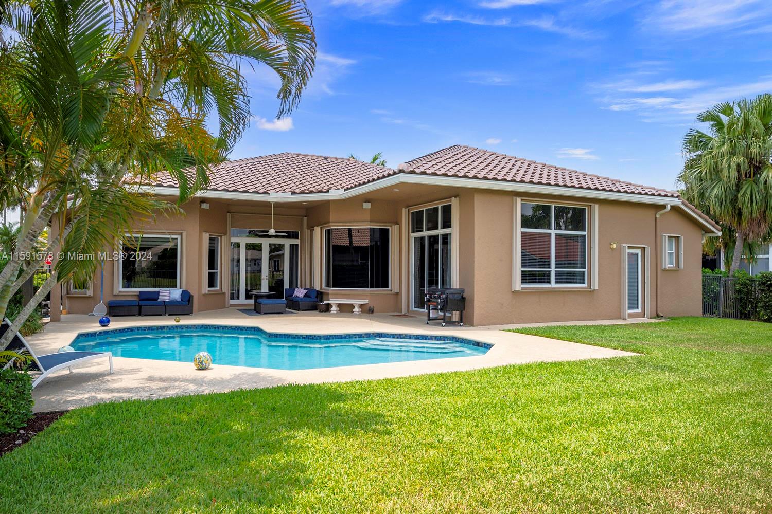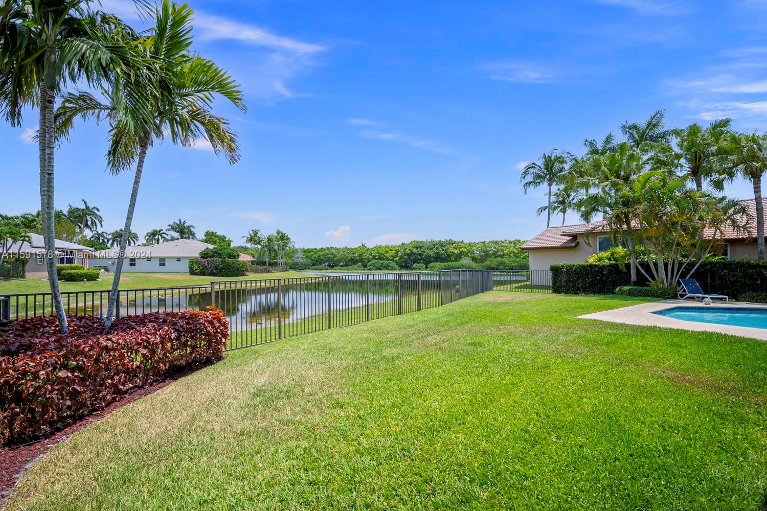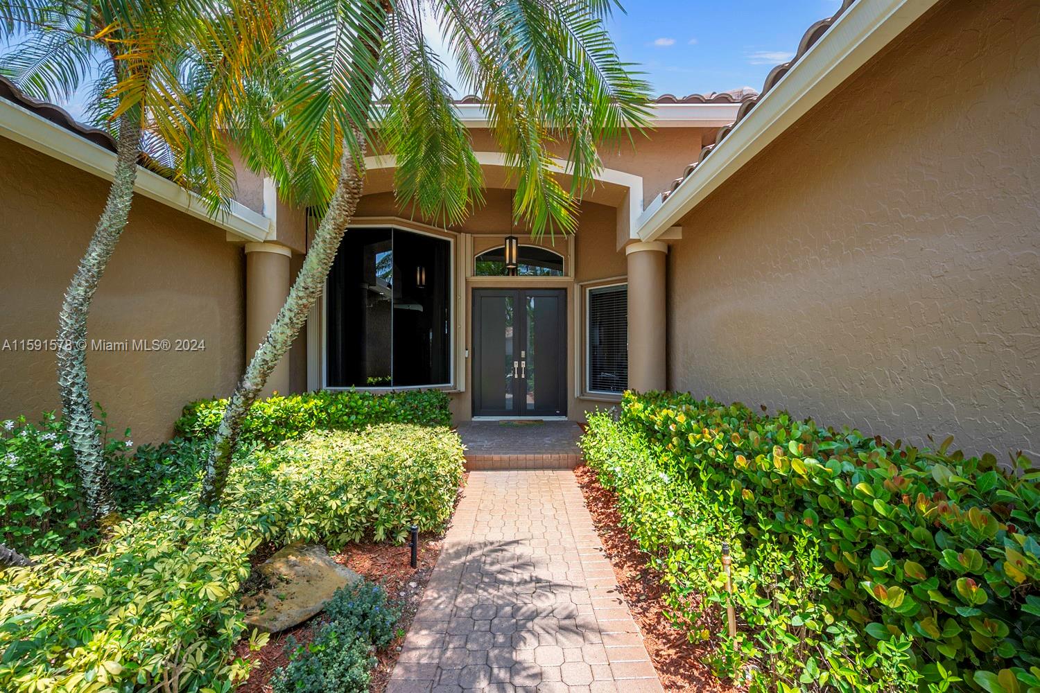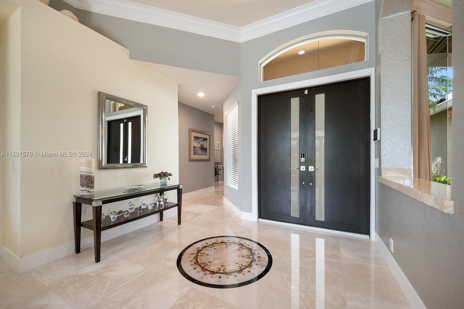 Come see this magnificent lakefront pool home with a 3-car garage in the prestigious, 24-hour guard-gated community of Weston Hills. This home features 5 bedrooms, 3 bathrooms, a large laundry room, a unique master bath with a wet room and freestanding tub, marble tile, a custom walk-in closet, and a mosquito sprayer in the backyard. Enjoy the beautiful, newly renovated pool with Diamond Brite, new tile, and a pool deck. The renovated kitchen boasts stainless steel appliances, cherry wood cabinets, quartz countertops, and an island. Crown molding is present throughout the entire house. Additional features include accordion shutters, an oversized lot, two A/C units replaced in 2023, a new roof in 2023, and an impact-resistant front door.