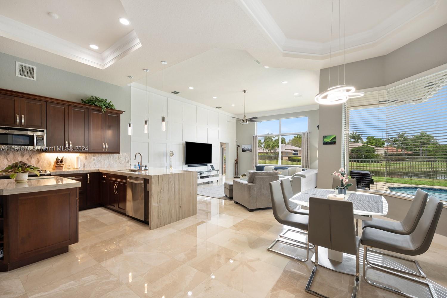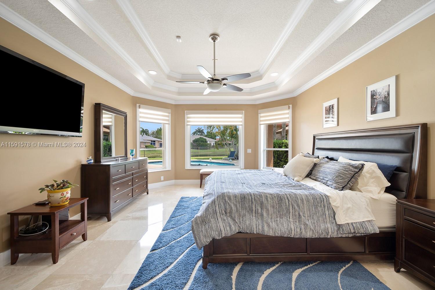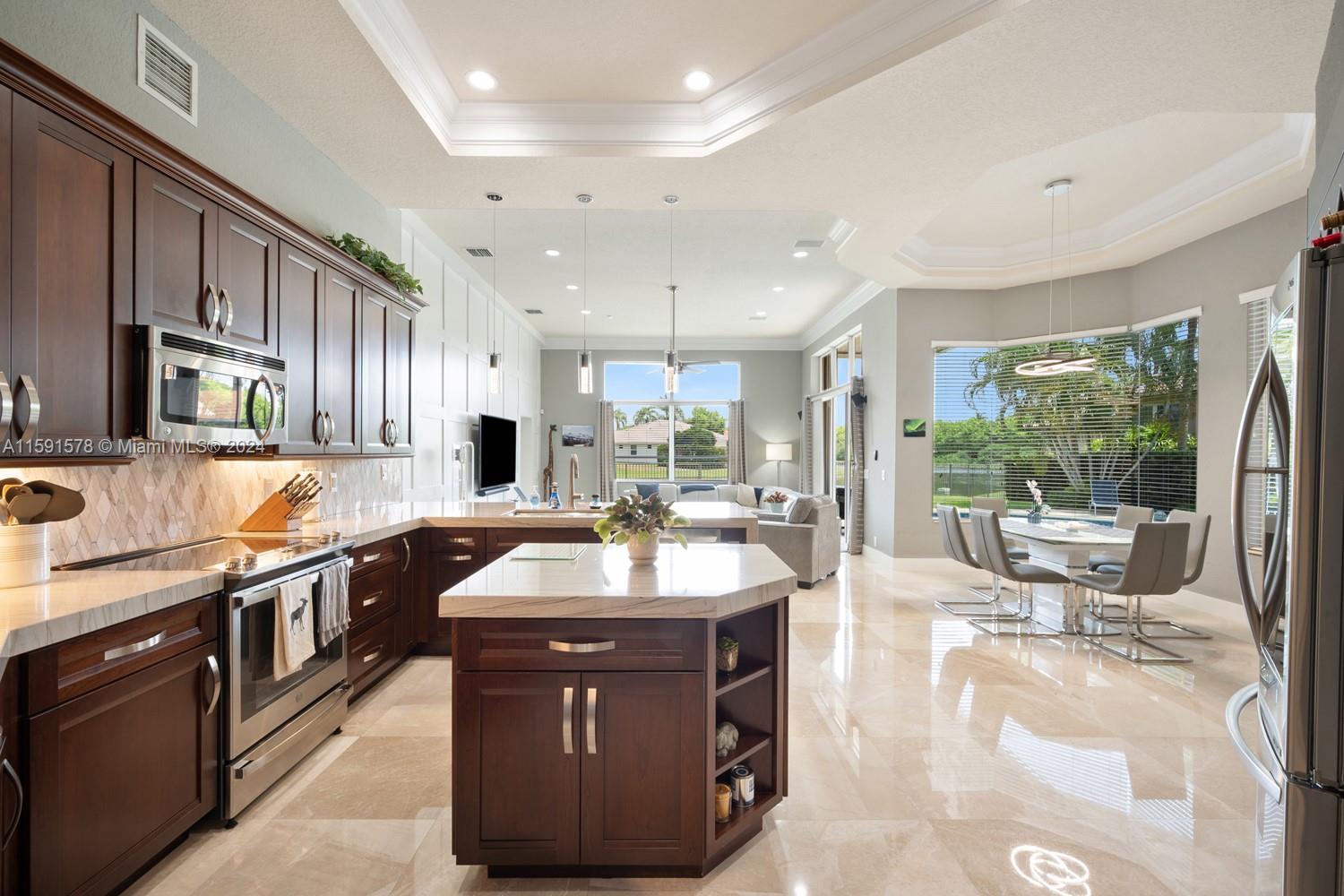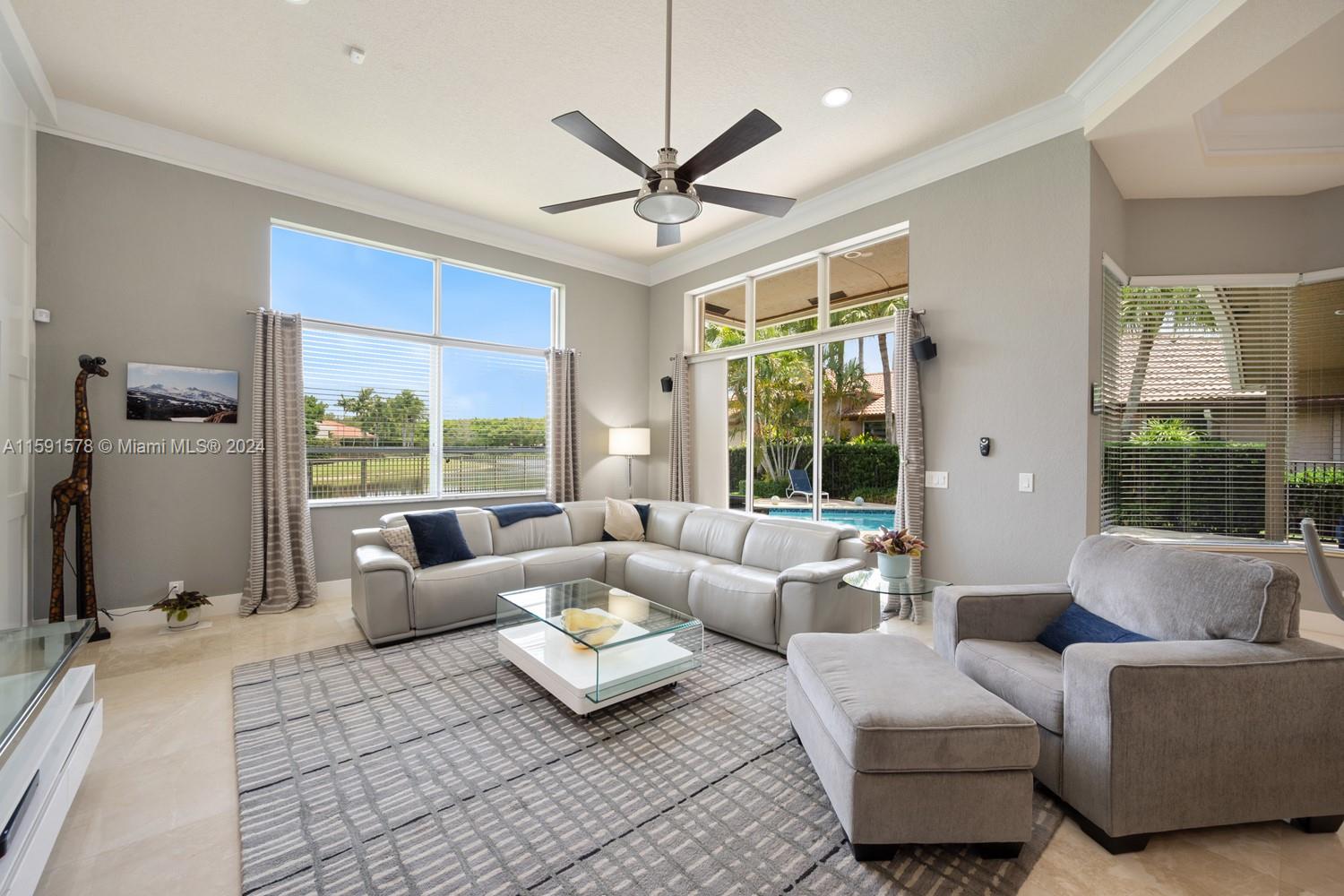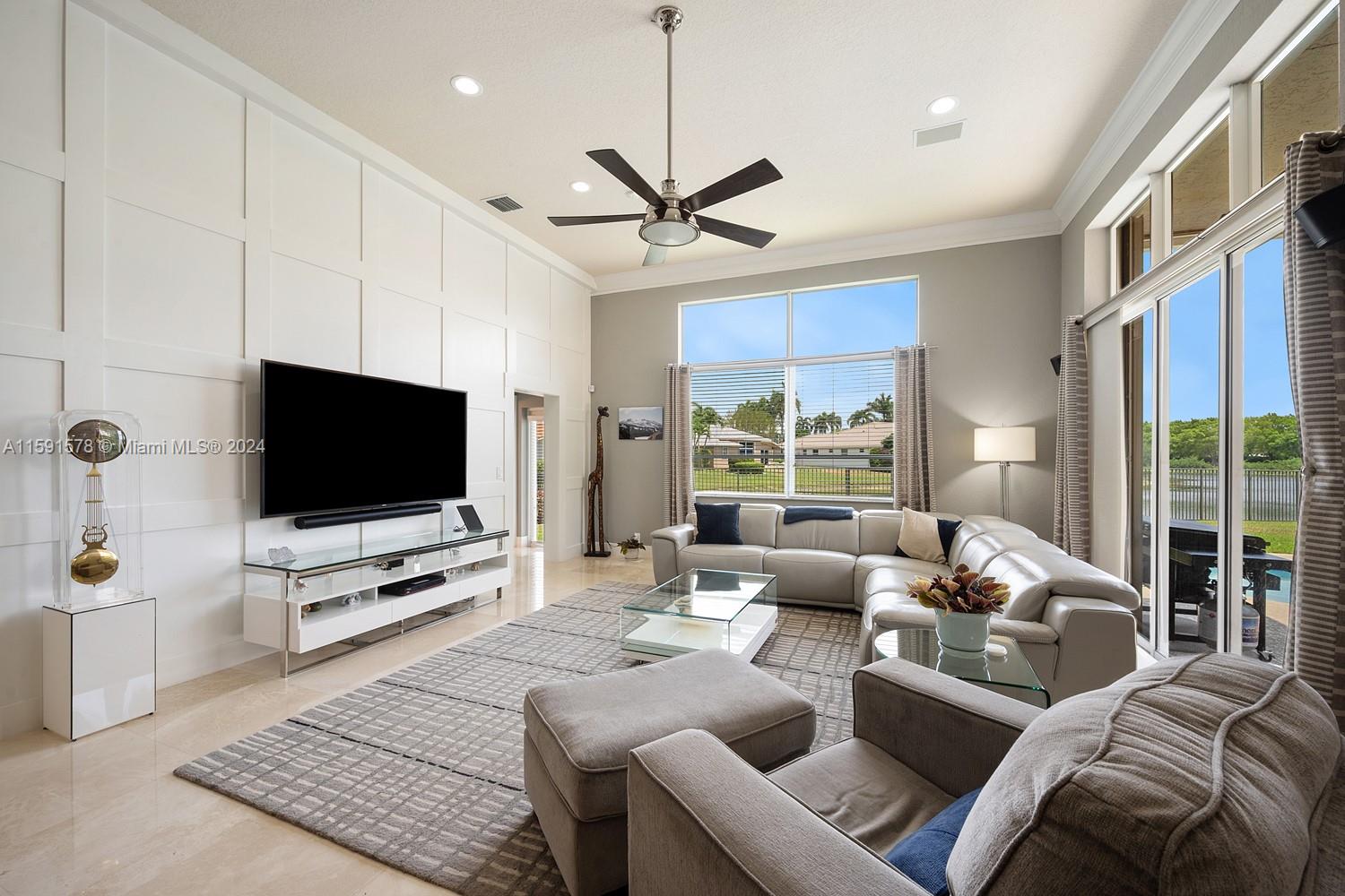 Come see this magnificent lakefront pool home with a 3-car garage in the prestigious, 24-hour guard-gated community of Weston Hills. This home features 5 bedrooms, 3 bathrooms, a large laundry room, a unique master bath with a wet room and freestanding tub, marble tile, a custom walk-in closet, and a mosquito sprayer in the backyard. Enjoy the beautiful, newly renovated pool with Diamond Brite, new tile, and a pool deck. The renovated kitchen boasts stainless steel appliances, cherry wood cabinets, quartz countertops, and an island. Crown molding is present throughout the entire house. Additional features include accordion shutters, an oversized lot, two A/C units replaced in 2023, a new roof in 2023, and an impact-resistant front door.