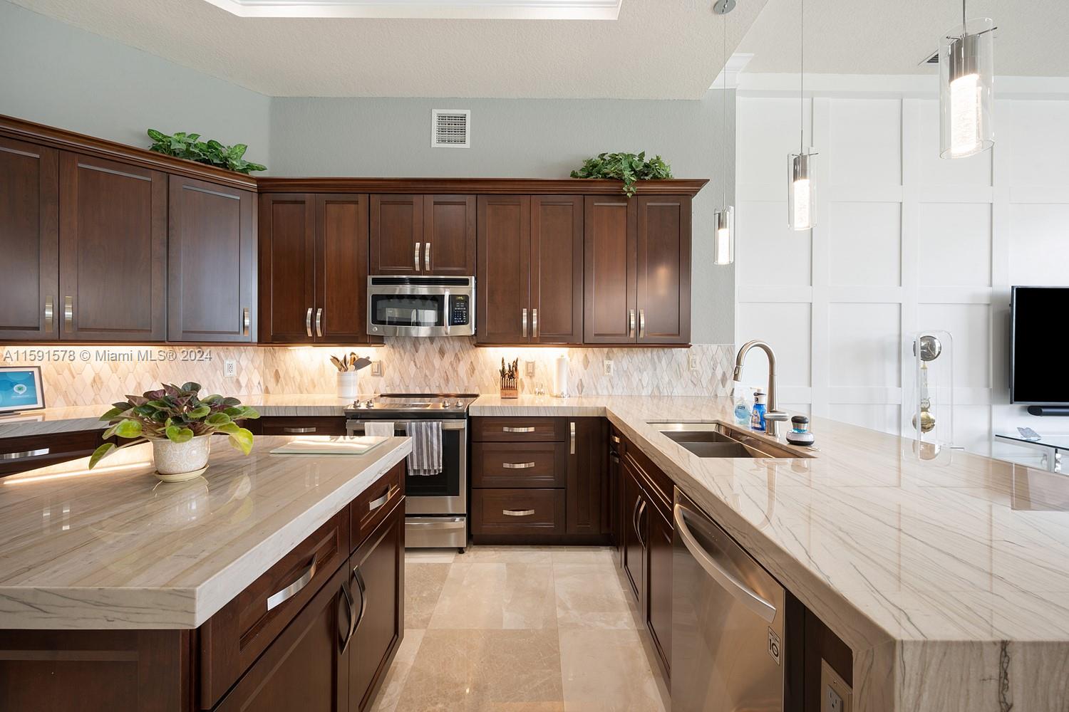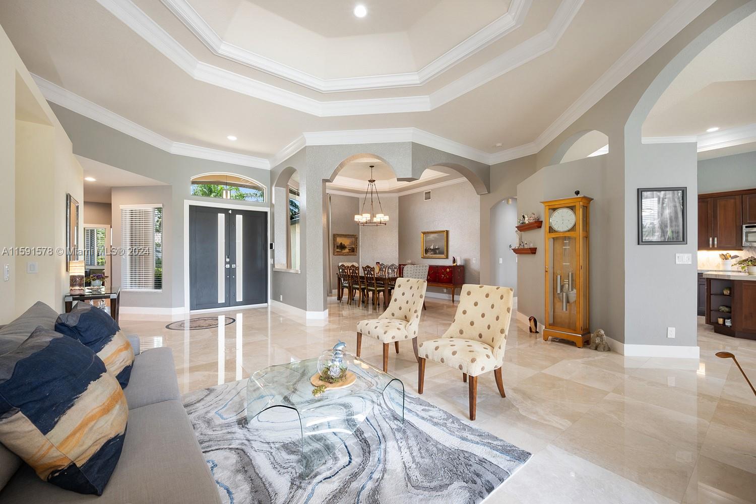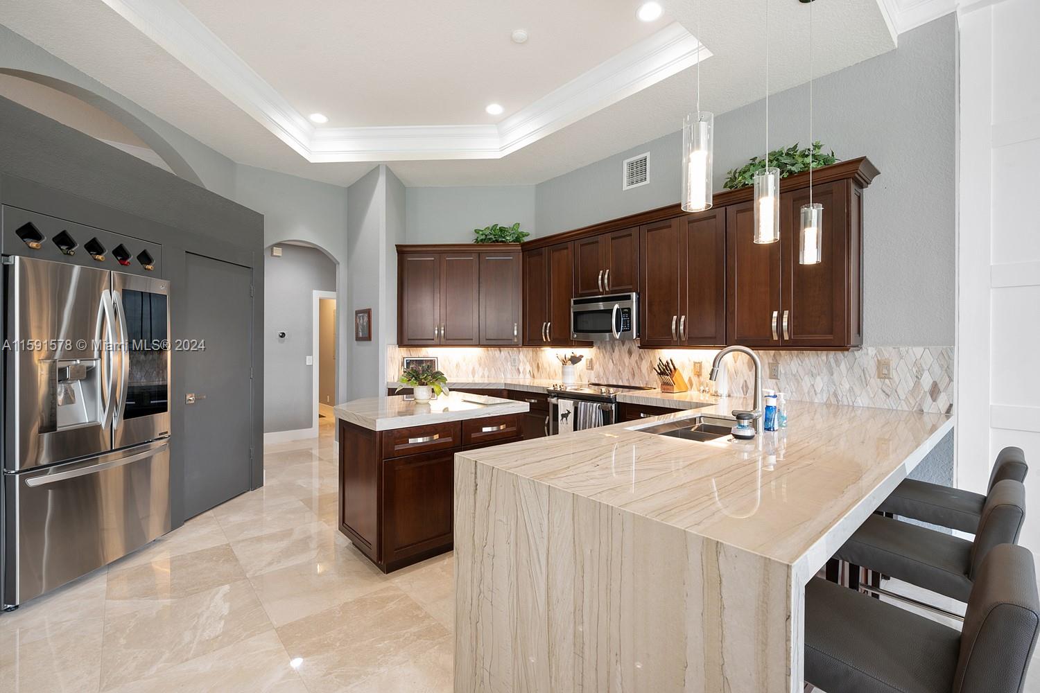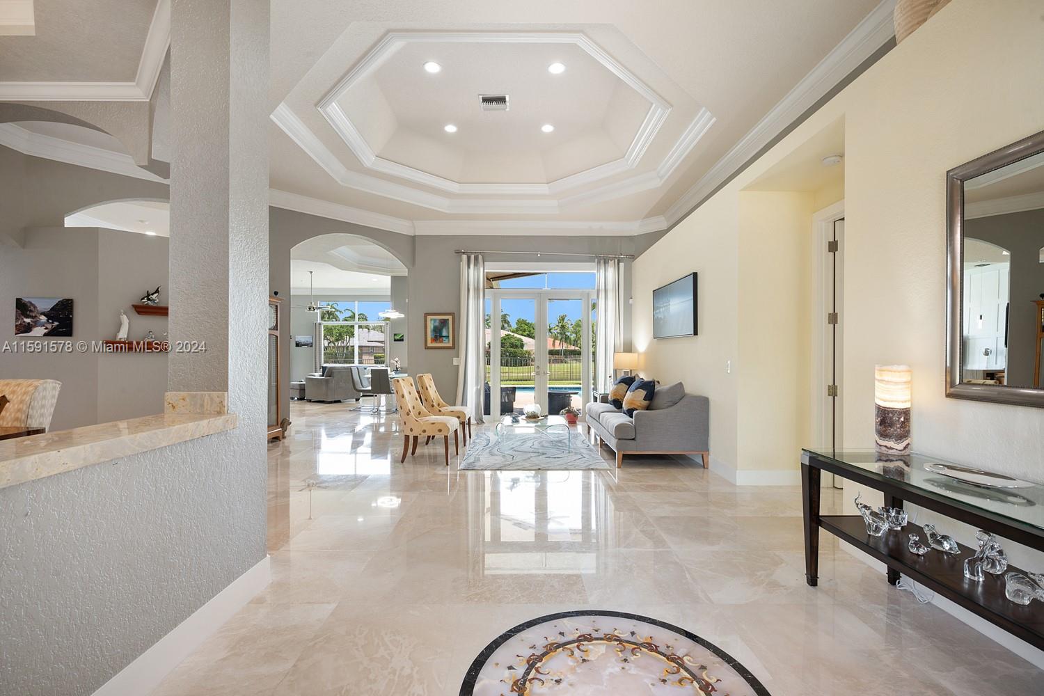 Come see this magnificent lakefront pool home with a 3-car garage in the prestigious, 24-hour guard-gated community of Weston Hills. This home features 5 bedrooms, 3 bathrooms, a large laundry room, a unique master bath with a wet room and freestanding tub, marble tile, a custom walk-in closet, and a mosquito sprayer in the backyard. Enjoy the beautiful, newly renovated pool with Diamond Brite, new tile, and a pool deck. The renovated kitchen boasts stainless steel appliances, cherry wood cabinets, quartz countertops, and an island. Crown molding is present throughout the entire house. Additional features include accordion shutters, an oversized lot, two A/C units replaced in 2023, a new roof in 2023, and an impact-resistant front door.