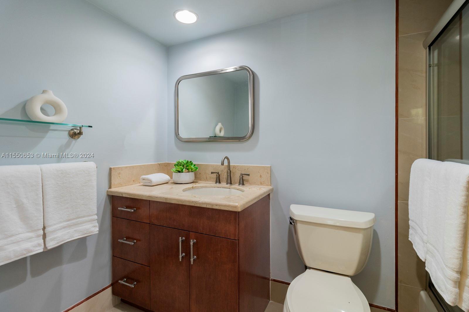 Gorgeously updated 1/1.5 spacious and quiet unit with top-of-the line kitchen, renovated baths, and impact glass windows and door. Recently renovated and ideal Gables Waterway Tower features heated pool (on the water with idyllic views), valet service, front desk, very nice common areas/rooms, wonderful staff and management, and more!