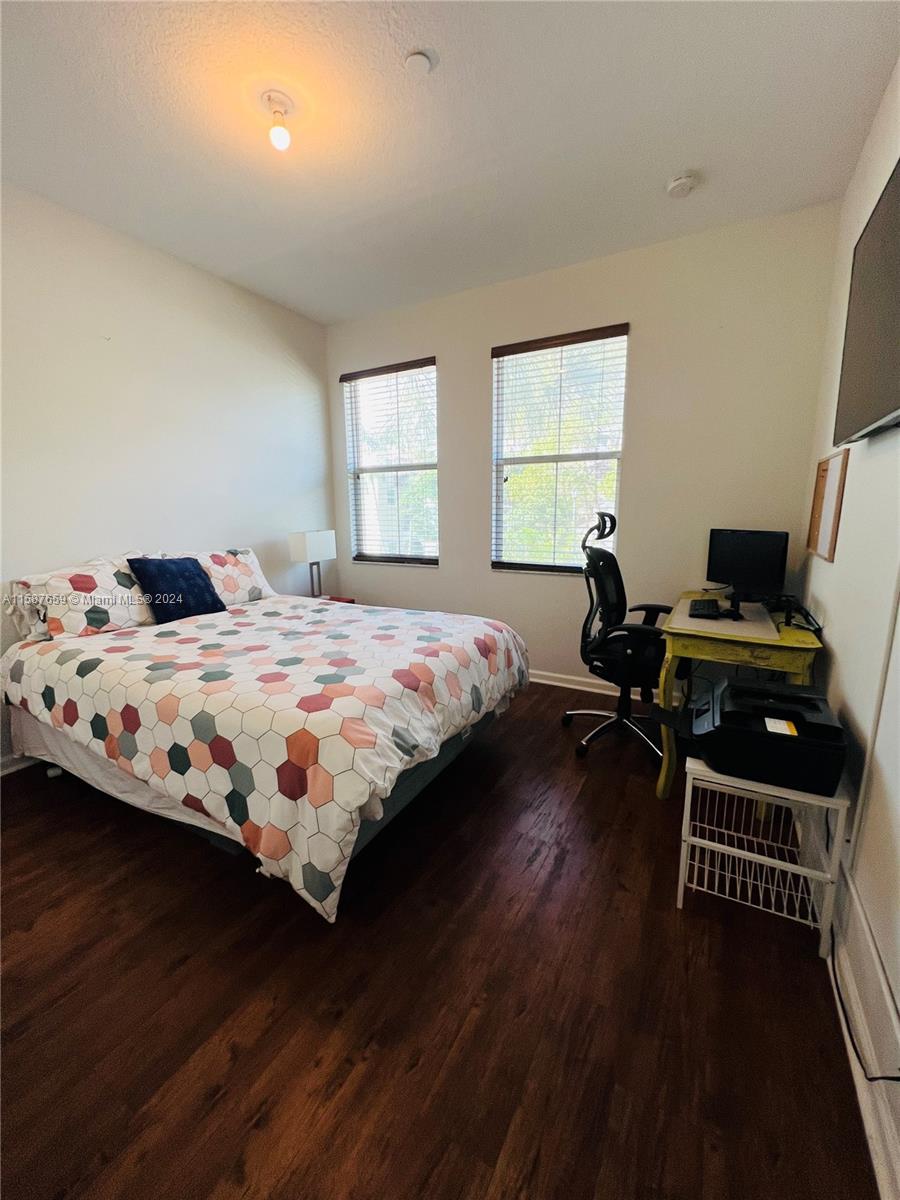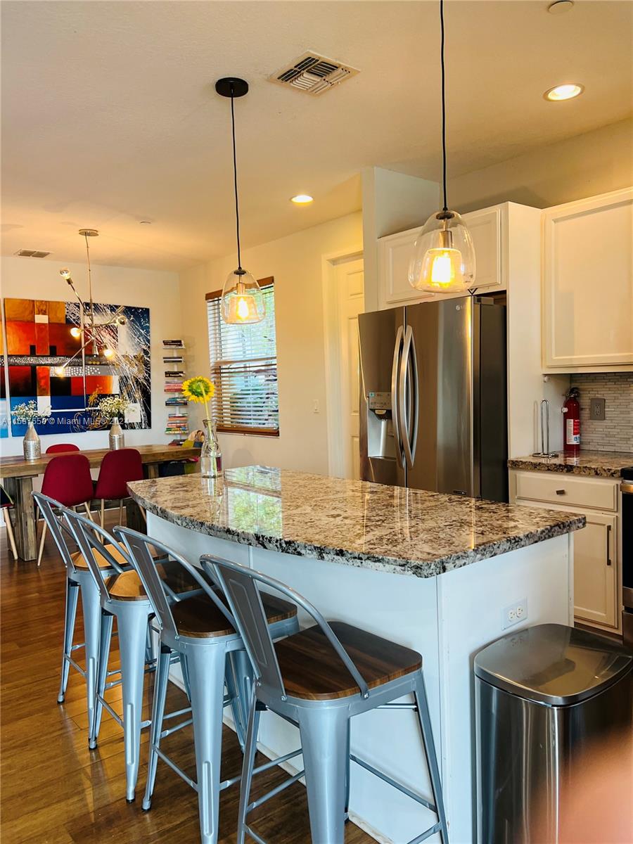 Discover refined living in this 1450 sqft townhouse, beautifully renovated with an open-concept kitchen, laminate flooring throughout, and impact windows. Features include integrated CCTV, infrared AC system, three bedrooms upstairs with a spacious master suite, balcony with lake views, and upper-floor laundry. Includes two parking spaces. Enjoy community amenities like a timed pool, clubhouse, gym, large pool, splash park, tennis, and basketball courts. Excellently maintained with paths connecting to Monterra.