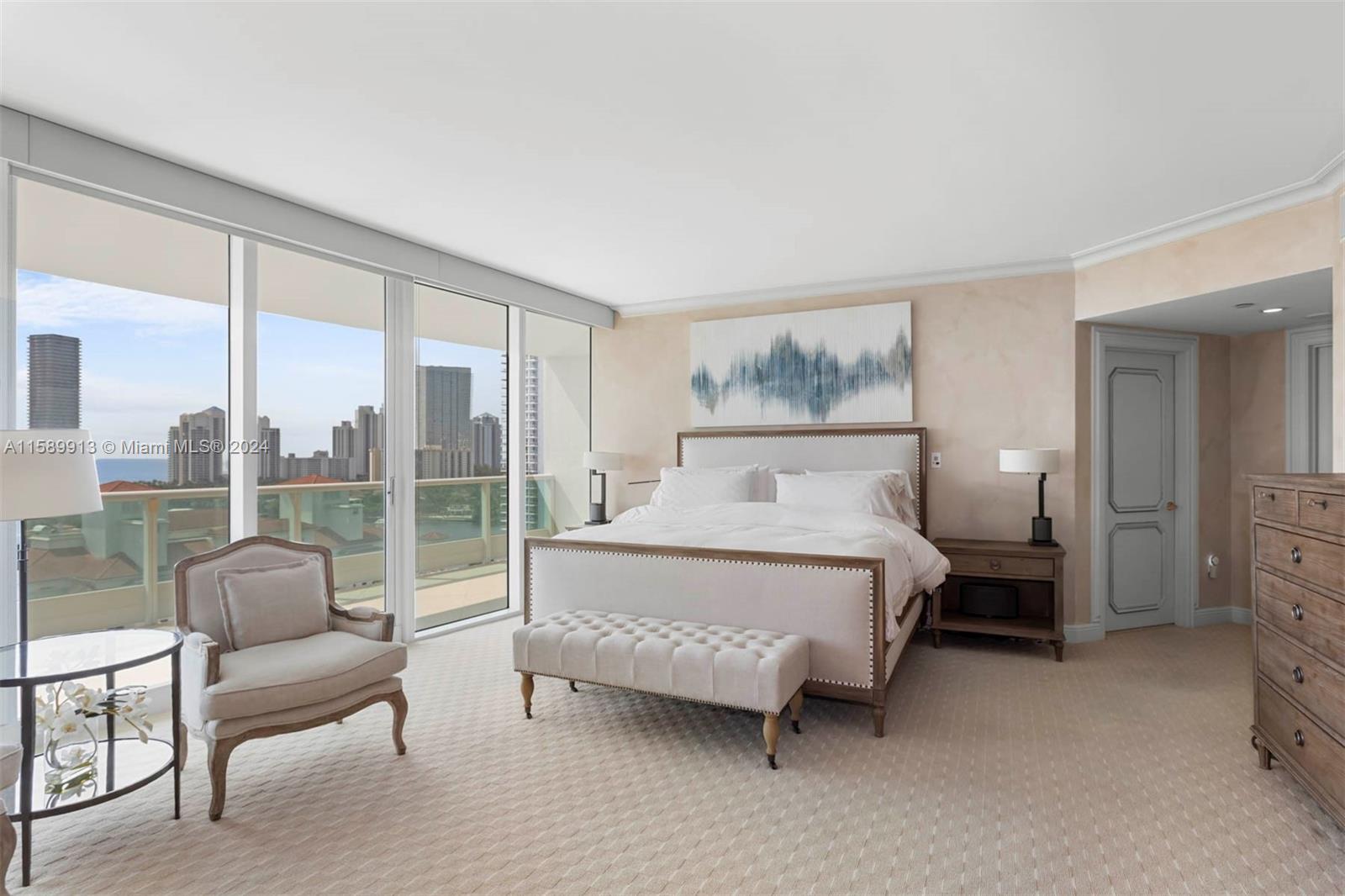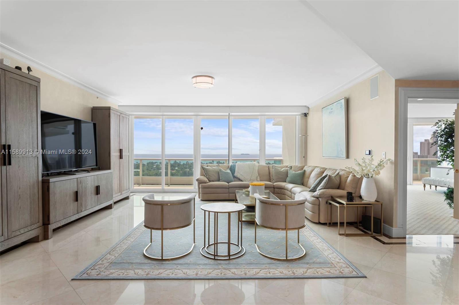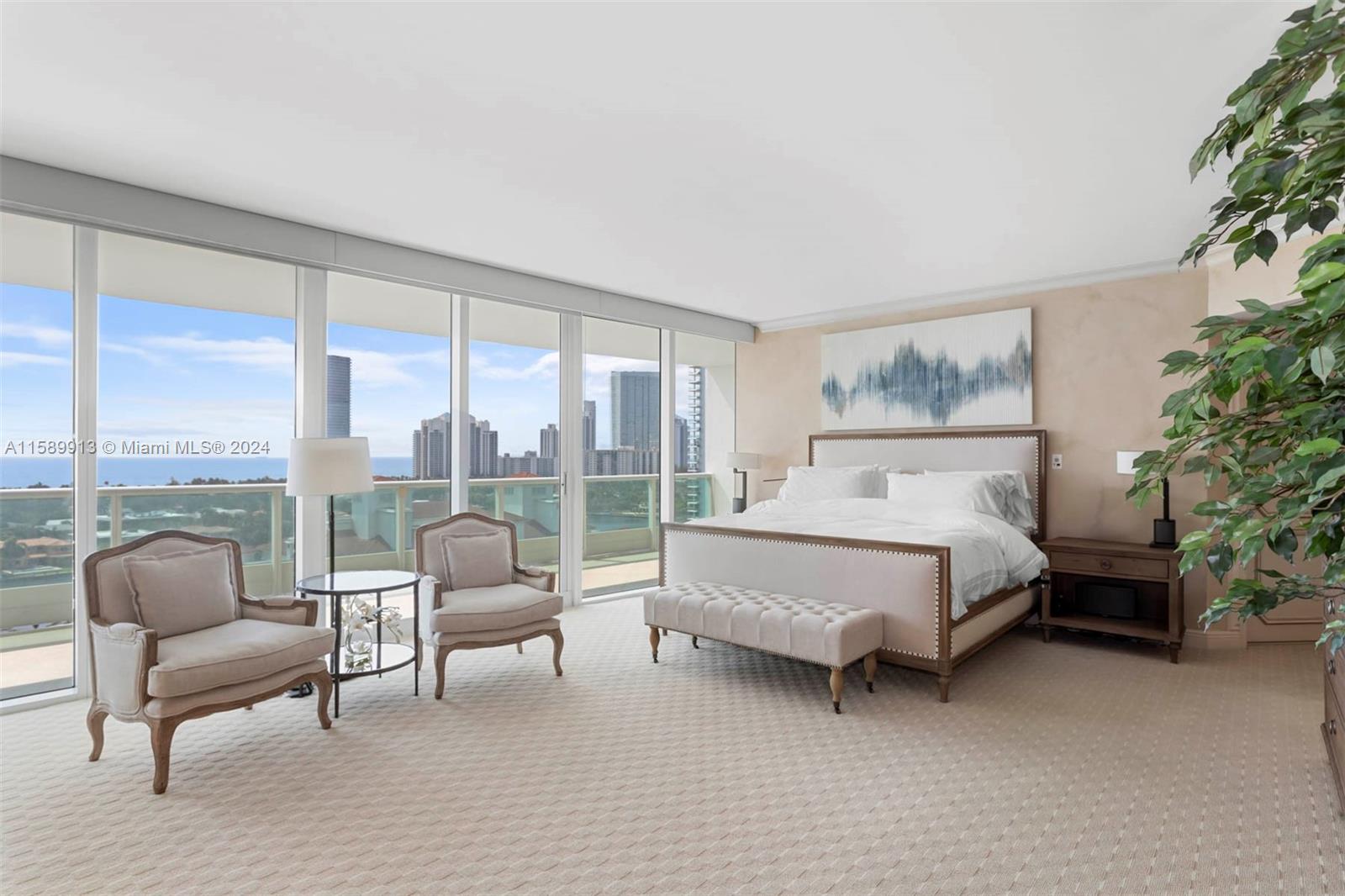 Welcome to LUXURY LIVING in this gorgeous hi floor 4 bedroom 5 bath offering breathtaking views of the ocean, Golden Beach & intracoastal.. on the west side, gorgeous sunset and golf views. Most desirable 03 line! Private elevator and impressive amenities such as concierge, gourmet dining, gym, pool, sauna, basketball, tennis, pickle ball courts, yoga, pilates, Zumba spa lounge masseuse facials and hairdressers. Easy to show...no Saturdays please