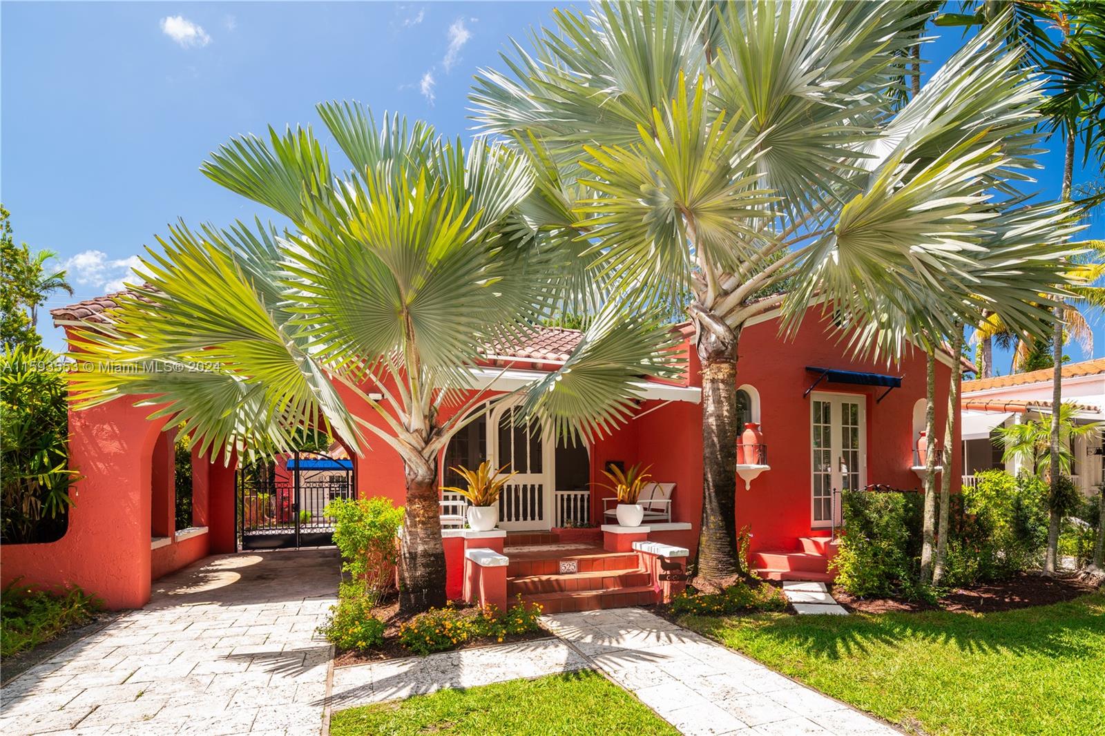 Classic 1920's George Merrick style ultra charming Old Spanish 2 bedroom/2 bath home with garage/studio, carport, impact windows, wood-burning fireplace, hardwood floors, formal dining room, eat-in kitchen, high-ceilinged deep front porch, and more. Perfectly located on gorgeous, oak tree-lined Aragon Avenue just steps to downtown Coral Gables with its wealth of world class restaurants, shops, bookstores and art galleries. Also within easy walking distance to the Granada Golf Course and the Coral Gables Country Club, and close to the Coral Gables Library. There are only so many of these classic, architectural gems built just as the city of Coral Gables was born, and one with so much of its original charm intact is even rarer.