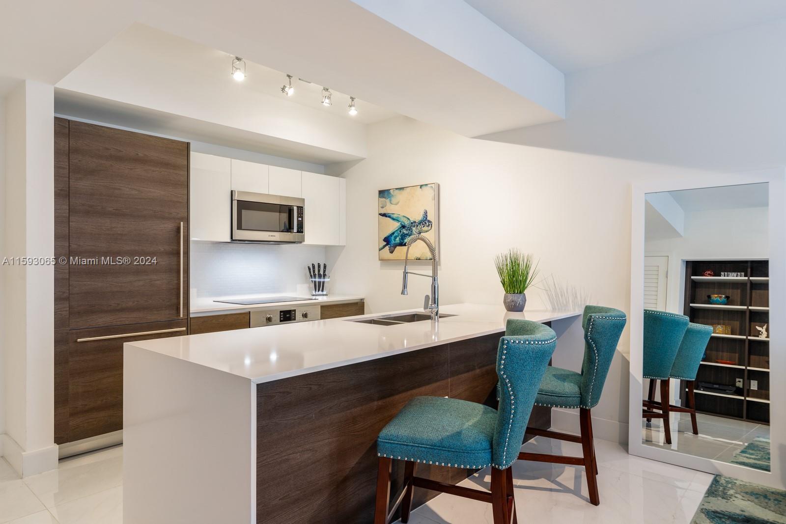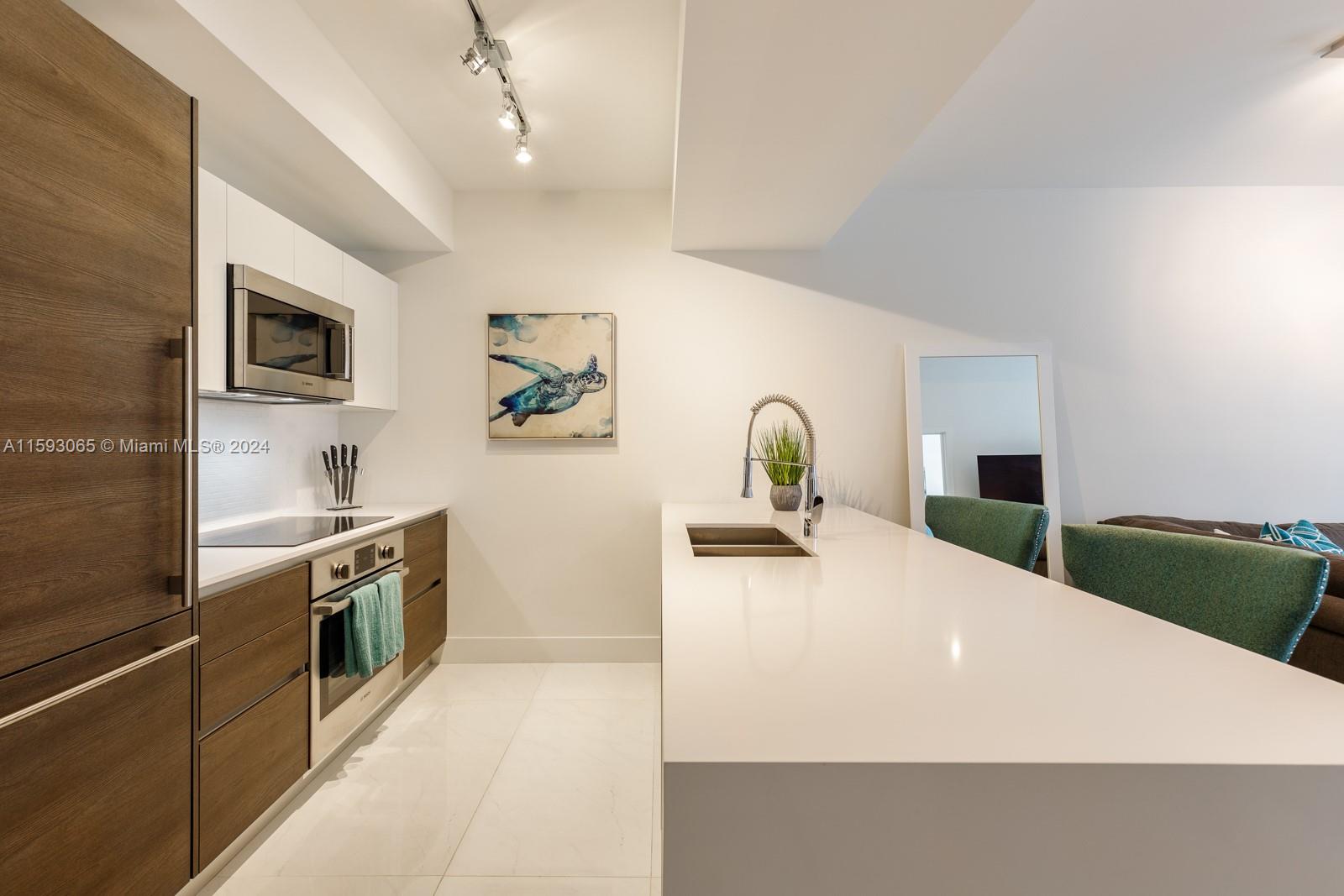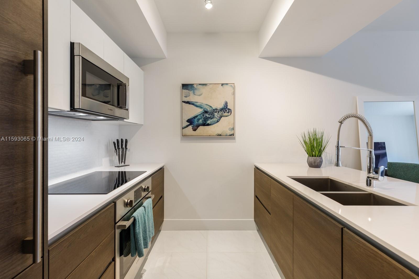 Spacious and furnished one-bedroom residence with a private balcony overlooking the beautiful pool of Coral Gables newest full-service condo Merrick Manor. Airy interior with high ceilings, appointed with Italkraft cabinets and closets, quartz counters, Bosch appliances, Nest thermostat, keyless locks, all punctuated with resort-style amenities including a saline-heated pool, summer kitchen, business center, 24-hour concierge and security, valet services, and upscale fitness center. Ready for immediate occupancy. Pet friendly building. Merrick Manor offers a central, commuter friendly location; close to Merrick Park shops, dining and within 10 minutes to Miami International Airport. Be close to it all from a quiet, professionally managed oasis.