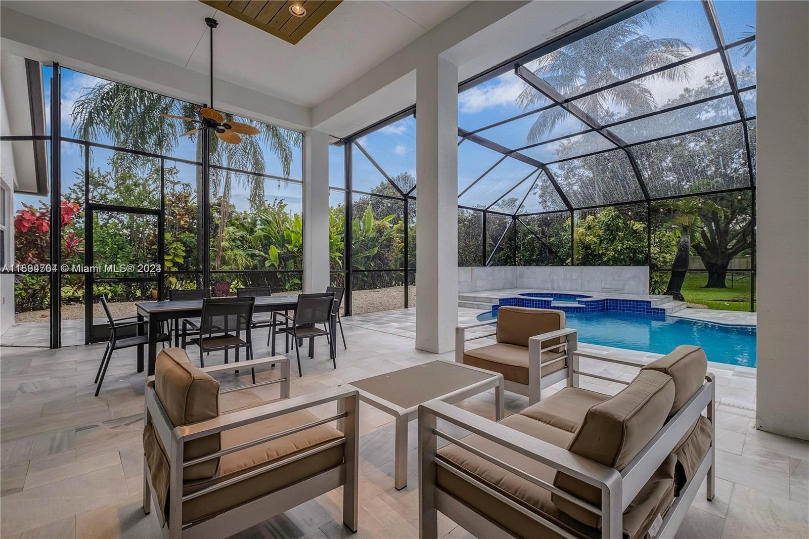 Welcome to this exquisite property located in the gated Mystique Estates Community, situated on 1+acres at the end of a cul-de-sac, the extended driveway and tropical approach adds to the privacy of this lot. This custom home features 4972 sq ft adj, 4 bedrooms plus an office/den, 4 baths. Insulated Roof installed in 2017, new A/C units with UV lights installed in 2018 and Impact windows and doors around this property adds security, protection and energy efficiency. The water filtration system throughout the house ensures clean and safe water for your beloved. Features a heated pool with a Jacuzzi and a huge backyard surrounded with fruit trees. A truly beautiful home. Don't miss the chance to make this stunning property yours! Schedule and viewing today.