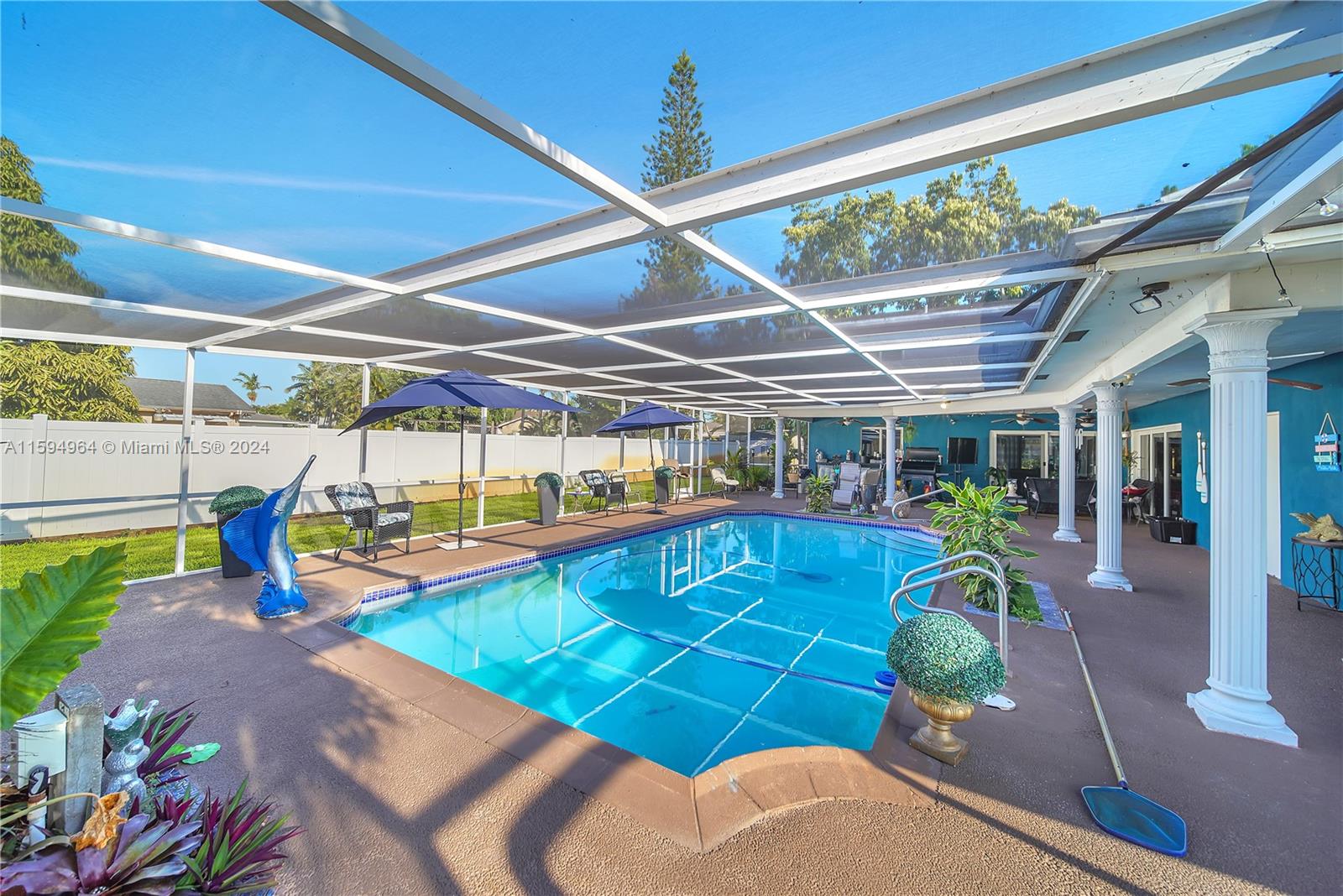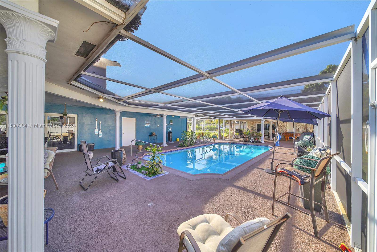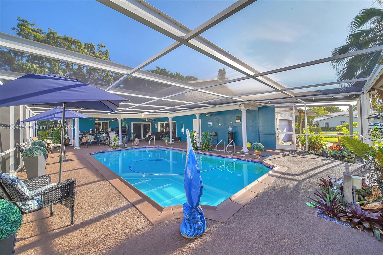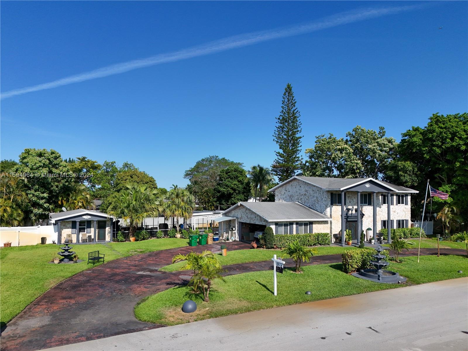 Gorgeous unique large 2 story pool home with detached in-law suite / pool home located in highly sought after Davie. Kitchen has been newly renovated with state of the art appliances. Extra large family room with wet bar and modern fireplace. Each bedroom has it's own full bathroom. Oversized master bedroom with private balcony. Pool area has plenty of room for entertaining and separate detached in-law suite has full kitchen, living area and full bathroom. Large driveway fits plenty of cars in addition to the 2-car garage. Enjoy the freedom of NO HOA!! Great schools and close to shopping and highways. This is a must see!! Schedule a showing today!