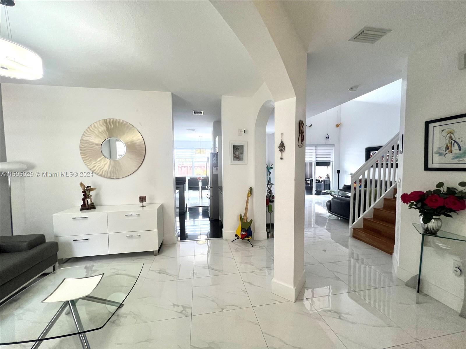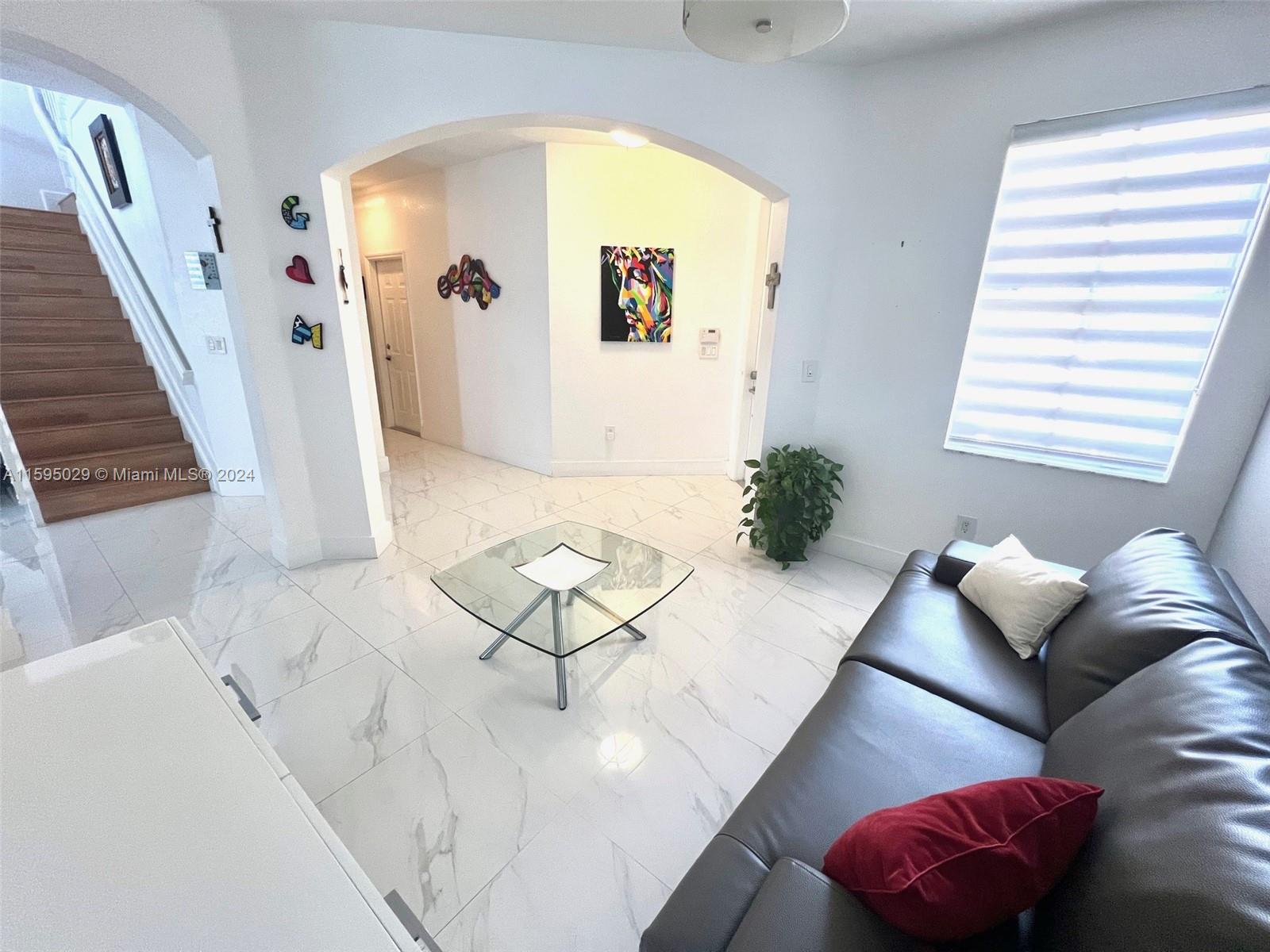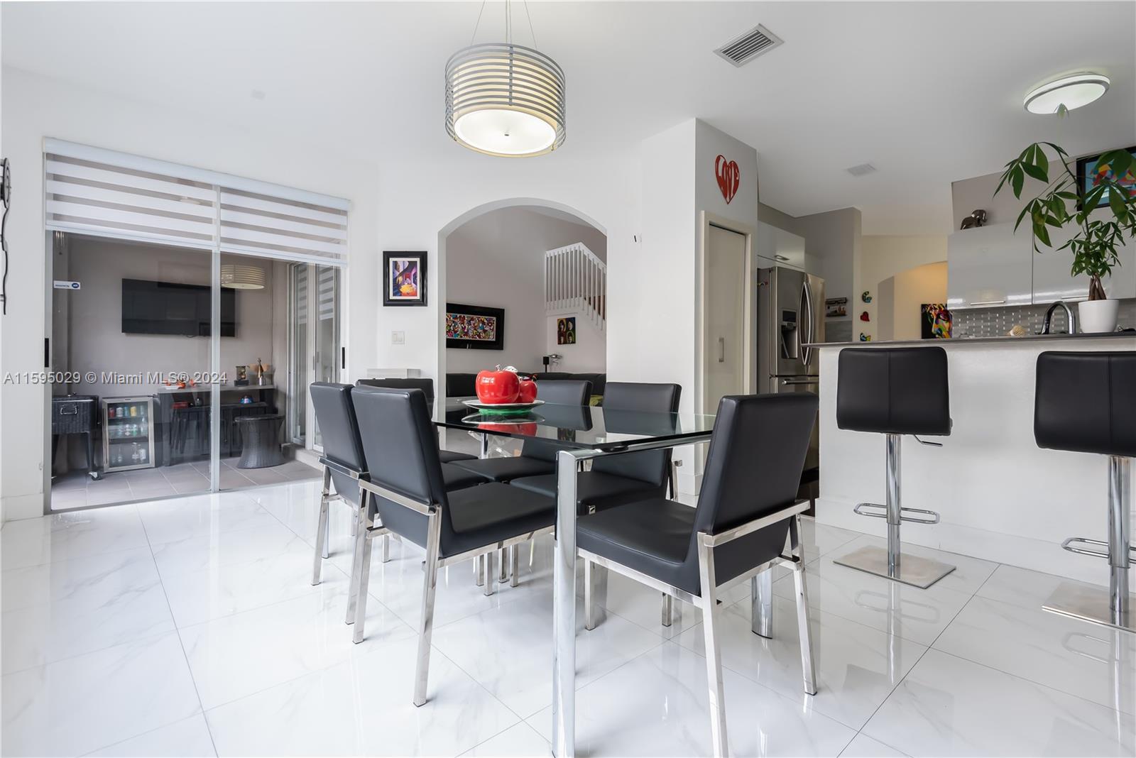 Beautiful coach home in the Netherlands at Island at Doral. Remodeled kitchen and great bar area, porcelain downstairs and laminate wood upstairs. Great size home with 2 car garage and driveway for 2 more. This house counts with 3 well-sized bedrooms and 2 1/2 bathrooms. Formal living room, dining room, and high ceilings in family room downstairs, gated community. Next to Legacy Park where you can enjoy all sports, courts and playground. Furthermore, the clubhouse offers tennis courts, basketball courts, pool, gym & playground.