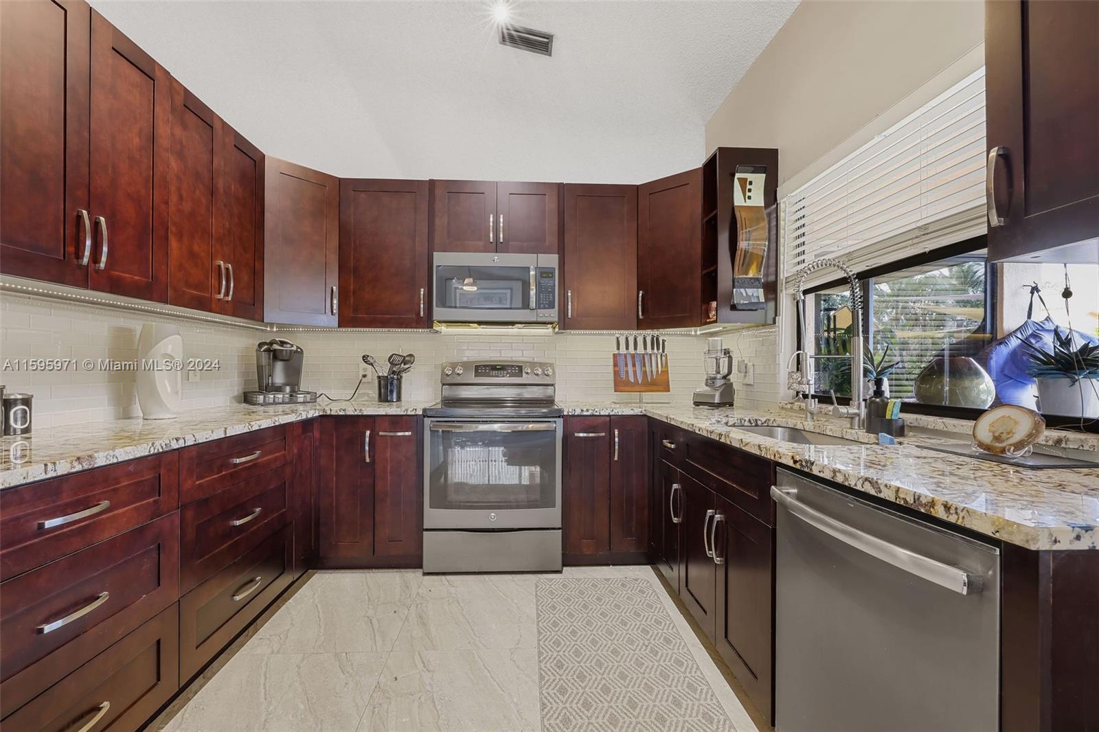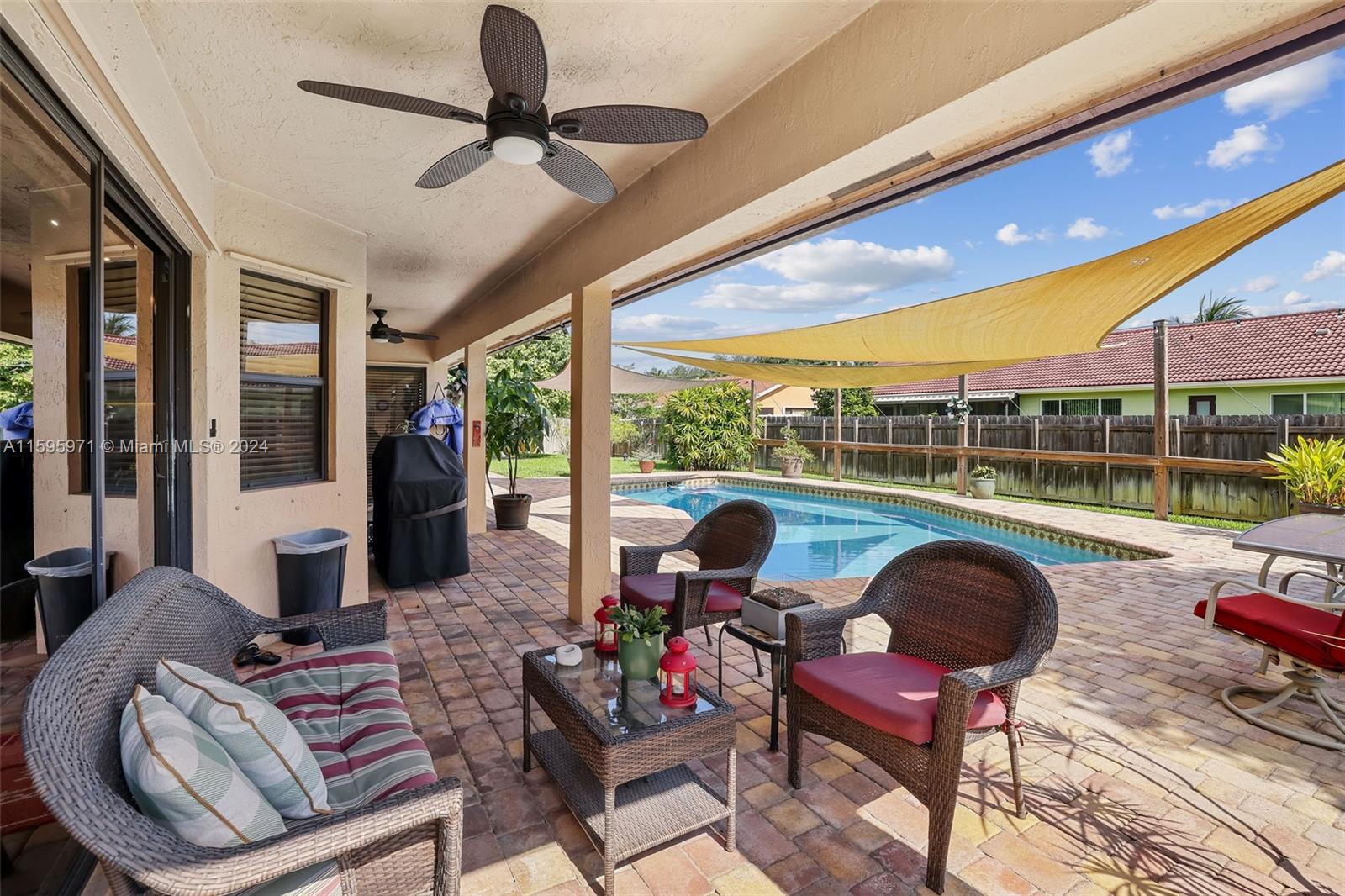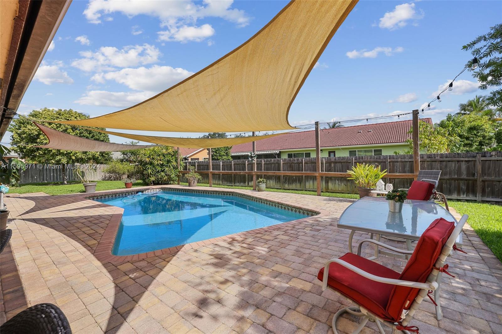 Welcome home to this immaculately kept 3 bedroom, 2.5 bath home featuring updated kitchen and appliances, updated large tiles (approx24 inches) throughout living areas, carpeted large bedrooms. Roof was replaced approximately 9 years ago. Large ,sprinklered, well kept lawn approx. 100 x 135 lot. Enjoy Beautiful backyard and open pool from your roofed patio. Spacious Laundry room plus a functional 2 car garage.