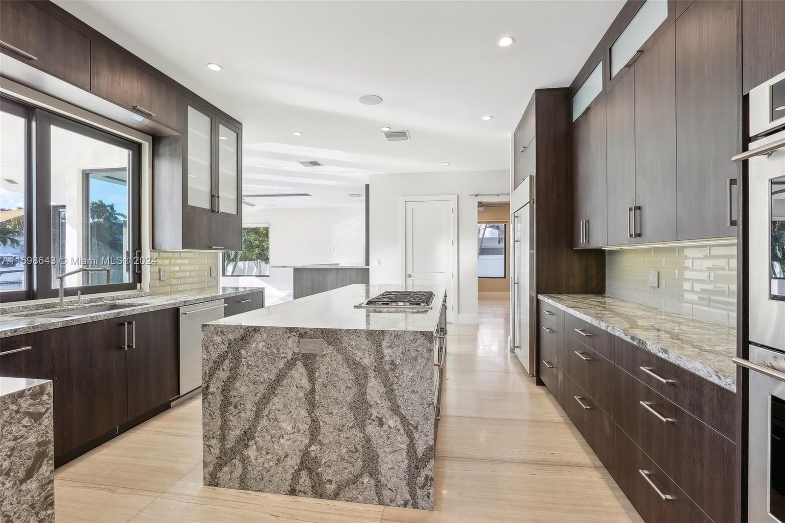ASSUMABLE LOAN AT 2.675% INTEREST RATE. BEST DEAL IN LAS OLAS ISLES. This exquisite smart home features a modern design with an open floor plan, high ceilings, loft area, Control4 automation, large island in kitchen with natural gas, seamless access to the outside pool area, TV room, family room, and custom bar. Five bedrooms, fifth converted to an office, home theatre, music room, dining area, and fireplace. Master suite with pool views, a luxurious bath, steam shower, and walk-in closet. With 80' of water frontage, new dock, pool, and spa. Located in prestigious Seven Isles with 24/7 security, close to top schools, beach, dining. The 3-car garage with room for lifts. Year 2018 built refers to a major remodel, ensuring a blend of modernity and timeless elegance.