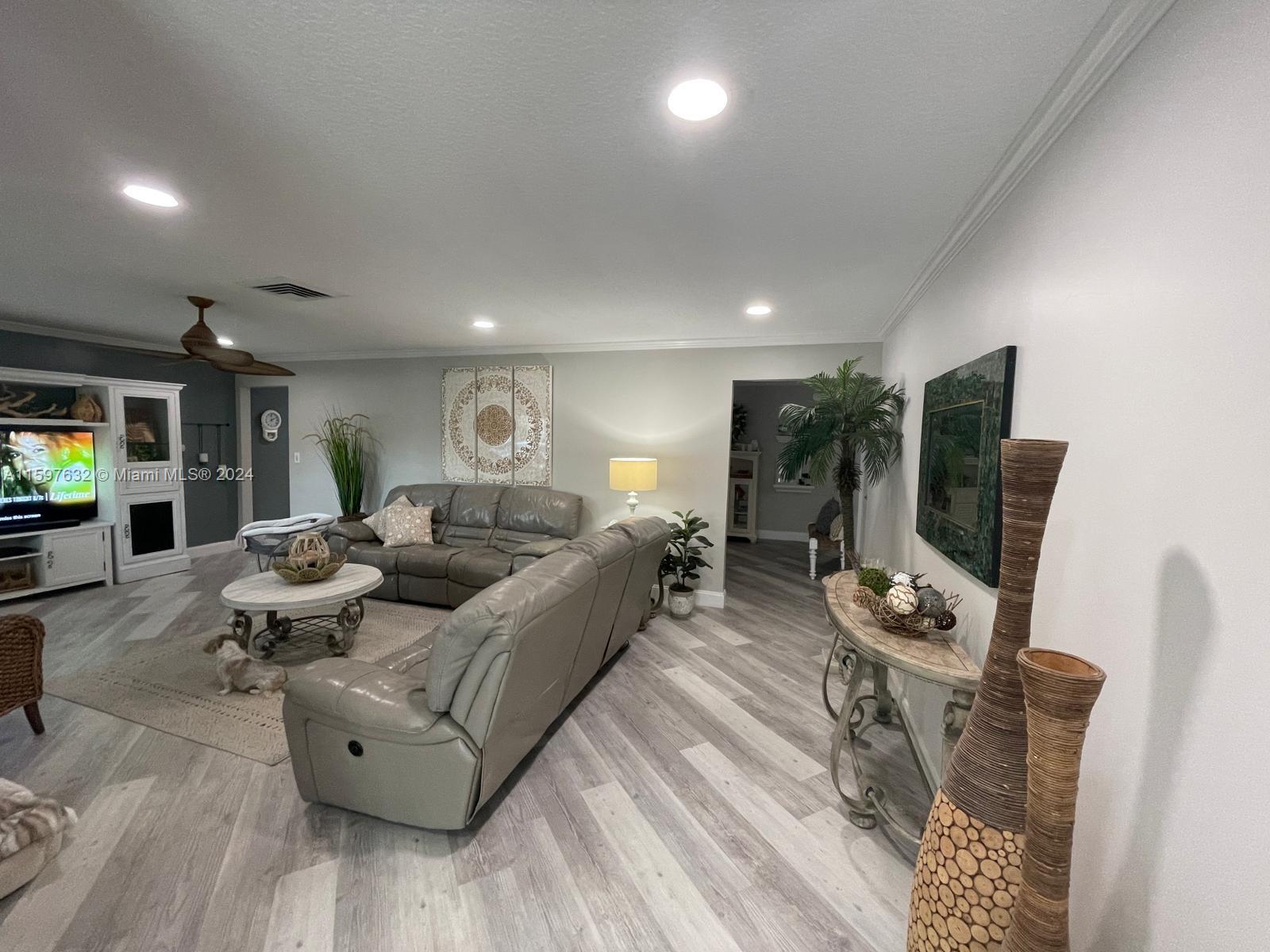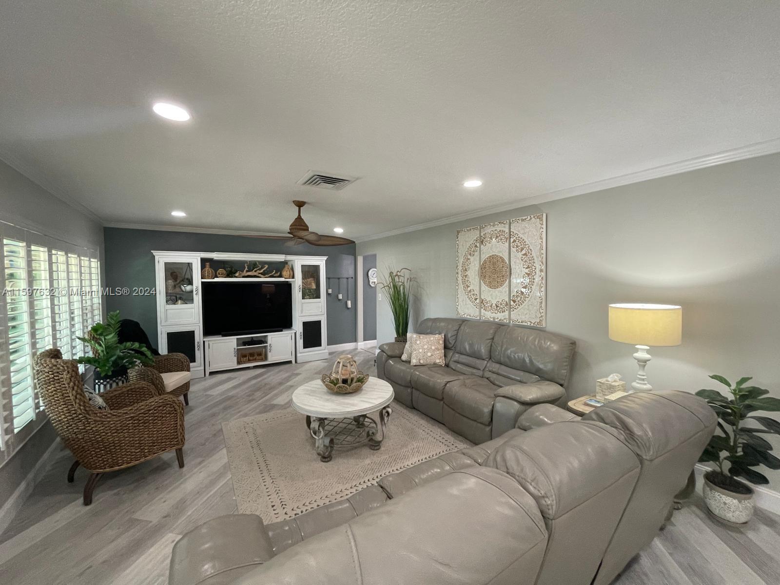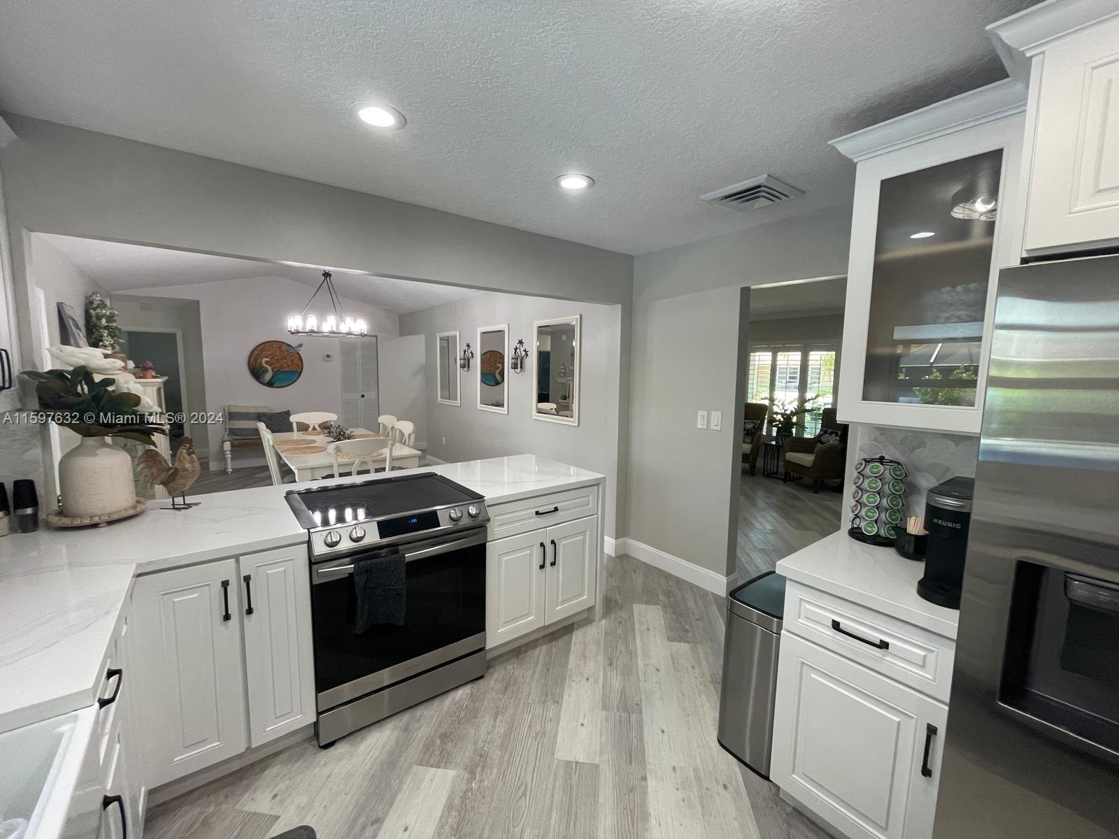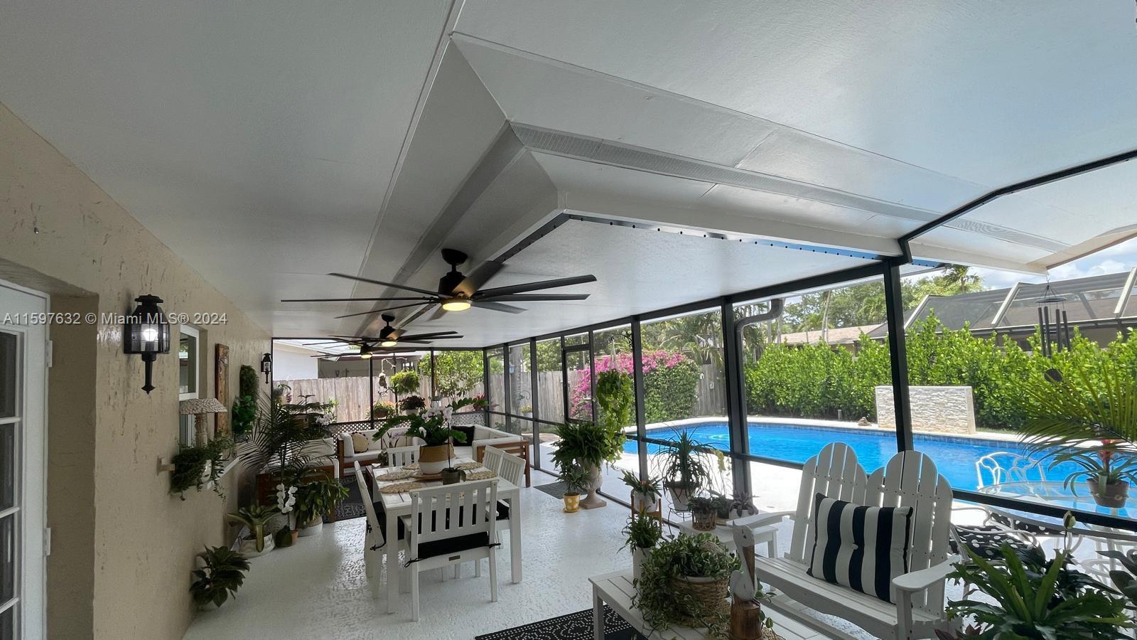 Indulge in luxury living with this stunning 4-bed, 2-bath home boasting a pristine pool & captivating waterfall feature. Meticulously renovated, the gourmet kitchen showcases quartz countertops & stainless steel appliances, ensuring every detail exudes opulence. Whether hosting lavish gatherings in the expansive living room or enjoying outdoor bliss on the lanai overlooking the 8-ft-deep crystal-clear marcite pool, complete with a convenient cabana bathroom, every moment is imbued in elegance. Retreat to the private master en-suite with walk-in closet, while the split bedroom layout offers both comfort & privacy. 2-car garage featuring laundry facilities & extra refrig, everyday living is effortlessly elevated. Near shopping, fine dining. NO HOA. Welcome home to unparalleled luxury.