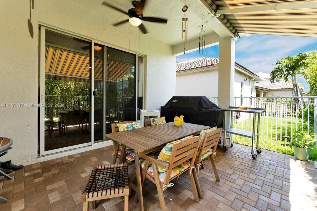 Welcome to your dream home in Savanna! This updated home features new tile flooring and renovated bathrooms with new extra large shower with luxurious rainfall showers. Plantation shutters, recessed lighting, and ceiling fans add elegance and comfort. Painted outside in 2021. The master bedroom had two walk-in closets, one added by the owners. The home has a new roof (2021), new pavers in the driveway, a 2018 AC unit, and a 2024 water heater. the patio has an extended paver area with an electrical retractable awning, and a fenced yard perfect for gatherings. The community has stunning resort-style amenities, including water slides, a kids' splash zone, mini golf, children's playground, and fields for all sports. A+ schools. Come see your new home!