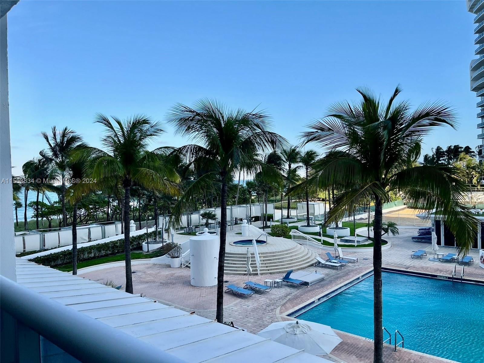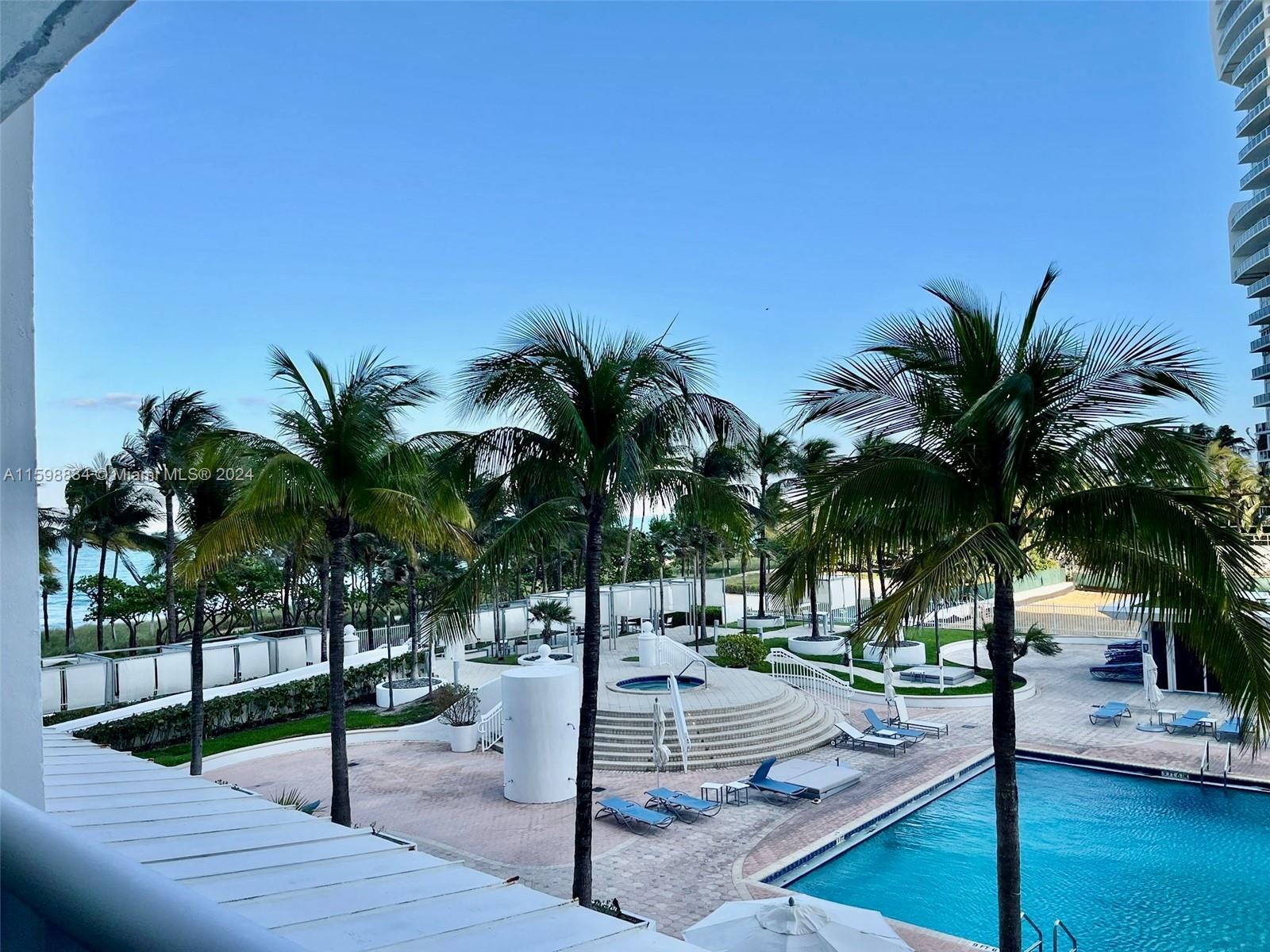 Beautiful, bright and spacious 896sqft 1bed1.5 bath unit offers serene views of the ocean, pool and lush landscaping. Located in prestigious Bal Harbour, Southern exposure brightens the unit all day long. Large balcony, walk-in closet and ample closets throughout. Building recently renovated! Full service building with great amenities 24 hour security, beach and pool service, olympic size pool, hot tub, fitness center, spa, restaurant and market, theater, social room and more! Valet parking available. Fully accessible to the beach, Bal Harbour shops, restaurants and much more! Hurry wont last!