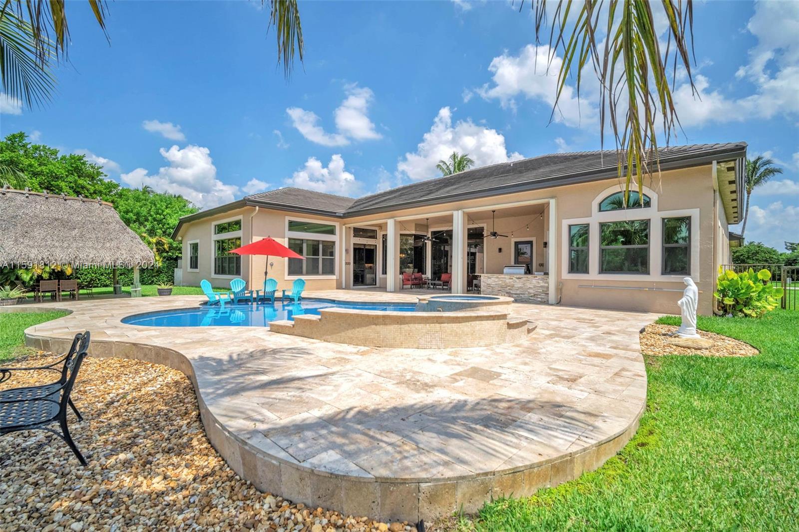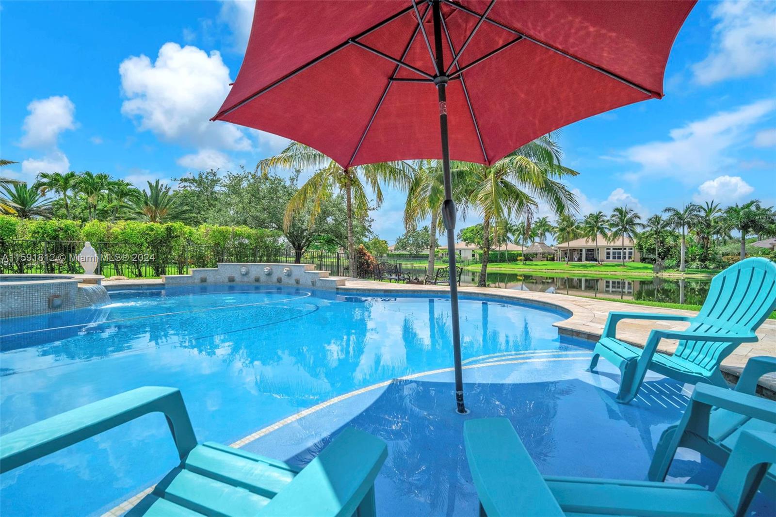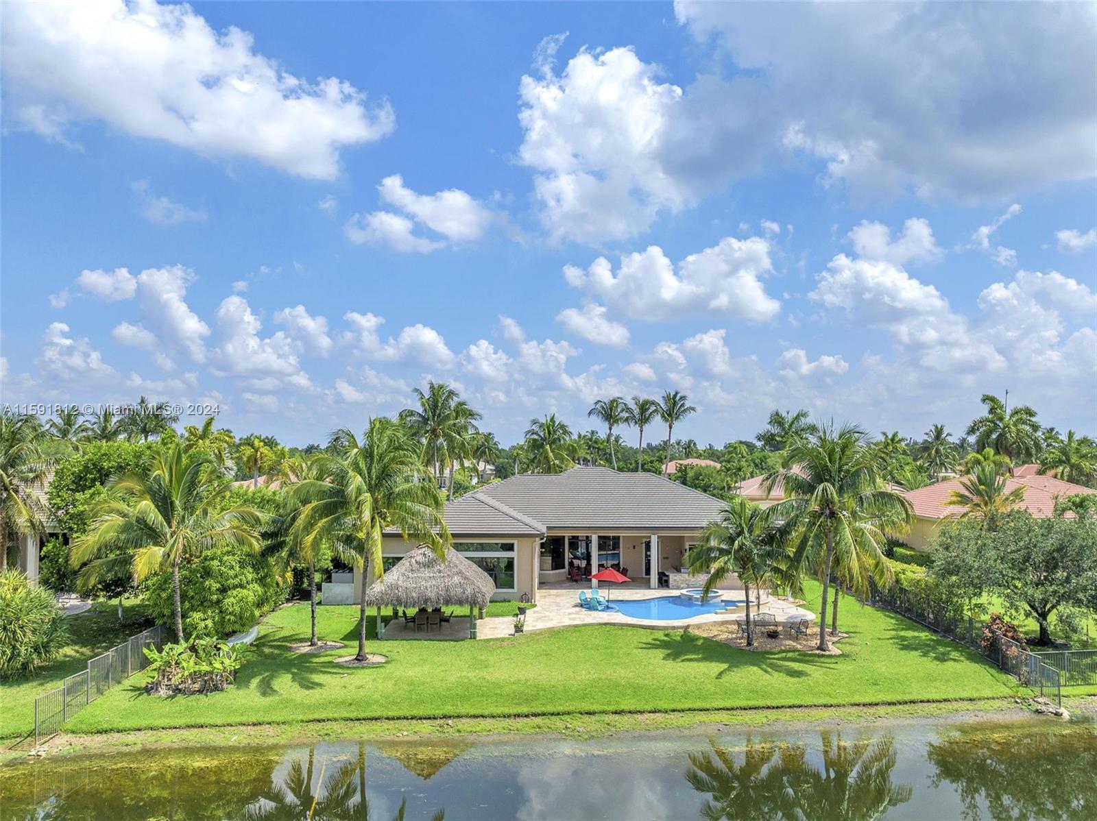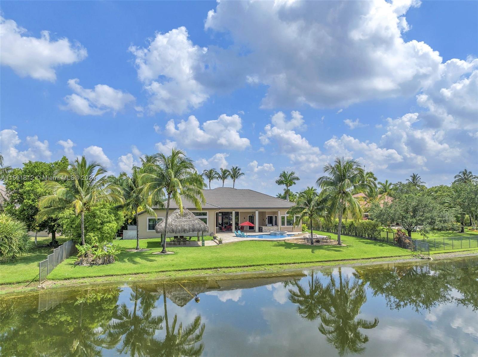 Welcome to the epitome of luxury living in the prestigious gated community of Riverstone. This stunning estate boasts breathtaking lake views and an array of unparalleled amenities. The open floor triple split plan blends sophisticated elegance with modern comfort, featuring a renovated kitchen w/ SS appliances. Entertain in grand style in the formal dining room or retreat to the outdoor oasis and find a pristine pool w/ jacuzzi, summer kitchen, fire pit, & tiki hut. The master suite is a sanctuary with his/hers bathrooms. This home also includes a movie room, office, gym, and bonus room. Roof and impact windows installed 2022. Situated in the heart of Davie where equestrian life is celebrated & surrounded by fine dining & shopping. This property is more than a home; it's a lifestyle.