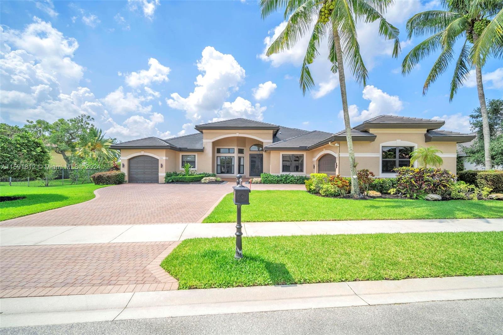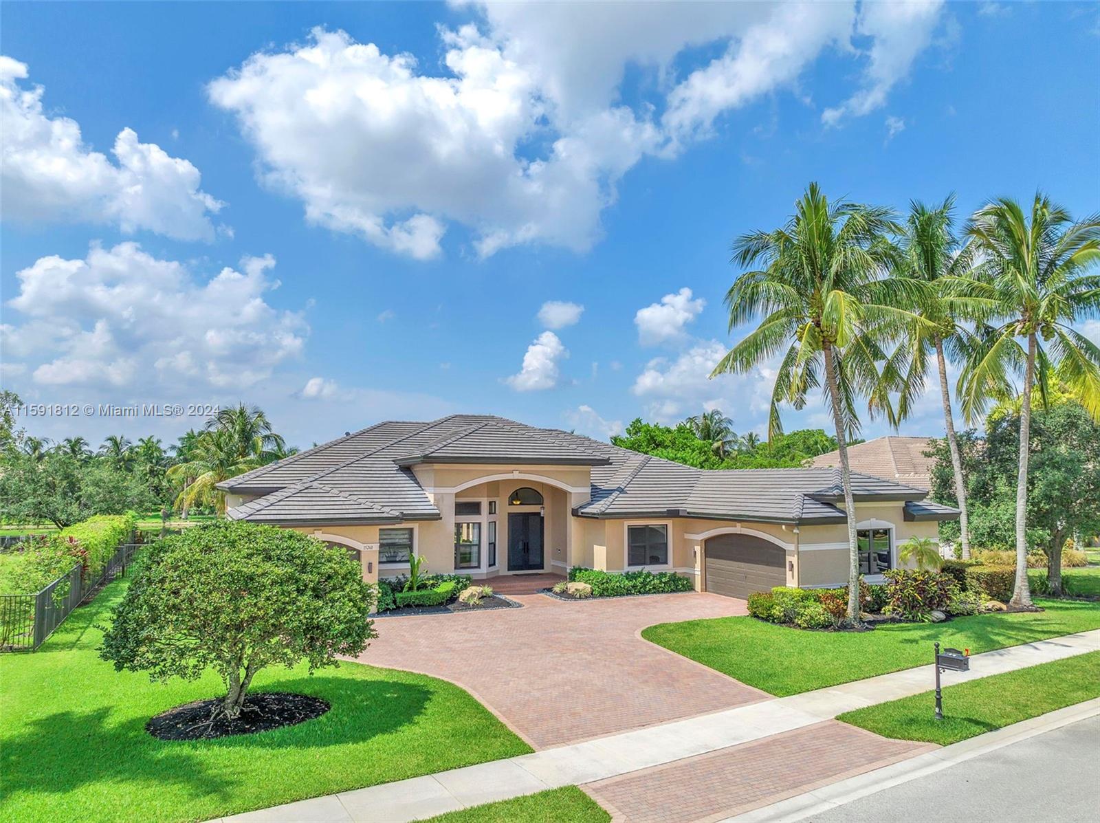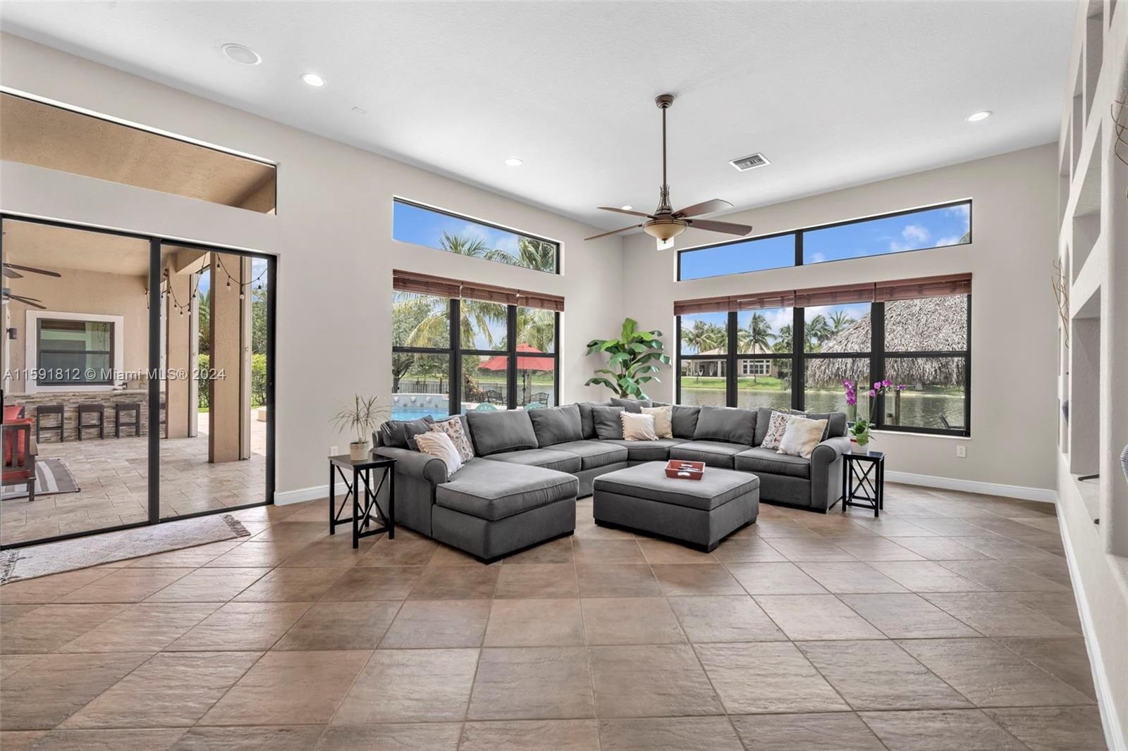 Welcome to the epitome of luxury living in the prestigious gated community of Riverstone. This stunning estate boasts breathtaking lake views and an array of unparalleled amenities. The open floor triple split plan blends sophisticated elegance with modern comfort, featuring a renovated kitchen w/ SS appliances. Entertain in grand style in the formal dining room or retreat to the outdoor oasis and find a pristine pool w/ jacuzzi, summer kitchen, fire pit, & tiki hut. The master suite is a sanctuary with his/hers bathrooms. This home also includes a movie room, office, gym, and bonus room. Roof and impact windows installed 2022. Situated in the heart of Davie where equestrian life is celebrated & surrounded by fine dining & shopping. This property is more than a home; it's a lifestyle.