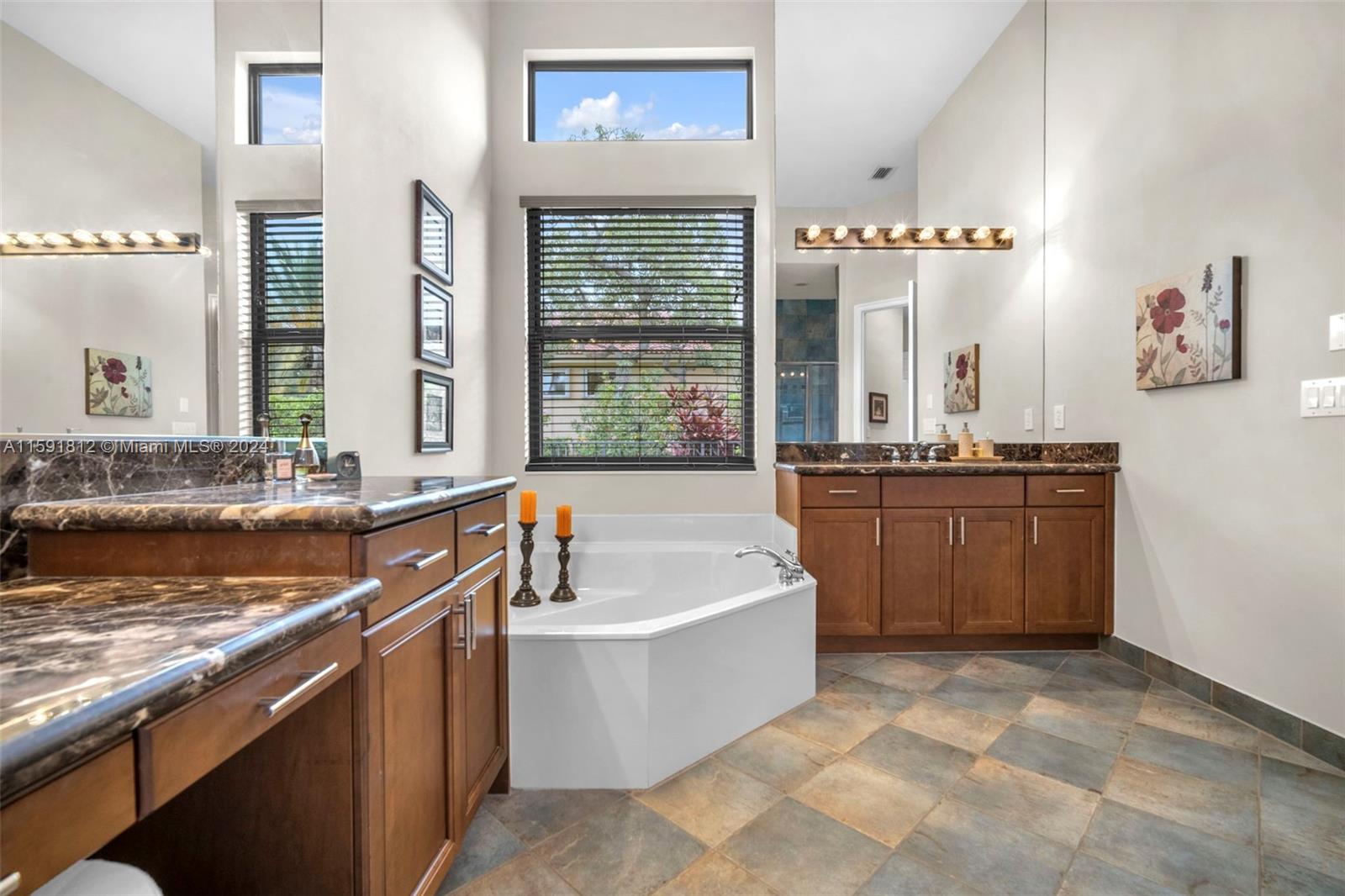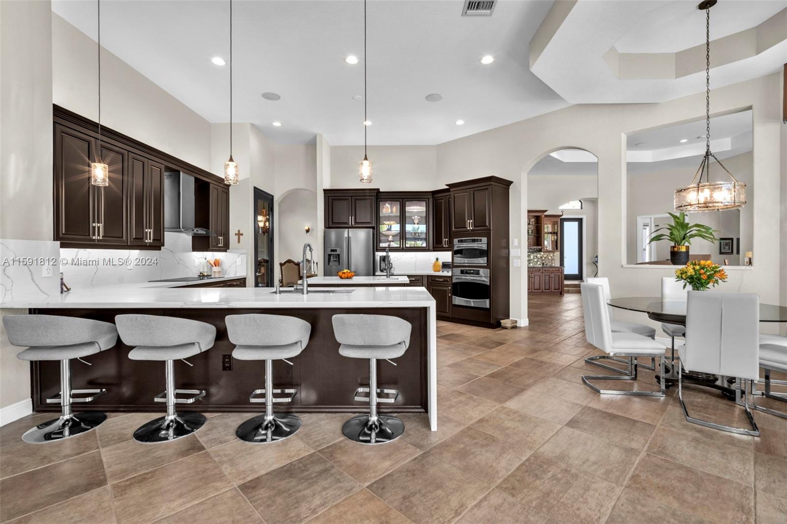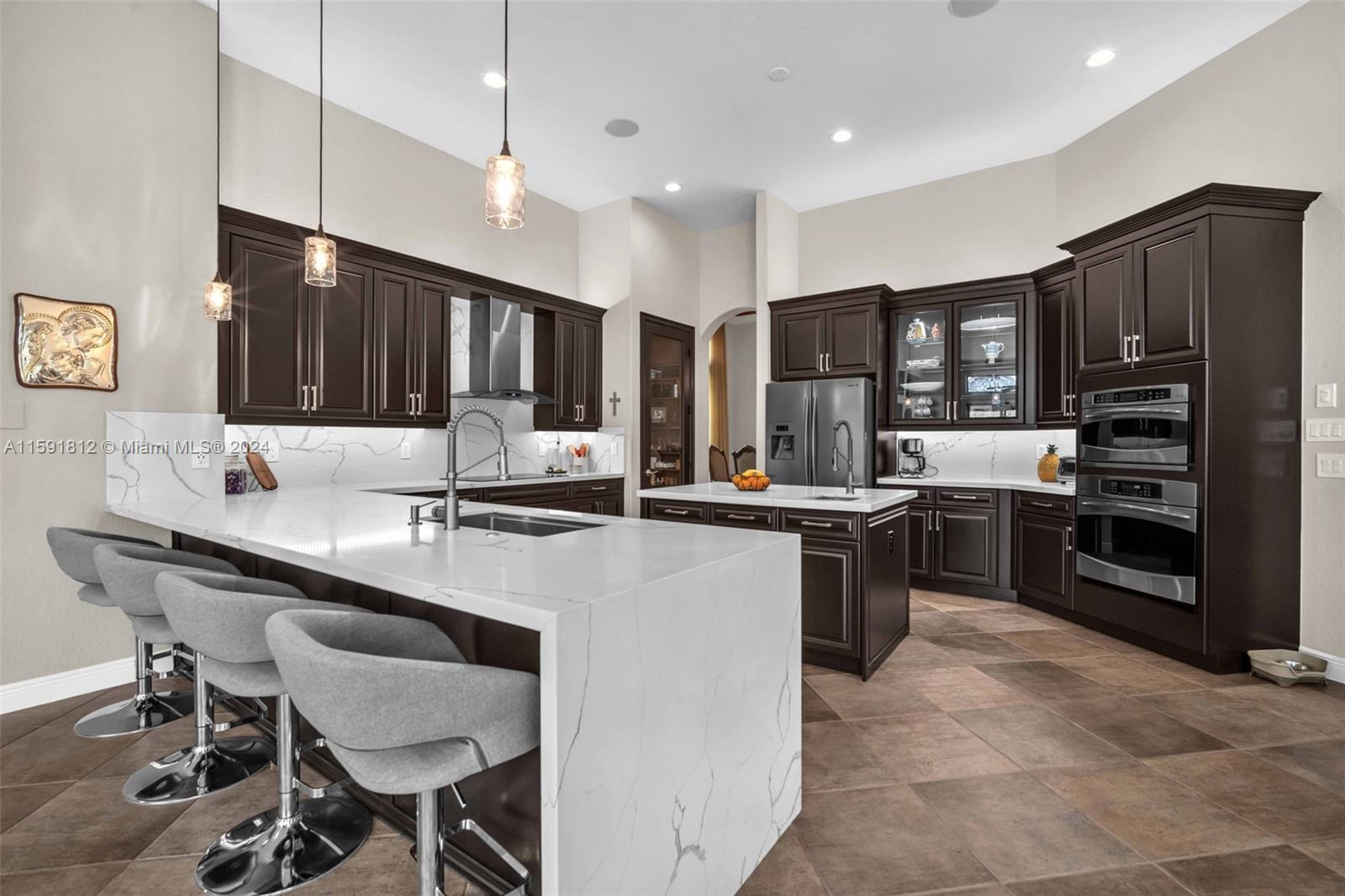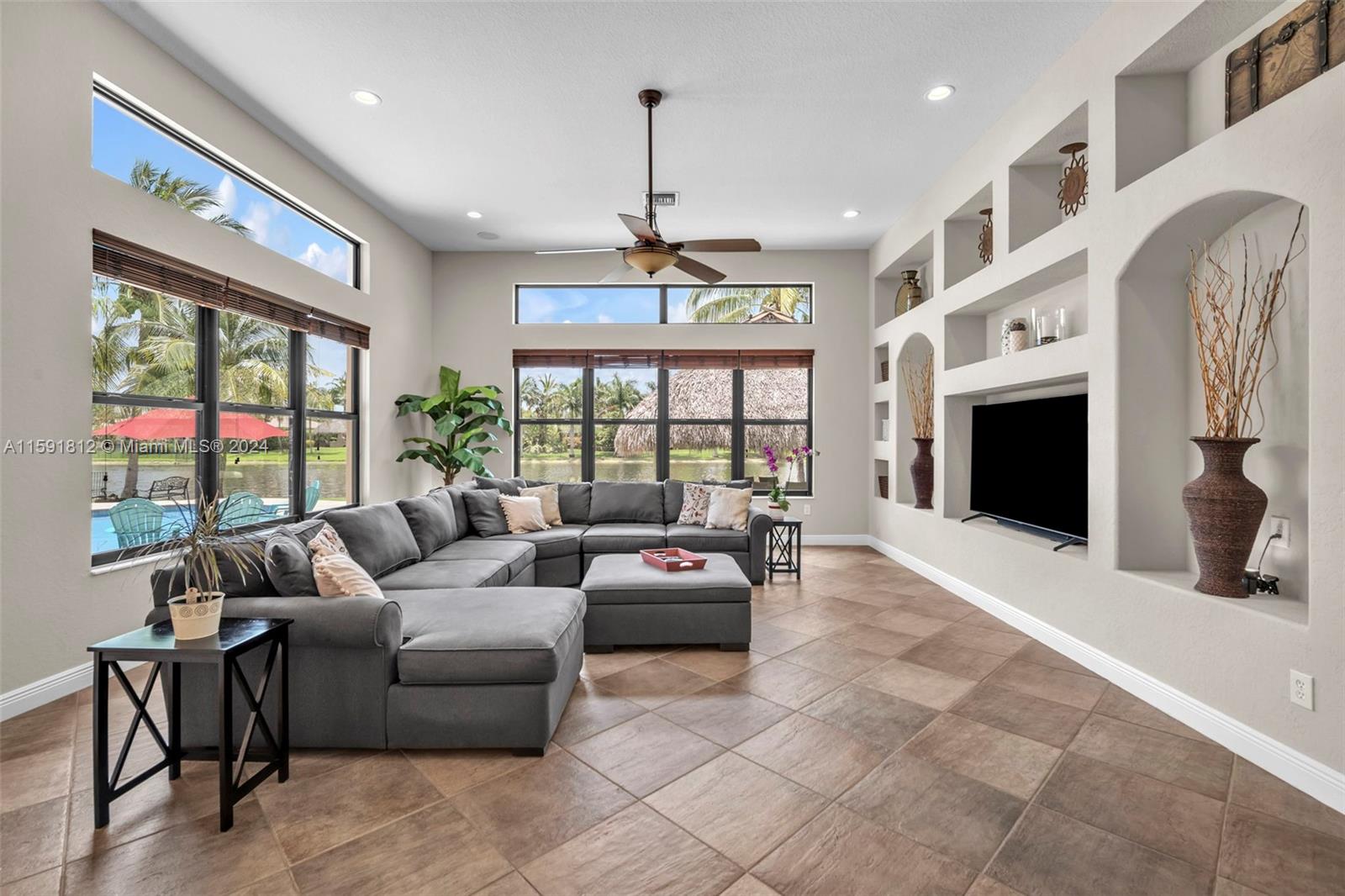Welcome to the epitome of luxury living in the prestigious gated community of Riverstone. This stunning estate boasts breathtaking lake views and an array of unparalleled amenities. The open floor triple split plan blends sophisticated elegance with modern comfort, featuring a renovated kitchen w/ SS appliances. Entertain in grand style in the formal dining room or retreat to the outdoor oasis and find a pristine pool w/ jacuzzi, summer kitchen, fire pit, & tiki hut. The master suite is a sanctuary with his/hers bathrooms. This home also includes a movie room, office, gym, and bonus room. Roof and impact windows installed 2022. Situated in the heart of Davie where equestrian life is celebrated & surrounded by fine dining & shopping. This property is more than a home; it's a lifestyle.