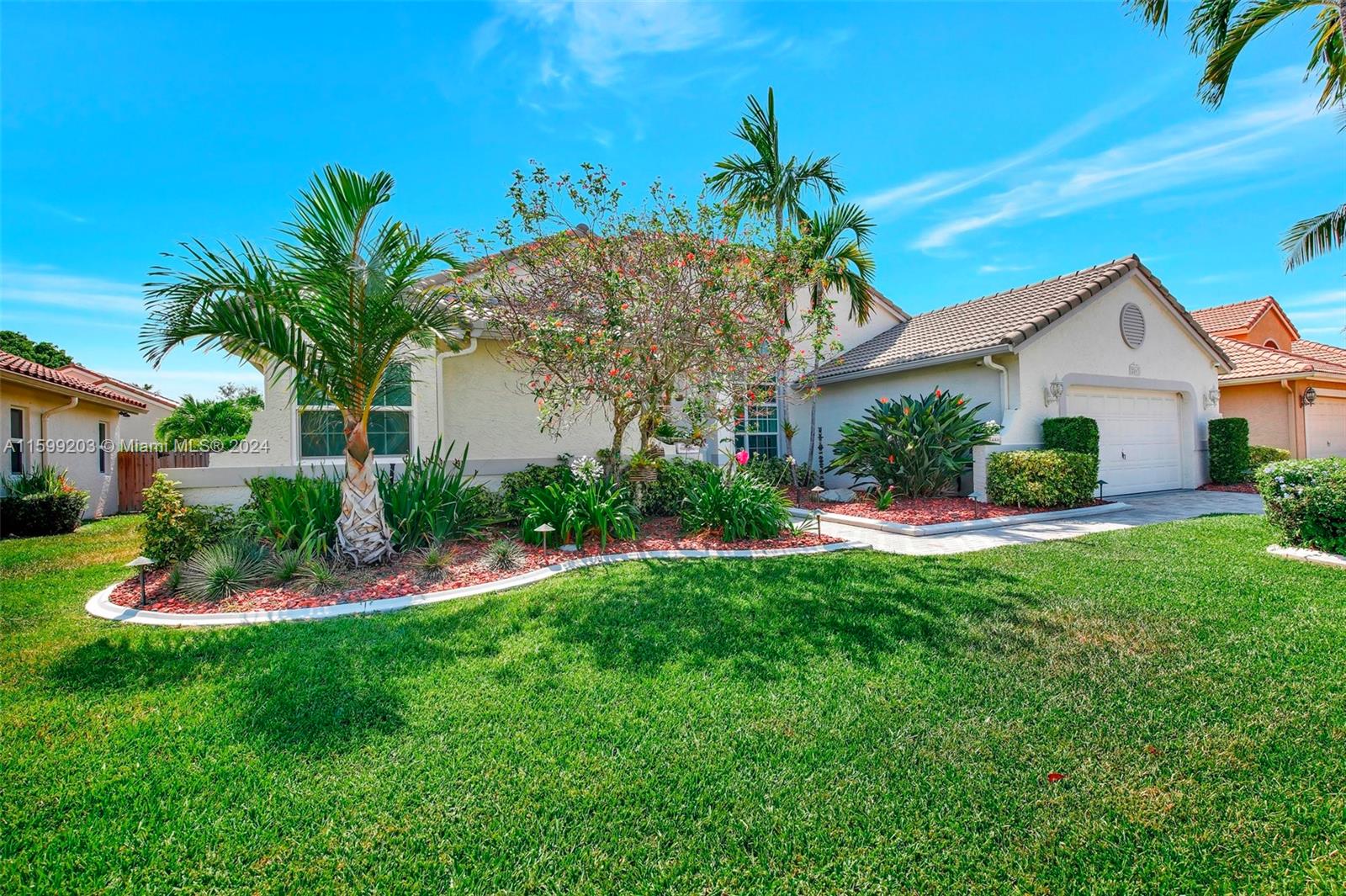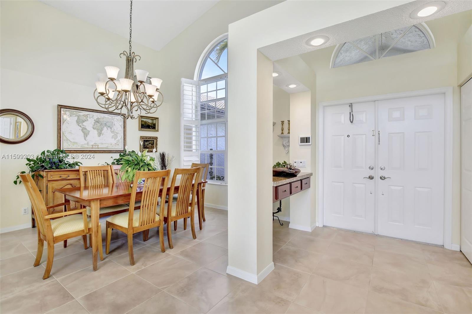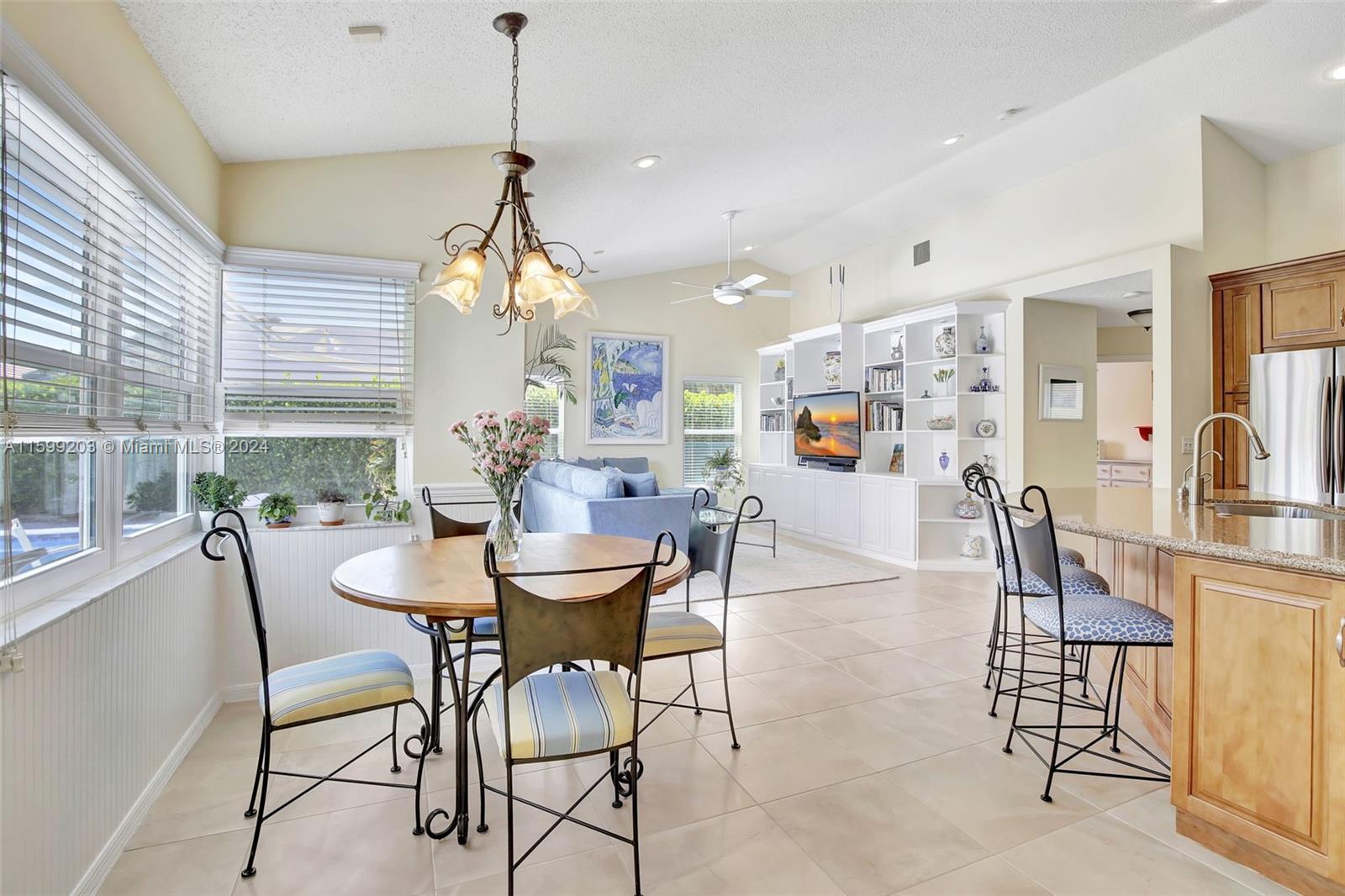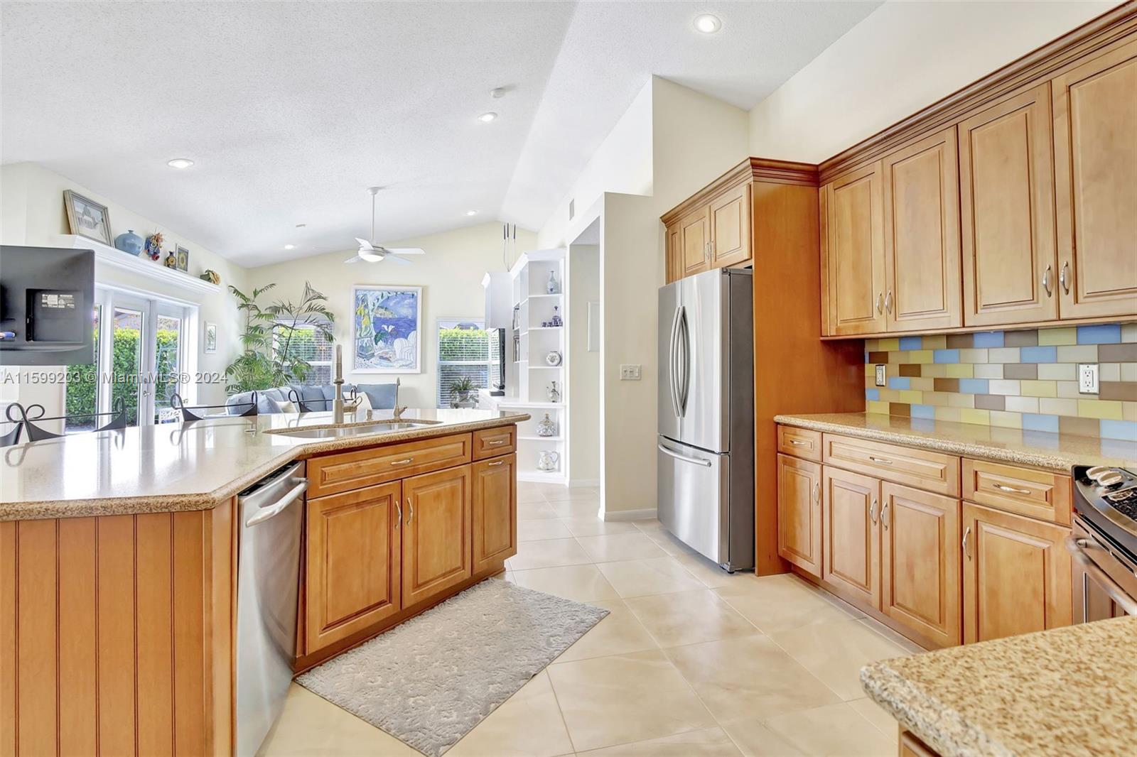 Just over 2300 sqft of living space in this 4/3 triple split floor plan including all high-end impact windows & doors in fabulous The Ridge on Nob Hill. Neutral tile flooring in all main living areas. Open kitchen featuring quartz countertops, wood cabinets, tile backsplash & s/s appliances overlooking the spacious family room & breakfast nook. Large primary suite w/dual walk-in closets. High-end modern primary bathroom including dual sinks, marble countertops, white cabinets, soaking tub & oversized walk-in shower. The guest bathroom was recently redone. Beautifully landscaped & private backyard w/recently resurfaced and tiled pool surrounded by endless marble. Fenced dog run. Plantation shutters in the primary, living & dining room. Low HOA & the list goes on and on.