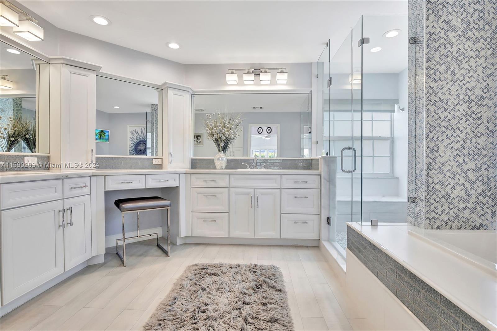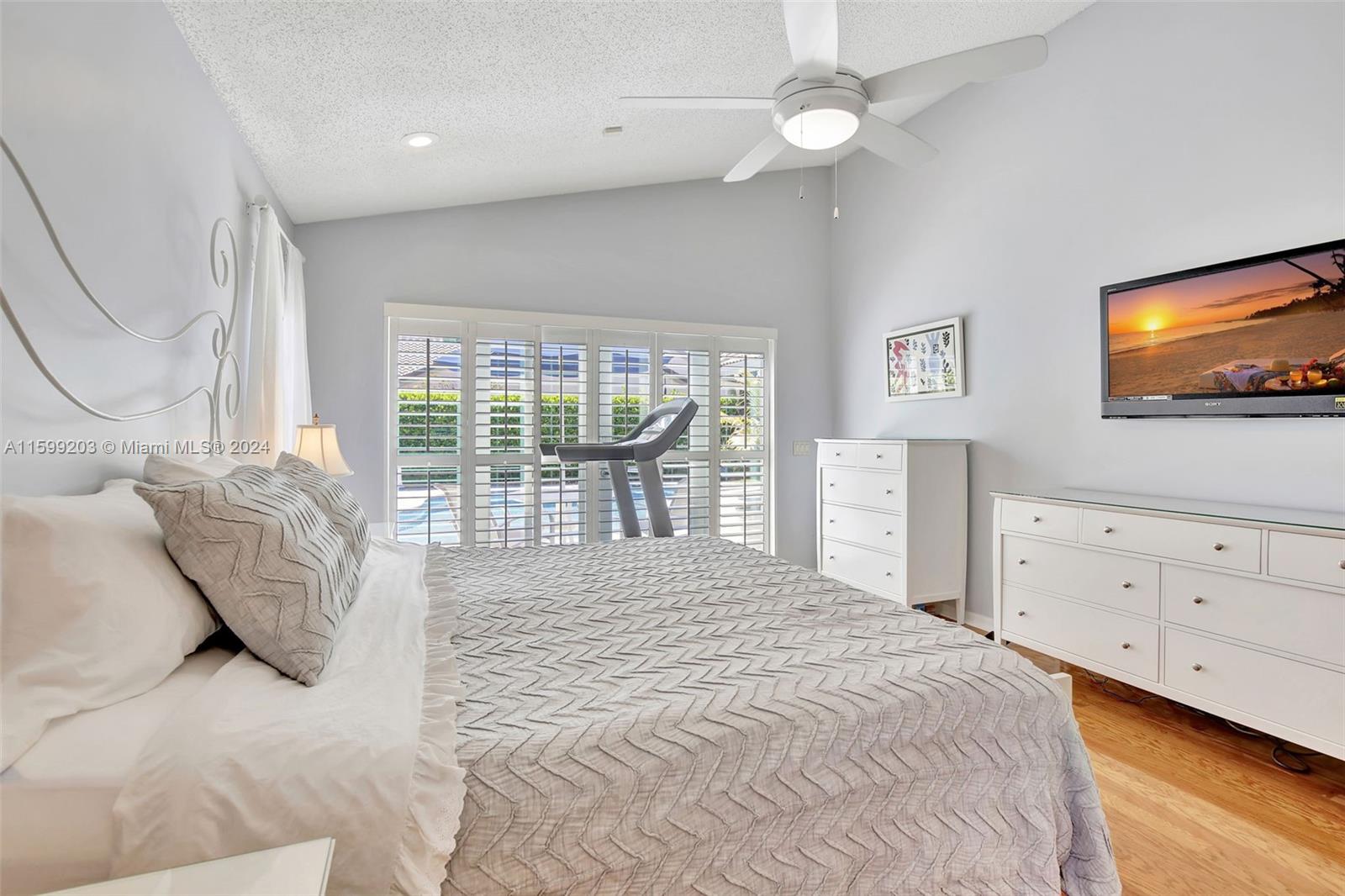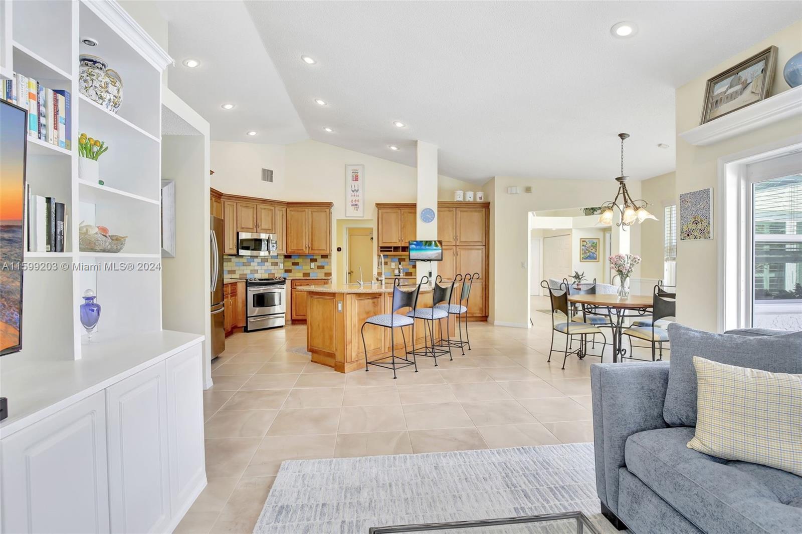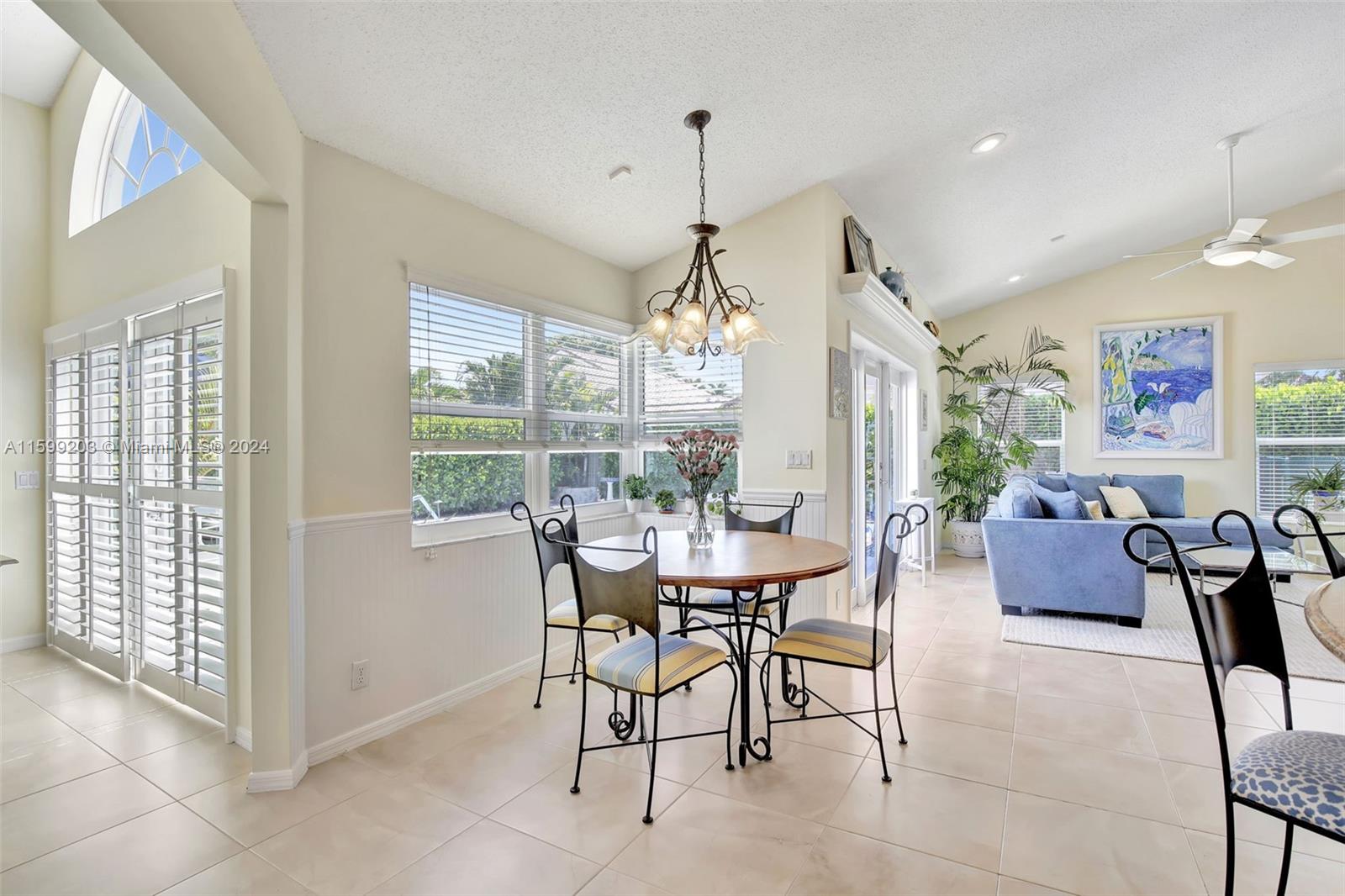 Just over 2300 sqft of living space in this 4/3 triple split floor plan including all high-end impact windows & doors in fabulous The Ridge on Nob Hill. Neutral tile flooring in all main living areas. Open kitchen featuring quartz countertops, wood cabinets, tile backsplash & s/s appliances overlooking the spacious family room & breakfast nook. Large primary suite w/dual walk-in closets. High-end modern primary bathroom including dual sinks, marble countertops, white cabinets, soaking tub & oversized walk-in shower. The guest bathroom was recently redone. Beautifully landscaped & private backyard w/recently resurfaced and tiled pool surrounded by endless marble. Fenced dog run. Plantation shutters in the primary, living & dining room. Low HOA & the list goes on and on.