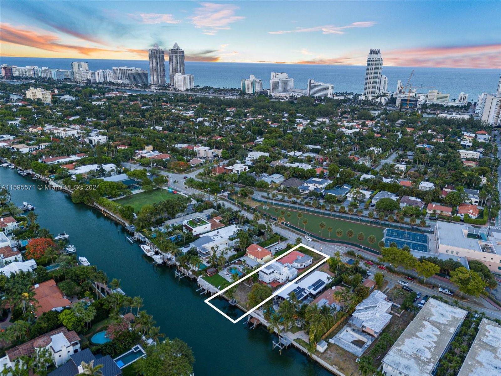 Incredible opportunity build your near 5,000 sq foot dream home, with five bedroom and five bath on this sprawling 10,000+ sq foot lot with over 53 foot of prime waterfront offering Biscayne Bay and ocean access. The residence blends contemporary elegance with seamless indoor-outdoor living, offering a serene retreat just moments from Miami Beach's vibrant energy. Expansive terraces, a resort-style infinity pool surrounded by lush landscaping, and private dock. Nestled in coveted mid beach Nautilus neighborhood, close proximity to top-rated schools, fine dining, shopping. Newly completed seawall, and included in the sale approved and permitted plans that are worth $350,000 from the famed architect Reinaldo Borges, that also saves you a year time permitting time. Photos are renderings only