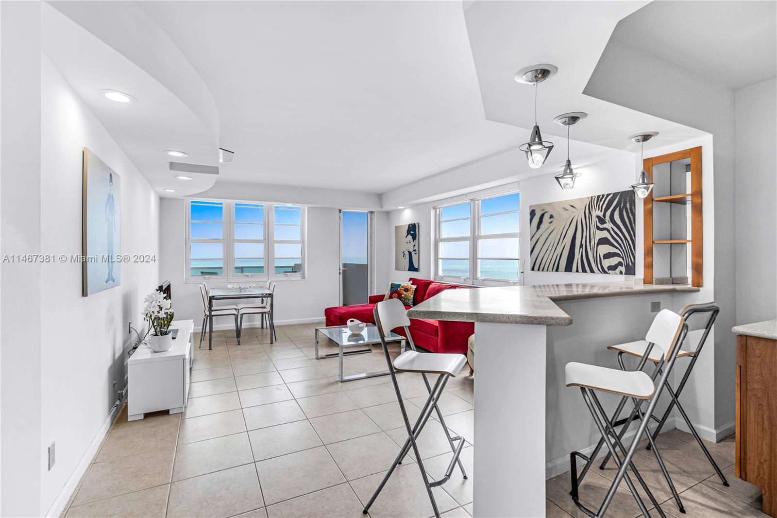 Largest one bedroom with direct ocean and balcony at the Decoplage, SE Corner. Come make each day a beach day at this cheerful residence with neutral tile floors, upgraded kitchenappliances, two full bathrooms and black-out shades in the bedroom. Monthly rentals or 12 leases per year. Great potential to generate rental income while away. The Decoplage has a prime location, offering residents direct access to the beach and the vibrant Lincoln Road Mall with its shops, restaurants, and entertainment options.