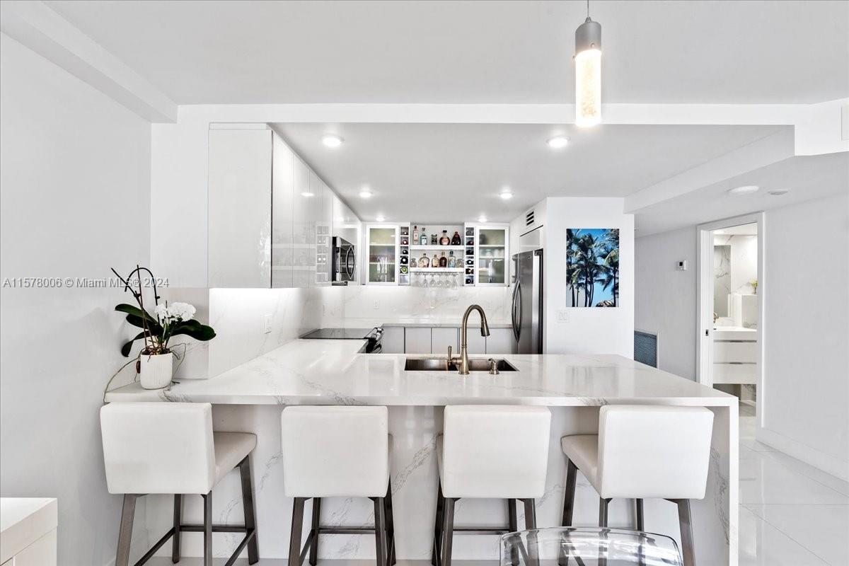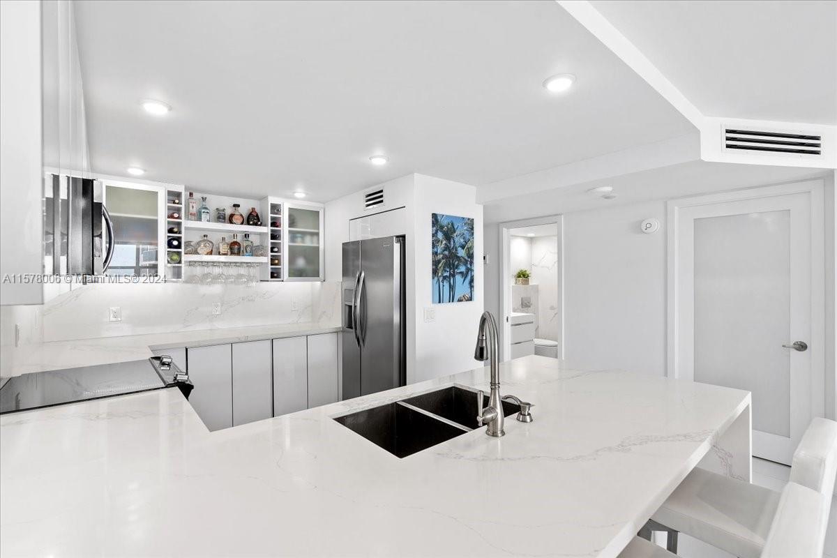 Beautiful ocean views from this fully remodeled beach front apartment. 1 bedroom 1 den used as second bedroom. Two full baths. Impact windows and door. Washer and dryer inside unit. Beach service that includes two beach chairs and one umbrella. Mini mart, billiard room, barbecues, tiki huts and kids play ground. lots of custom made storage. Spacious balcony facing east, enjoy a beautiful sunrise every morning. Pool is under renovation.