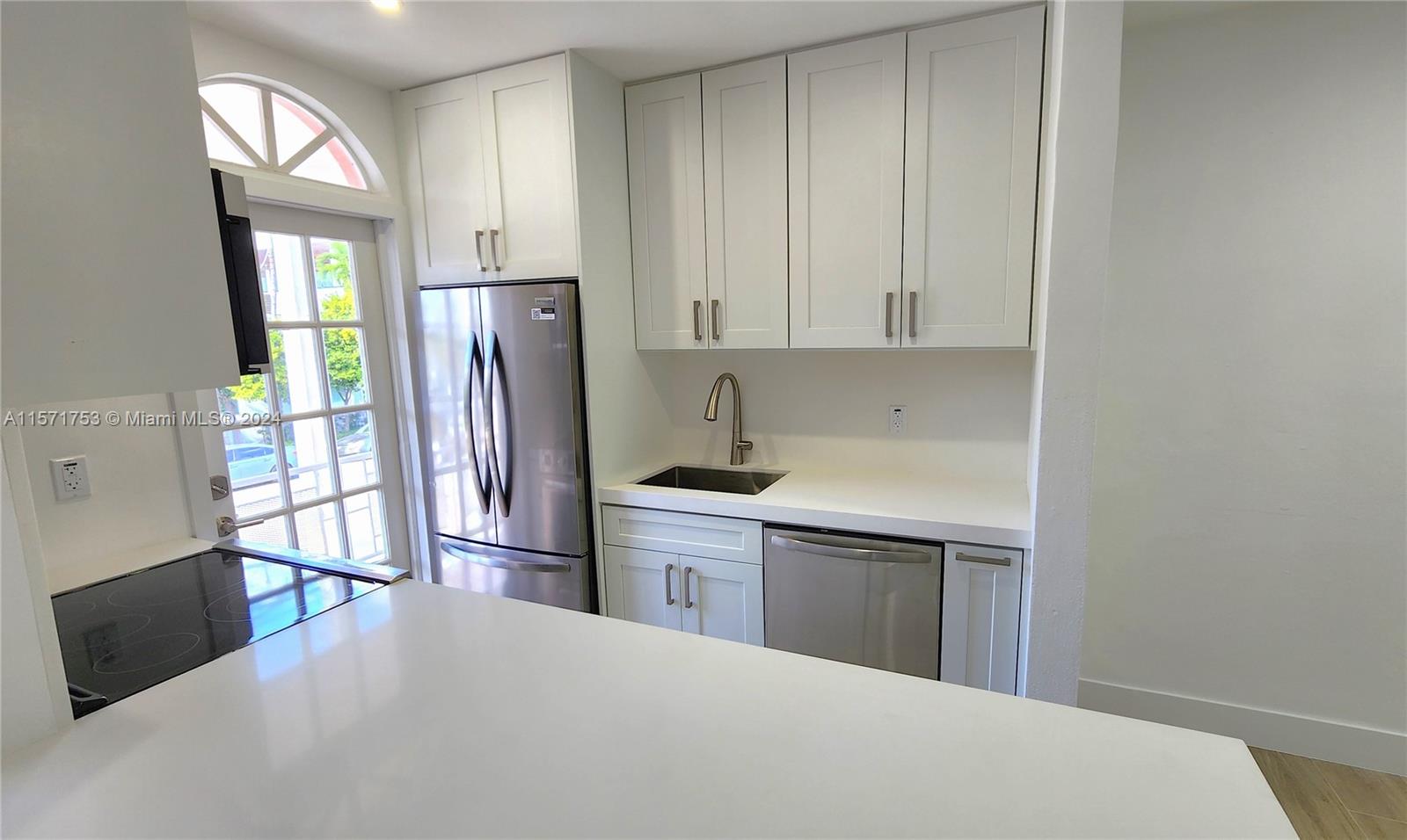 Gorgeous renovation at The Emerson House Condo! Everything is new and waiting for you just one block from popular Lincoln Road. Walk to restaurants, shopping, Lincoln movie theater and all that South Beach has to offer. This spacious top floor unit offers a beautiful new kitchen with gleaming white quartz counters, tons of storage with cabinets to the ceiling and all new stainless appliances. Warm wooden porcelain floors throughout. Washer Dryer in the unit. Beautiful new bathroom. Lg bedroom with chic acrylic closet doors flush with the wall. All new electric panel. Tankless water heater. Central AC - 5 years old. Quiet building with only 12 units. One parking space available for owner occupant. Pets allowed only with BOD approval. Building has reserves. You just need to see it!