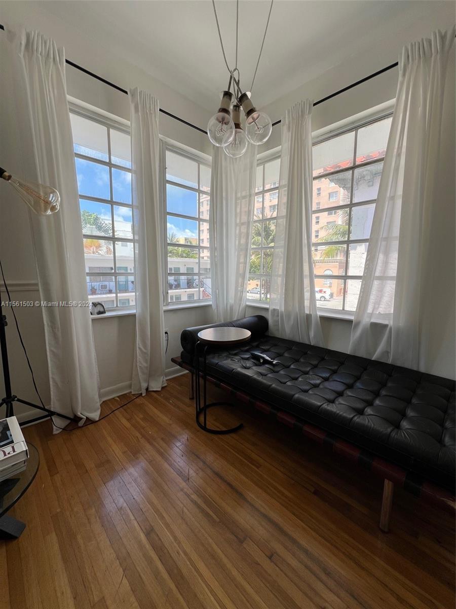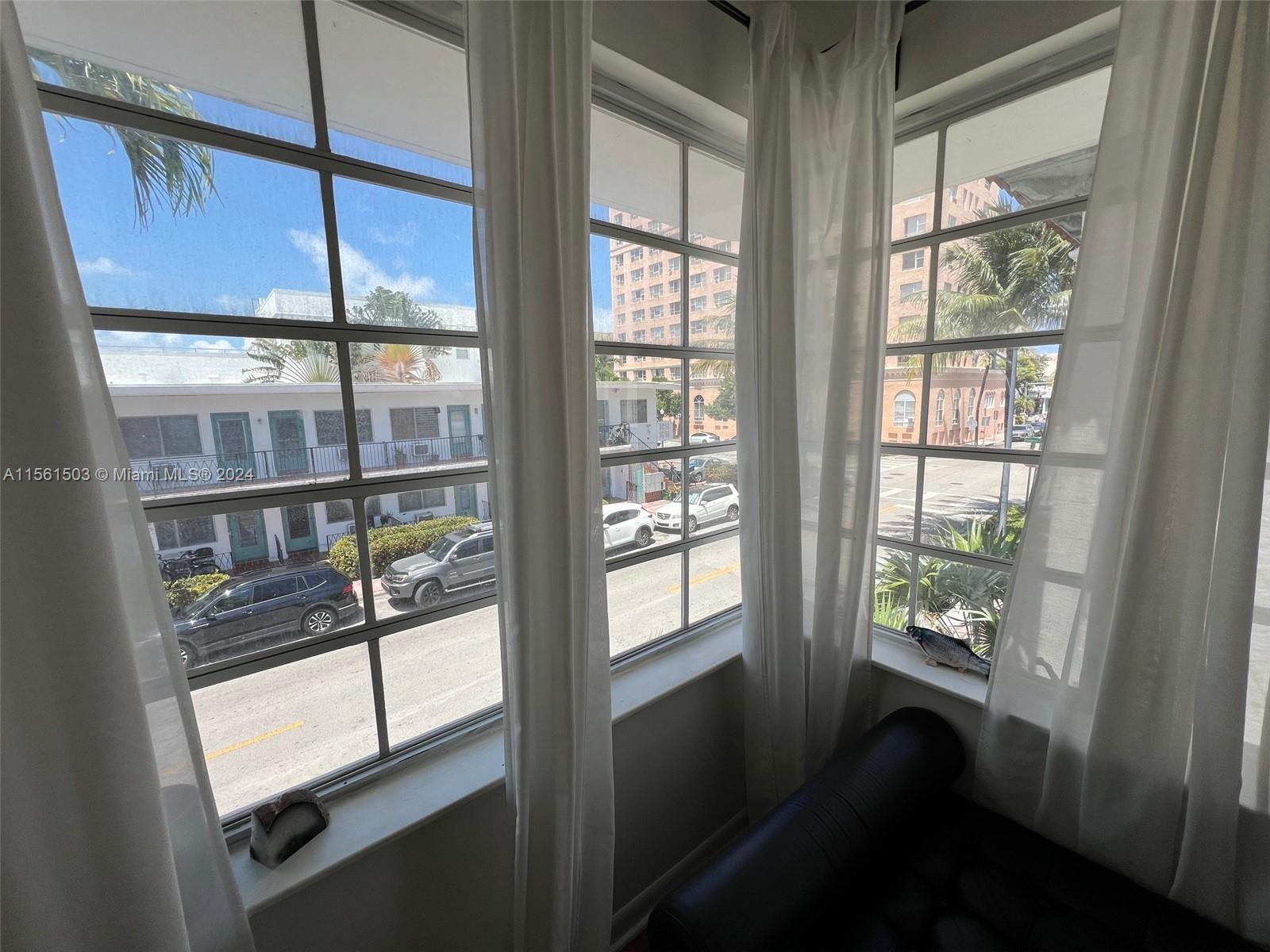 Charming, Bright & Spacious 1bed CORNER unit. Ideal & Perfect layout: Large bedroom, Large living room with original fireplace and a nice open kitchen size. This Pet friendly Art Deco building is very well located at only 3 blocks from the beach and steps away from Restaurants & stores. Can be rented right away.