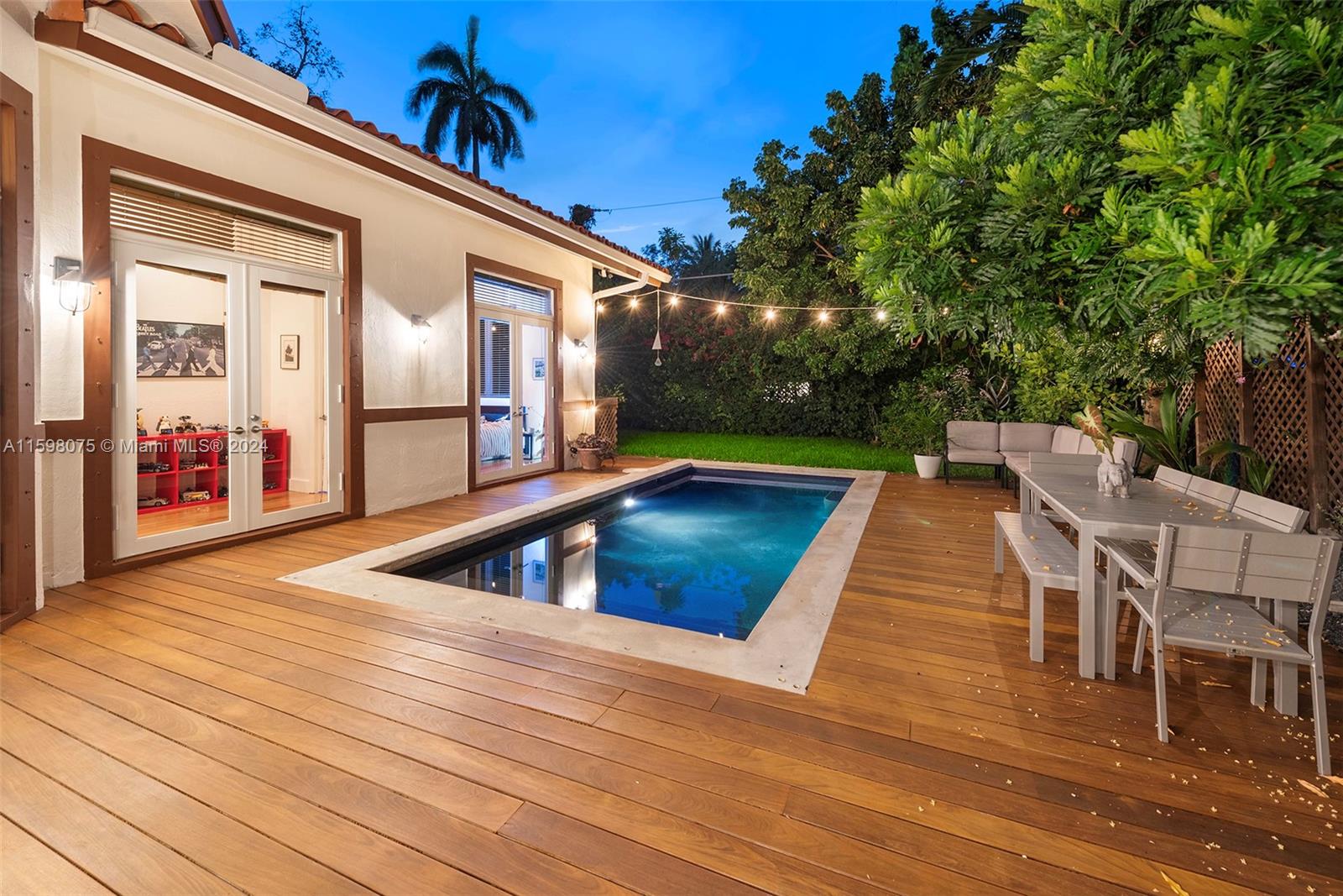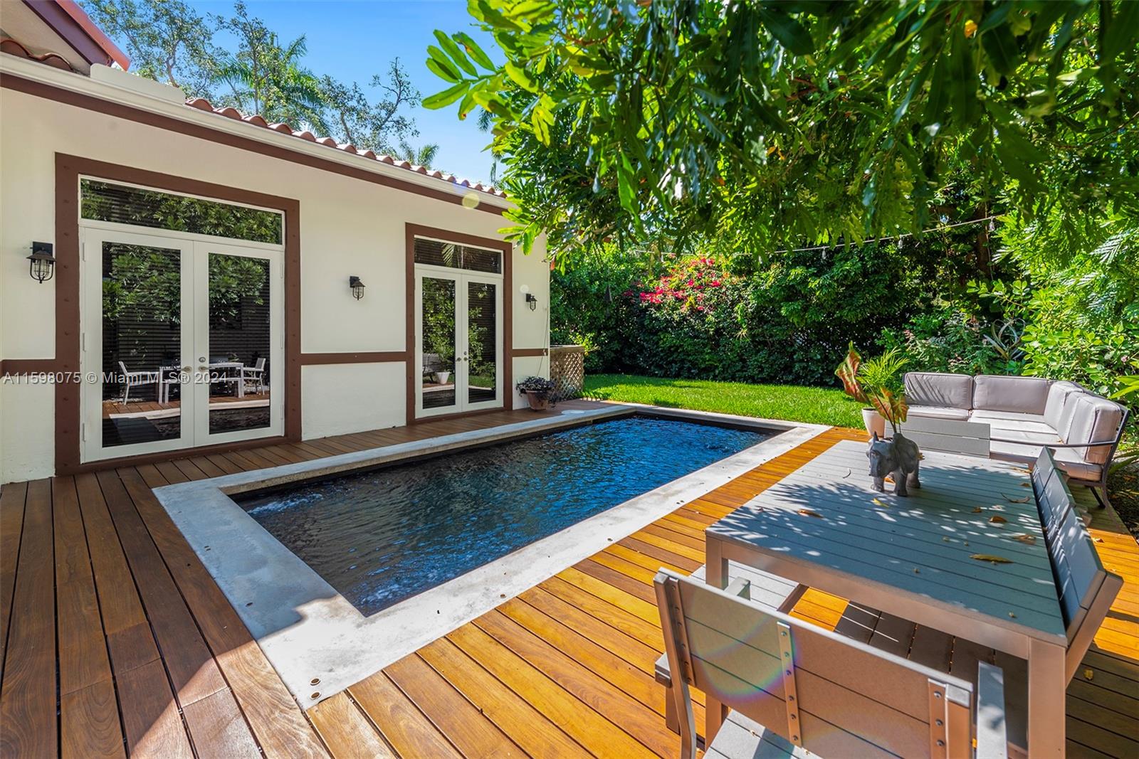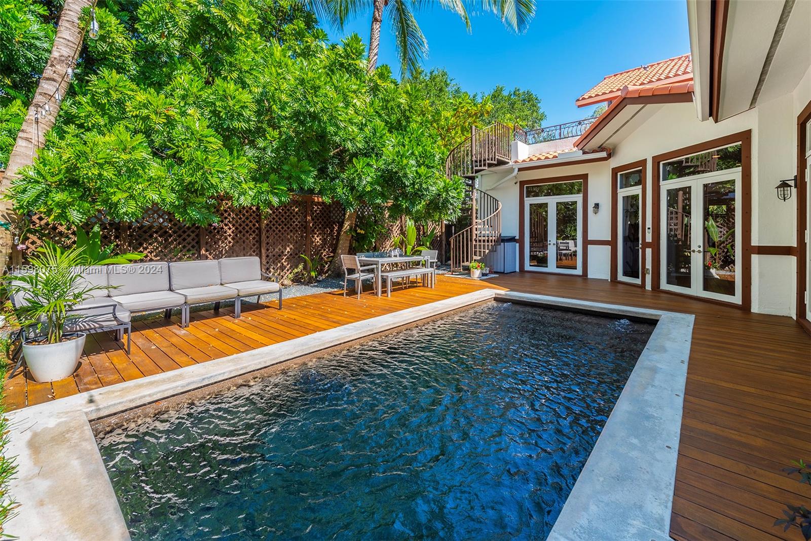 Nestled among the tropical Banyan trees lush surroundings, this exquisite home blends modern luxury wwarm inviting charm. The large windows high ceilings illuminate the space wnatural light, highlighting the elegant Oak hardwood floors. The newly custom built gourmet kitchen equipped wtop-of-the-line appliances, quartz countertops custom cabinetry are perfect for everyday living entertaining. The primary suite provides a private retreat complete wan updated en-suite bathroom direct access to the beautifully landscaped backyard wa pool newly installed deck. This highly sought-after area is close to top-rated schools, shopping, dining vibrant cultural attractions, making it an ideal for those seeking a refined comfortable lifestyle in the heart of Coconut Grove.