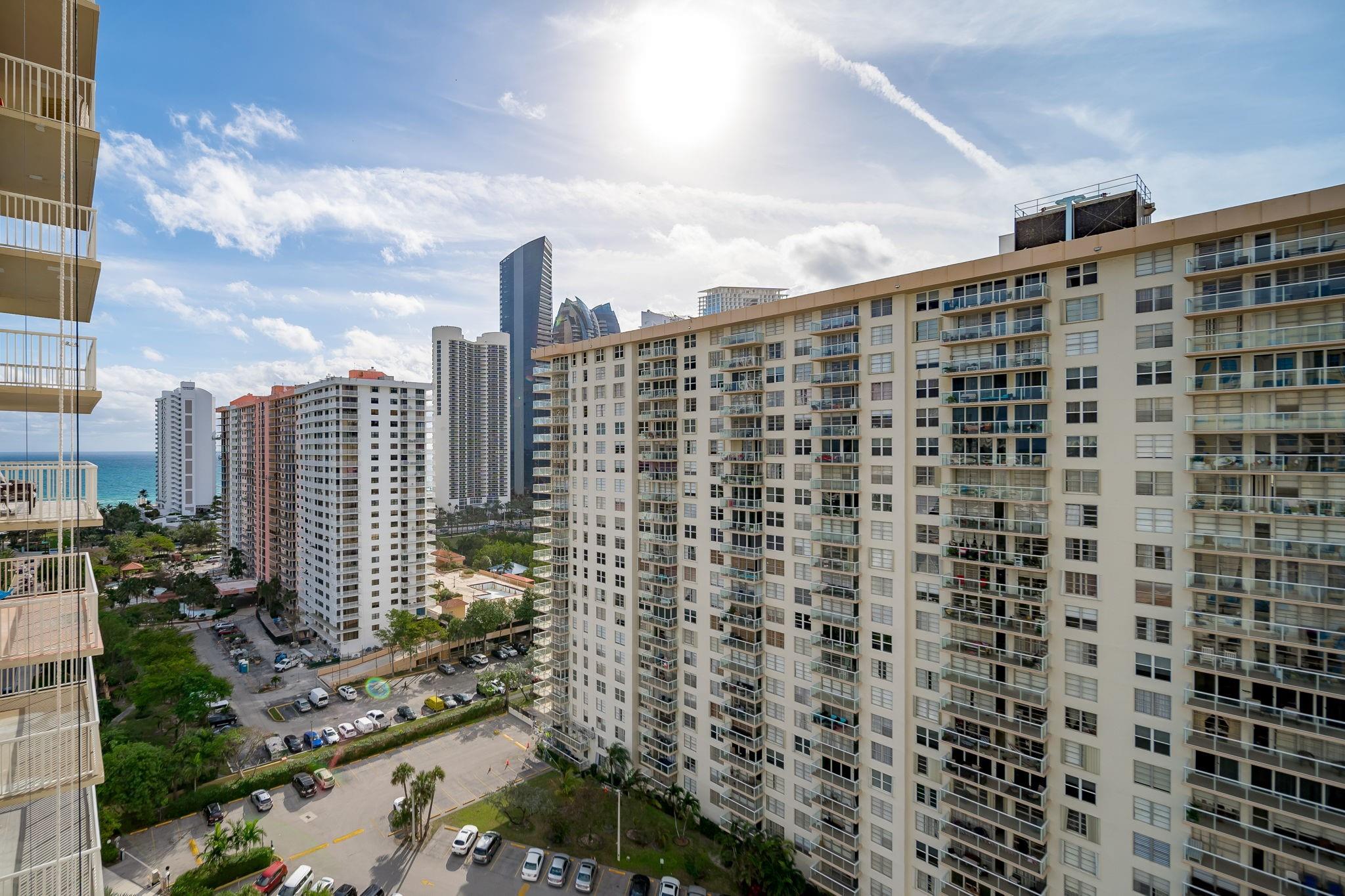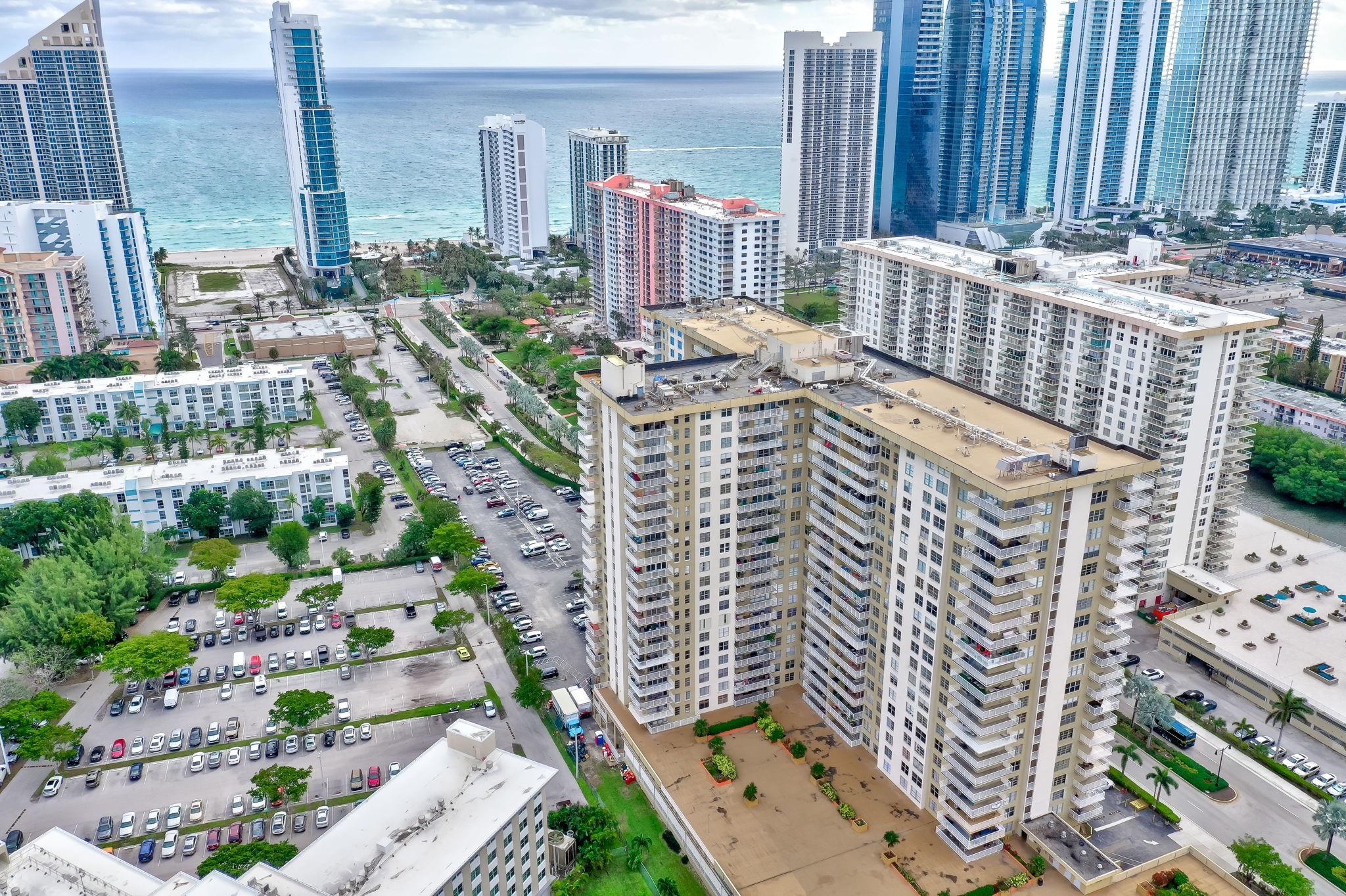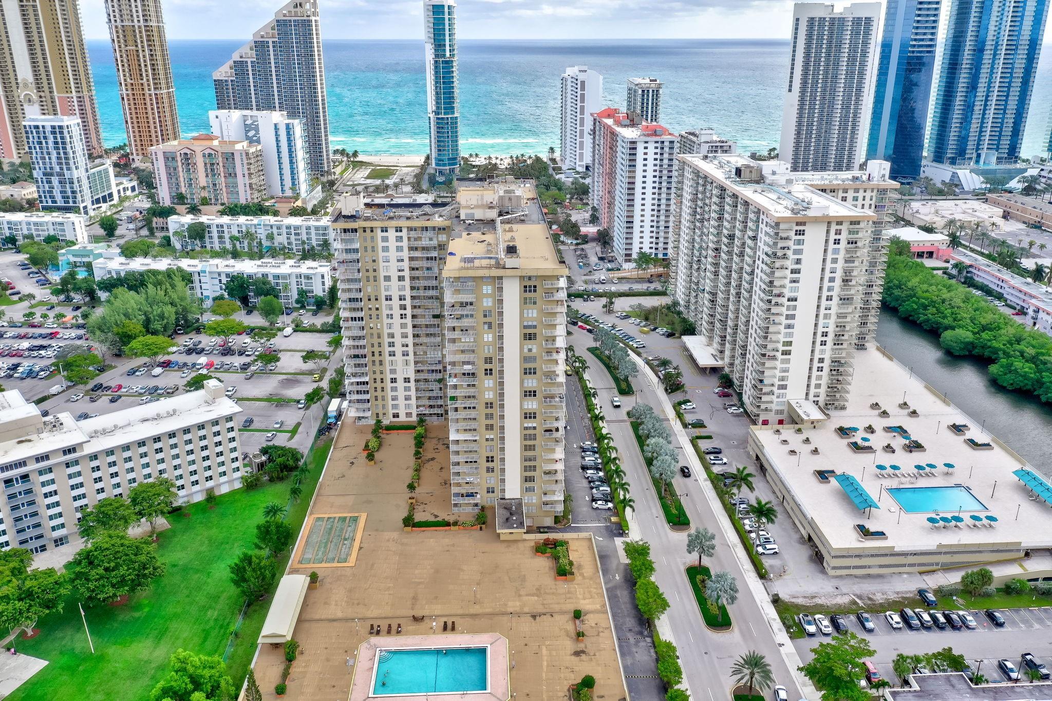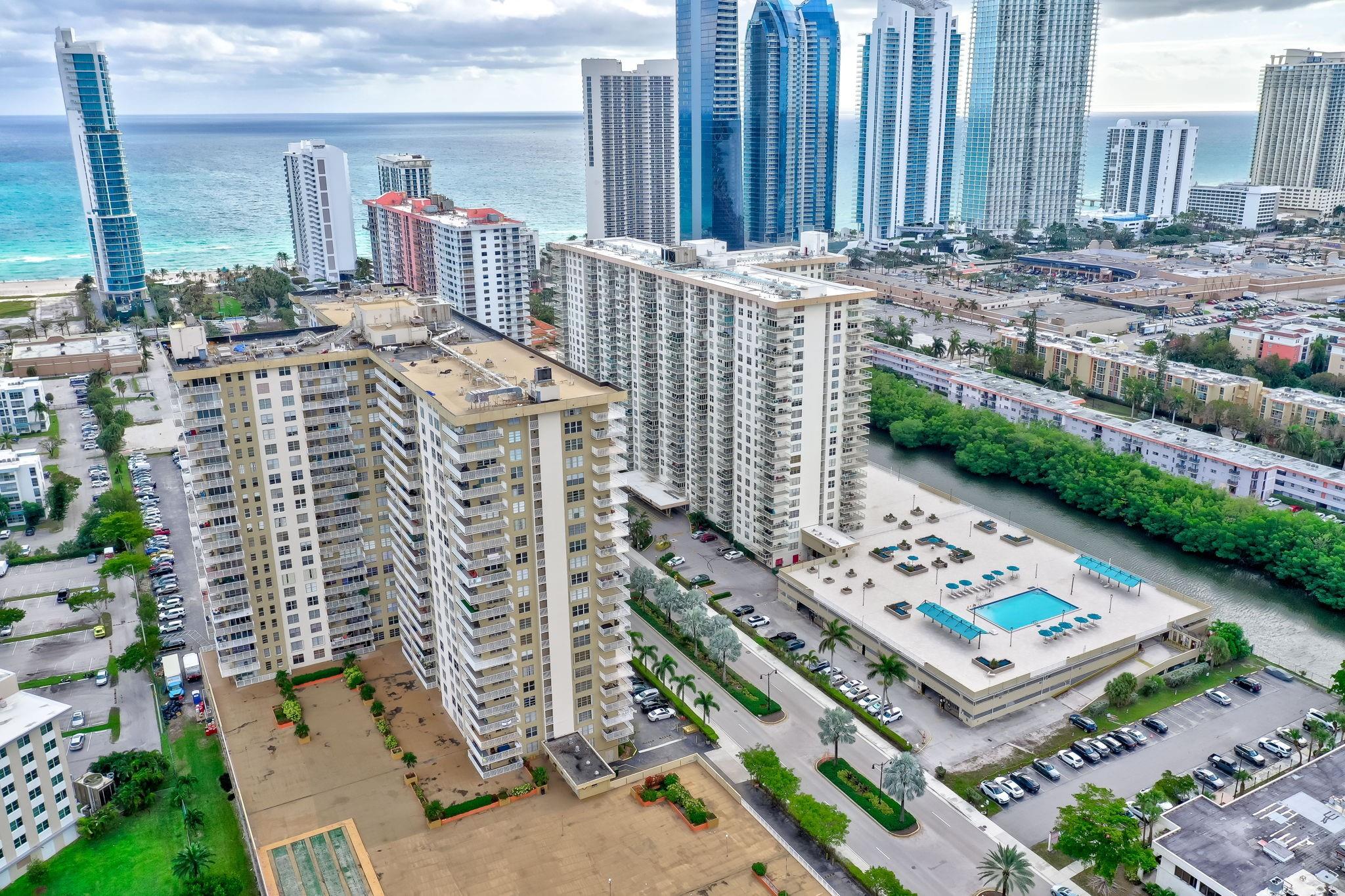 Perfectly located in Sunny Isles Beach this high-rise condo has beautiful views of the Intracoastal and Ocean! This extra spacious 1 bedroom plus den and 1.5 bath unit located on the 19th floor has been kept spotless. Ceramic tile floor throughout, newer stainless-steel appliances, expansive primary suite with renovated en-suite bath. Extra storage and covered parking space complement this unit. The building has been kept in great condition, offers many amenities to owners and guests like a pool, library, gym, sauna, playroom, 247 security and much more. No pending assessments and very low condo maintenance.