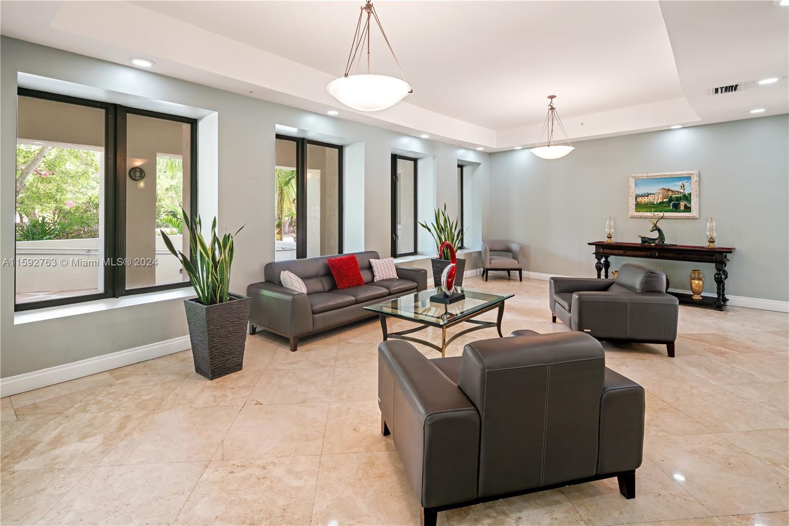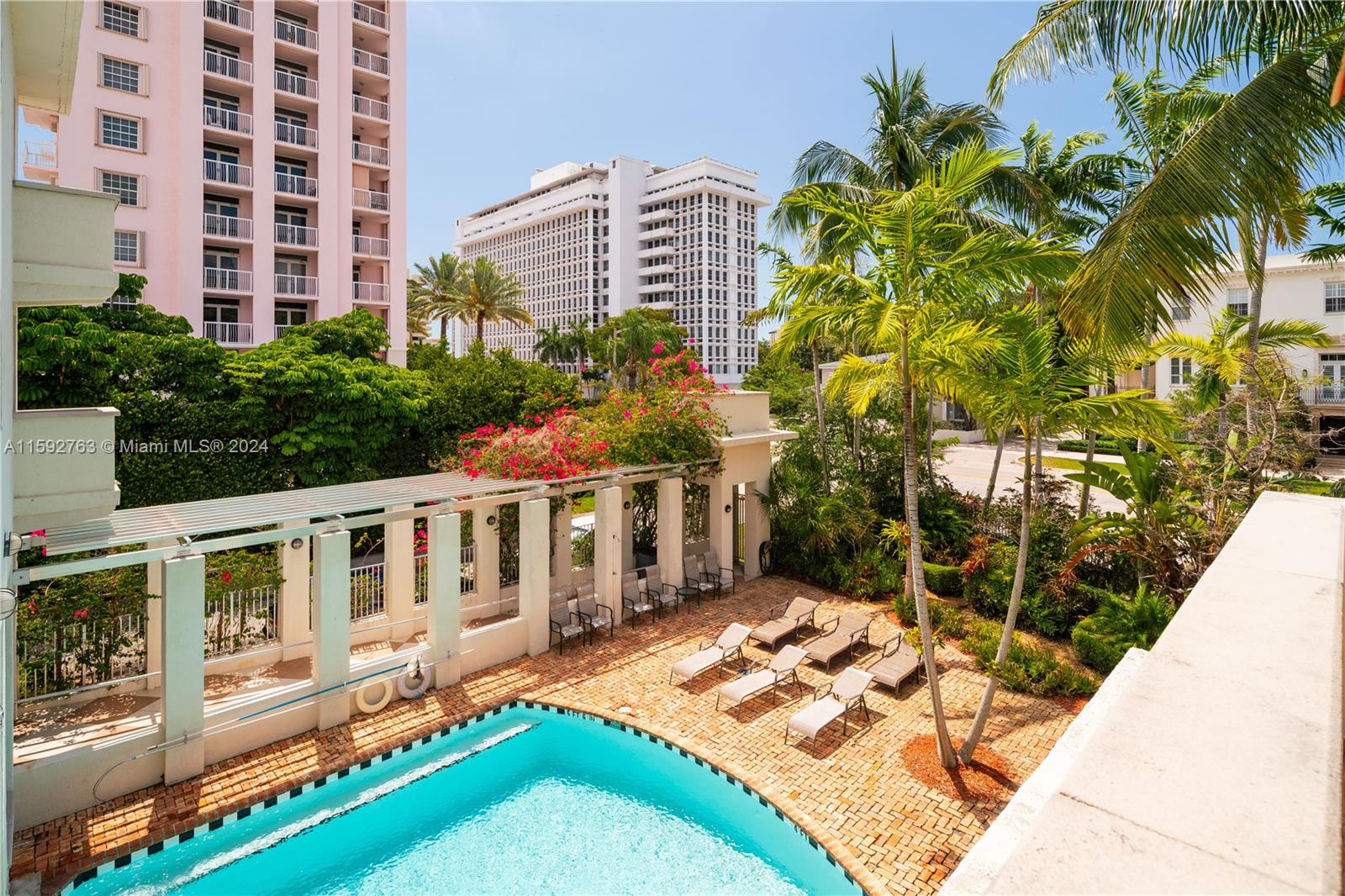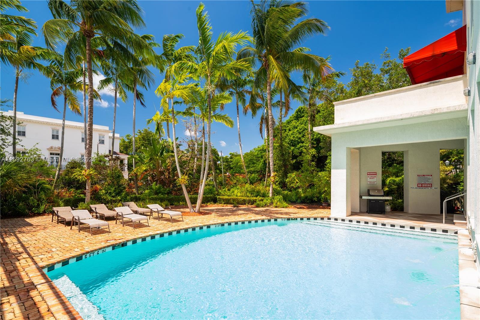 Make your home in the epicenter of the City Beautiful in this rarely available unit in Avignon?Coral Gables' hidden gem. Avignon is a sophisticated boutique building on a tree-lined street, a block from Granada Golf course, near famed Miracle Mile, & less than a mile from the iconic Biltmore Hotel. A sprawling 2,000 sq ft unit awaits with its roomy 3 beds & 2.5 baths. A large, covered terrace allows for family dinners alfresco, & continues with an open veranda overlooking the picturesque pool, with entertaining spaces & bougainvillea-adorned pergolas. Impact doors & windows, neutral stone floors throughout, ample closet space, & laundry room complete the space. The building features secure gated entry, 2 garage parking spaces, & gym, making this unit a unique find! A Very Special Home.