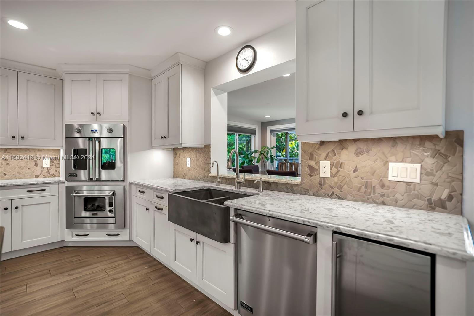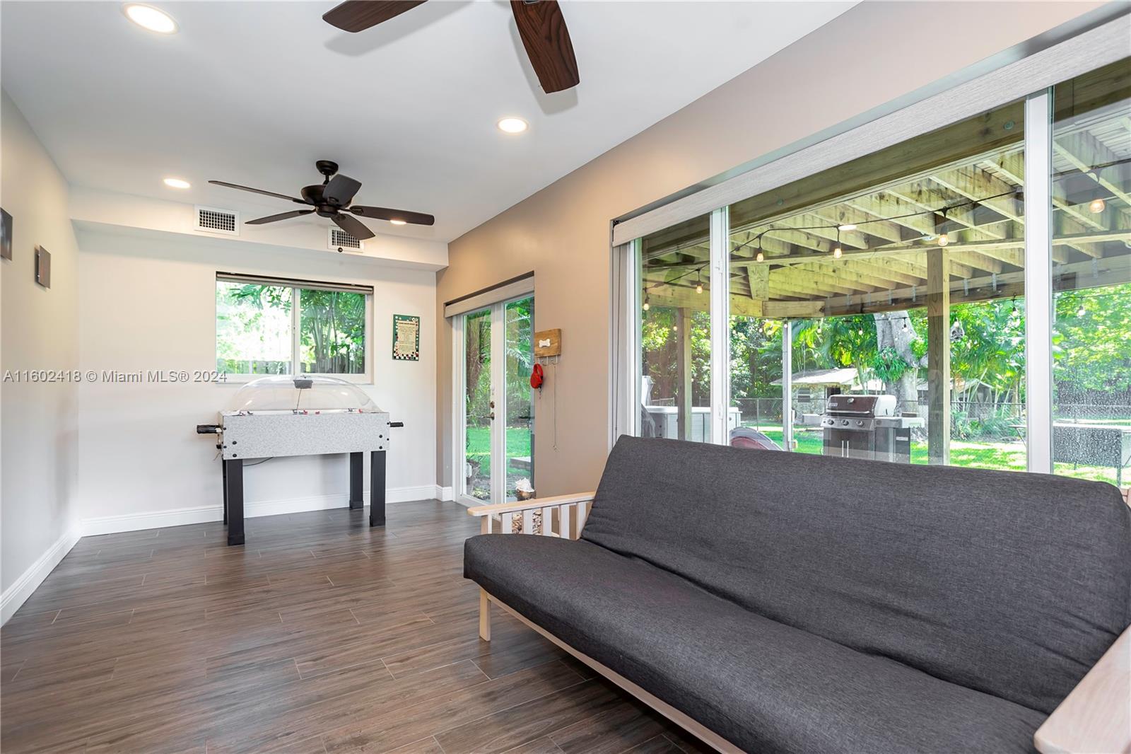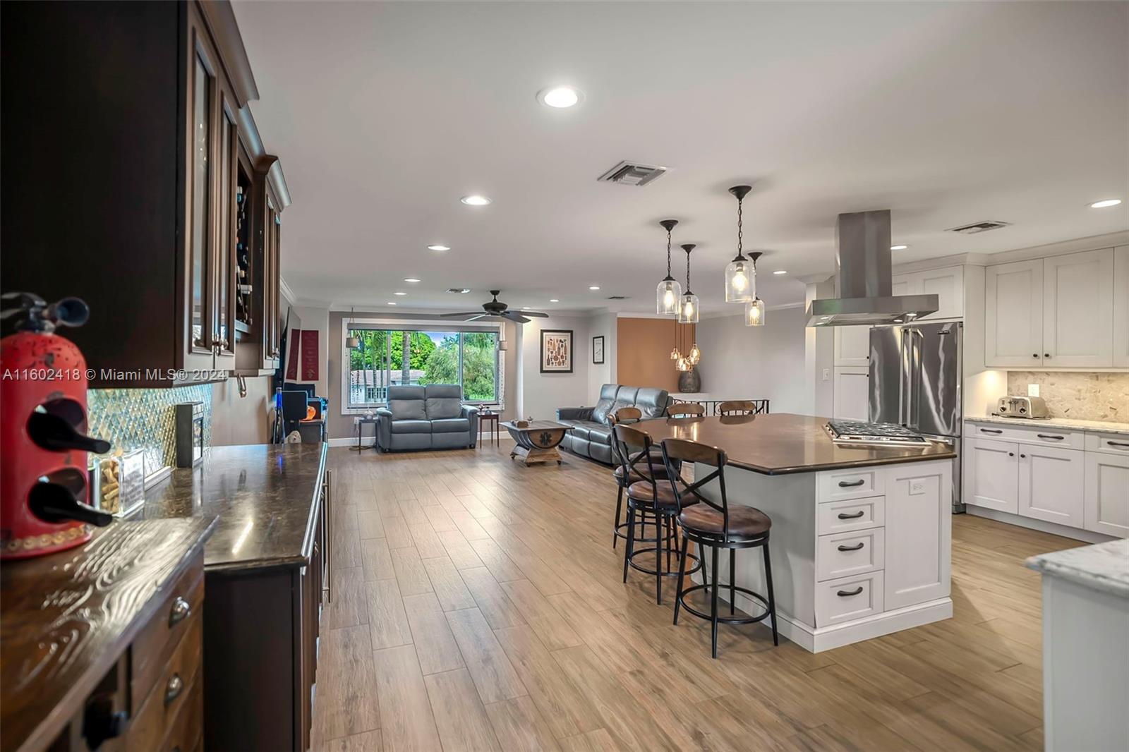 BRAND NEW ROOF COMING SOON!! Welcome to this stunning 5-bedroom, 3-bath home on FULL ACRE in Davie with No HOA! The main level includes a primary suite, 2 bedrooms, 2 baths, and an open-concept kitchen with quartz countertops, Viking appliances, and a wine bar. The lower level offers 2 bedrooms, 1 bath, a living room, game room, and storage. Features include new wood-look tile floors, all impact windows and doors, 2 new AC units, and new light fixtures and electric panels. The 1-acre lot boasts a fenced backyard, extended porch, rear patio, upper deck, 2 ½ car garage, concrete storage shed, and chicken coop. Modern amenities and fiber optic wiring throughout complete this serene home. Jacuzzi conveys!