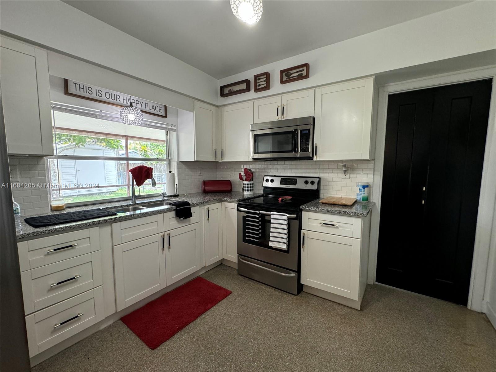 Welcome to this charming single-family home in the Pembroke Pines area featuring 2 bedrooms and 1 brand-new, fully updated bathroom with a standing shower. The residence includes a family room, a spacious laundry room, and a walk-in pantry. Enjoy the screened patio, perfect for relaxing, and an above-ground pool for those hot summer days. The kitchen boasts white cabinets, granite countertops, and a subway tile backsplash, complemented by updated light fixtures in the kitchen, dining area, hallway, and foyer. Additional highlights include Terrazzo floors and ample storage in the large laundry room adjacent to the kitchen. This move-in-ready home sits on a generous lot with a carport and is free from flood zones and HOA fees. Don't miss the opportunity to make this delightful home your own!