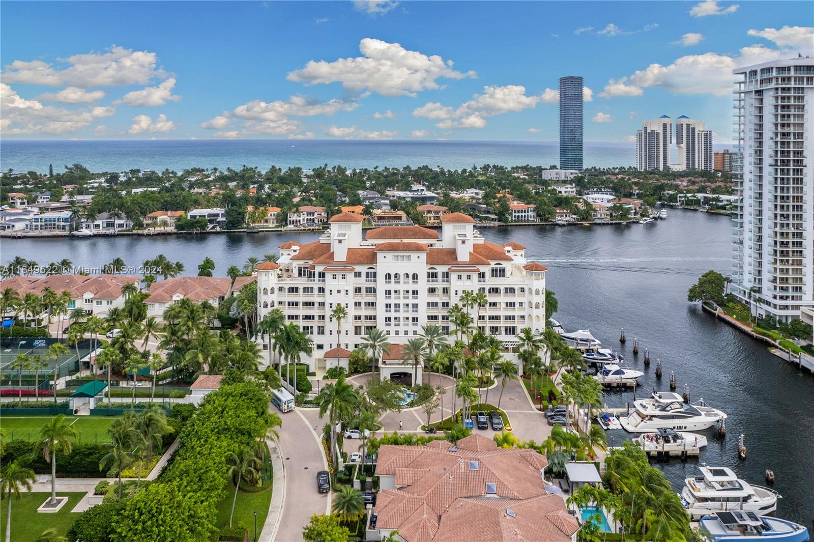 Experience a Resort Lifestyle at Porto Vita. This beautiful 3bed/4bath condo has over 3000 SF of living space. Located in Bella Vista South, a boutique building with only 22 units, has a private elevator that opens right into your foyer. Features floor-to-ceiling windows, porcelain floors throughout, 10 ft ceilings, & a large terrace facing the Ocean & Intracoastal. The primary suite has his/her bathroom, & walk-in closets. The kitchen has top-of-the-line appliances, ice maker, Snaidero cabinetry, pantry & breakfast nook. 2 garage parking spaces conveniently located for access directly to the unit. Bella Vista South has its own private pool. The Villa Grande Clubhouse offers resort pool, 4 Har-Tru tennis courts, pickleball, basketball court, soccer field, restaurants, spa & fitness center