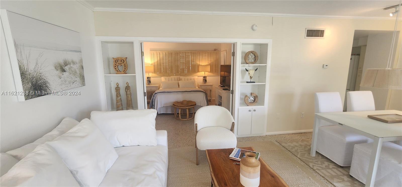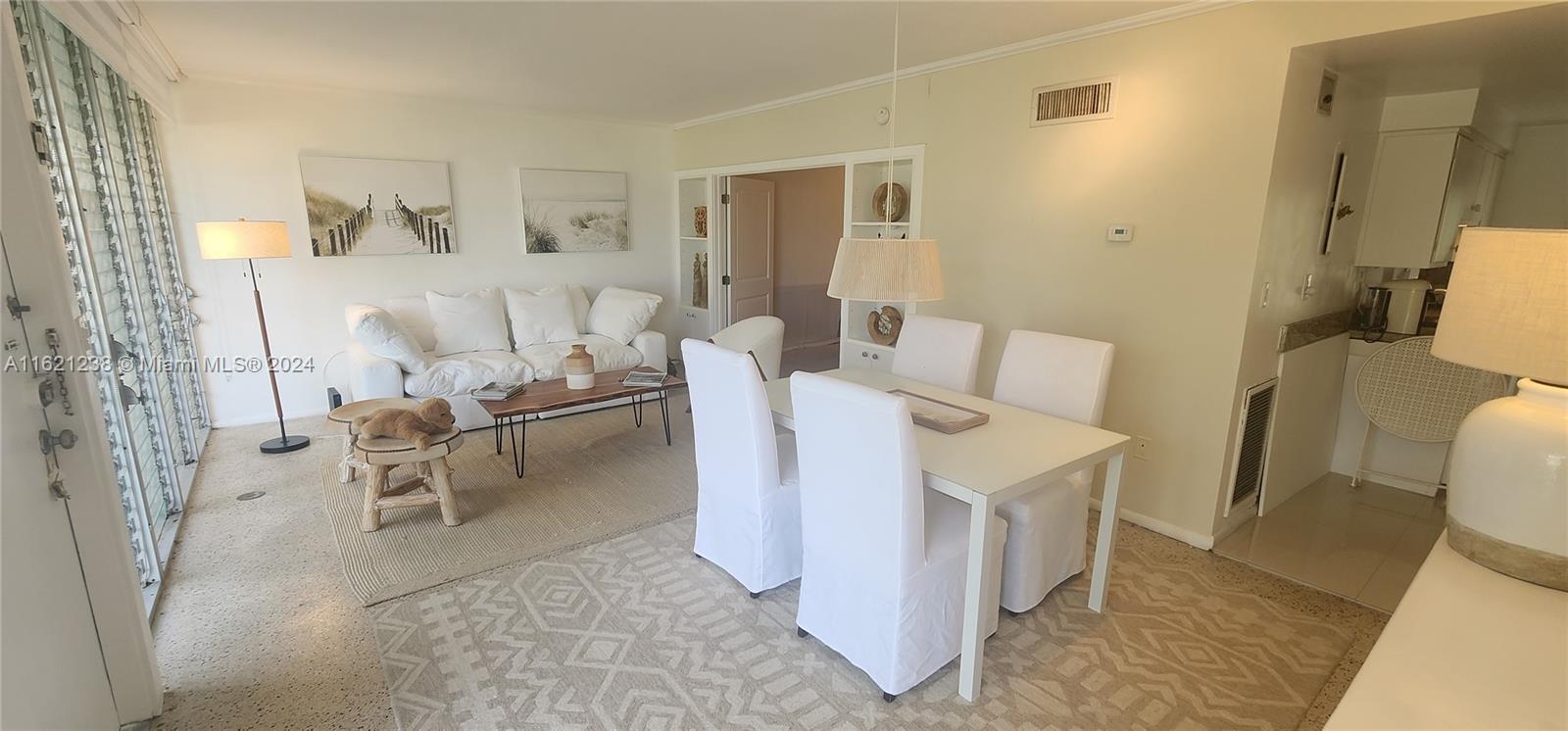 Experience a slice of paradise with this charming 2-bedroom, 2-bathroom Co-Op condo. The unit is filled with natural light that streams in from its floor-to-ceiling windows, offering breathtaking water views. This mid-century gem is tastefully furnished and features over 750 sqft of living space with gleaming terrazzo floors. The condo is surrounded by lush landscaping and even has access to a heated bayfront pool, dock, kayak storage, and BBQ area. Assigned parking is included, and it is conveniently located within walking distance of Bal Harbour Shops and the beach. Enjoy the best of both worlds - comfort and coastal living in the exclusive neighborhood of the Bay Harbor Islands. This site could be considered for future development projects. NO rentals are allowed. Cash only.