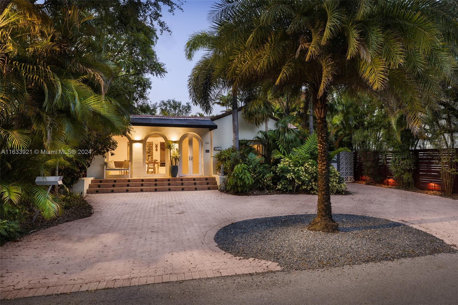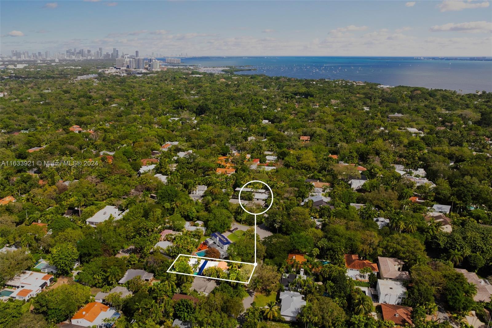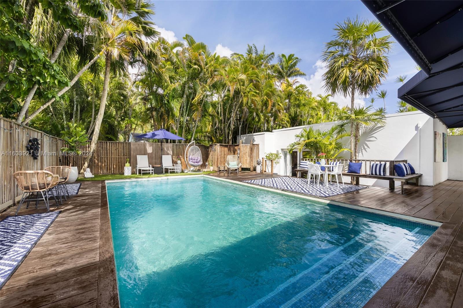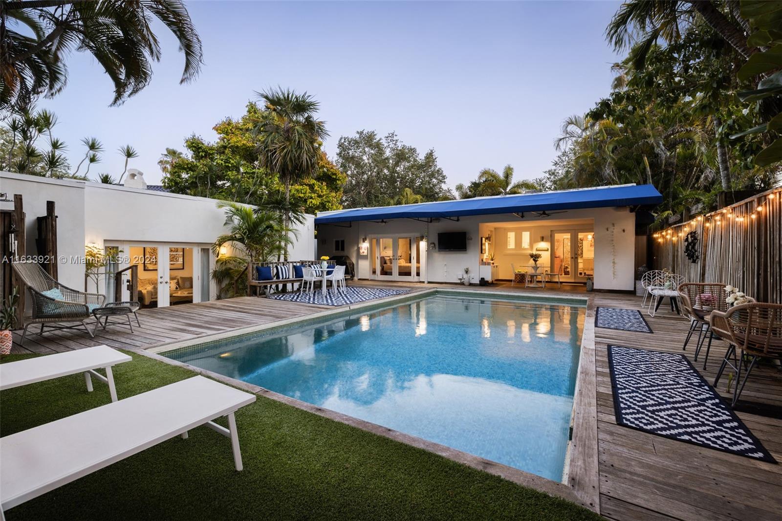Captivating home + detached guest house on an idyllic, tree canopied street in the lush South Grove neighborhood aptly named "Utopia". Light-filled living spaces seamlessly blend classic architectural details w/ a modern vibe. Timeless features include glistening hardwood & porcelain tile flooring, a wood-burning fireplace and an elegant formal dining room w/ tall arched windows overlooking dense tropical foliage. Updated, European-style kitchen w/ sleek cabinetry, quartz countertops & built-in breakfast banquette. The spacious primary suite has custom walk-in closet, spa-like bath & French doors that open to an expansive Ipe wood deck & tranquil pool. Your ultra-private backyard oasis awaits you. Walk or bike to the historic Grove village's cafes, boutiques and bayfront parks & marinas.